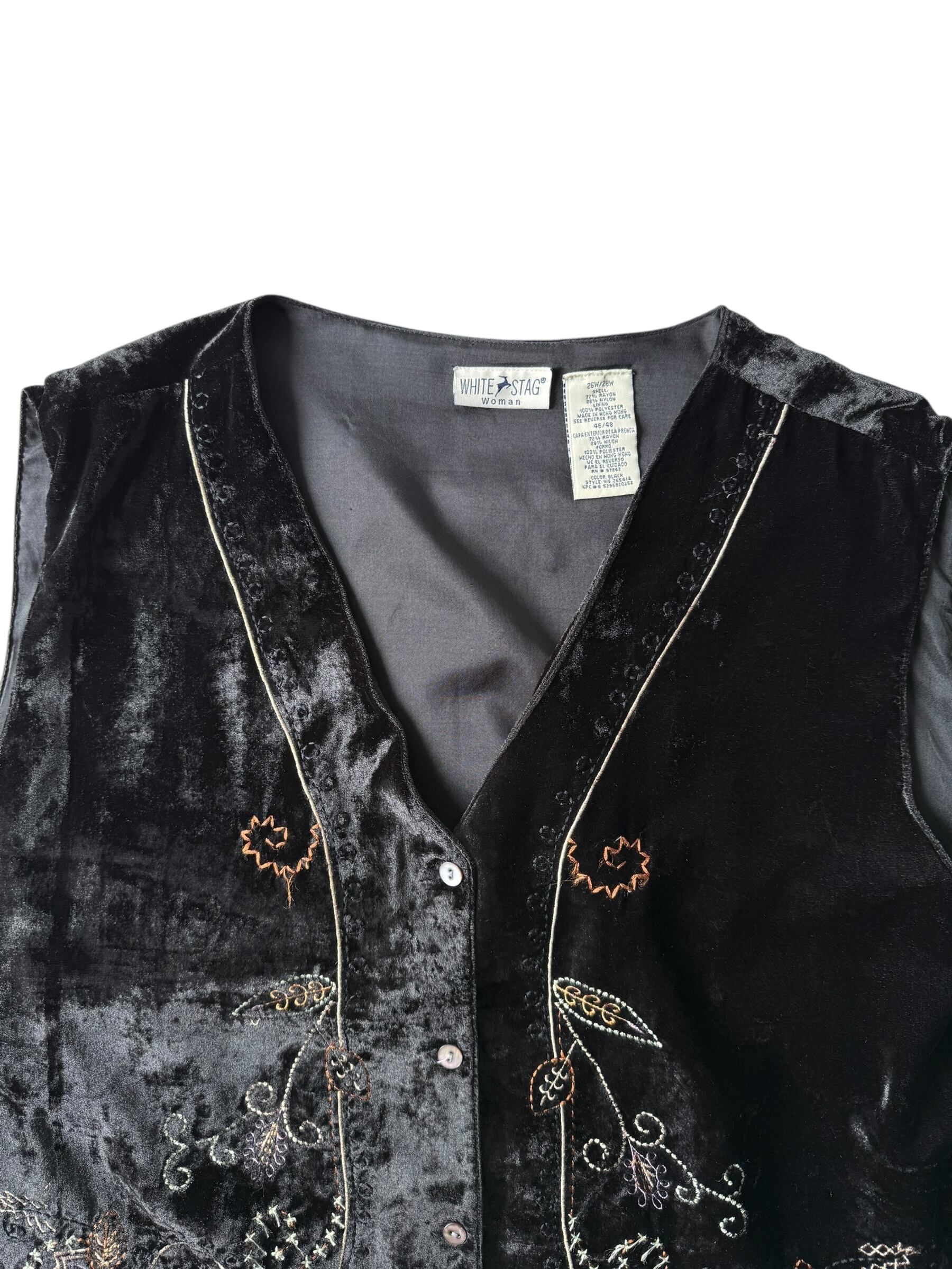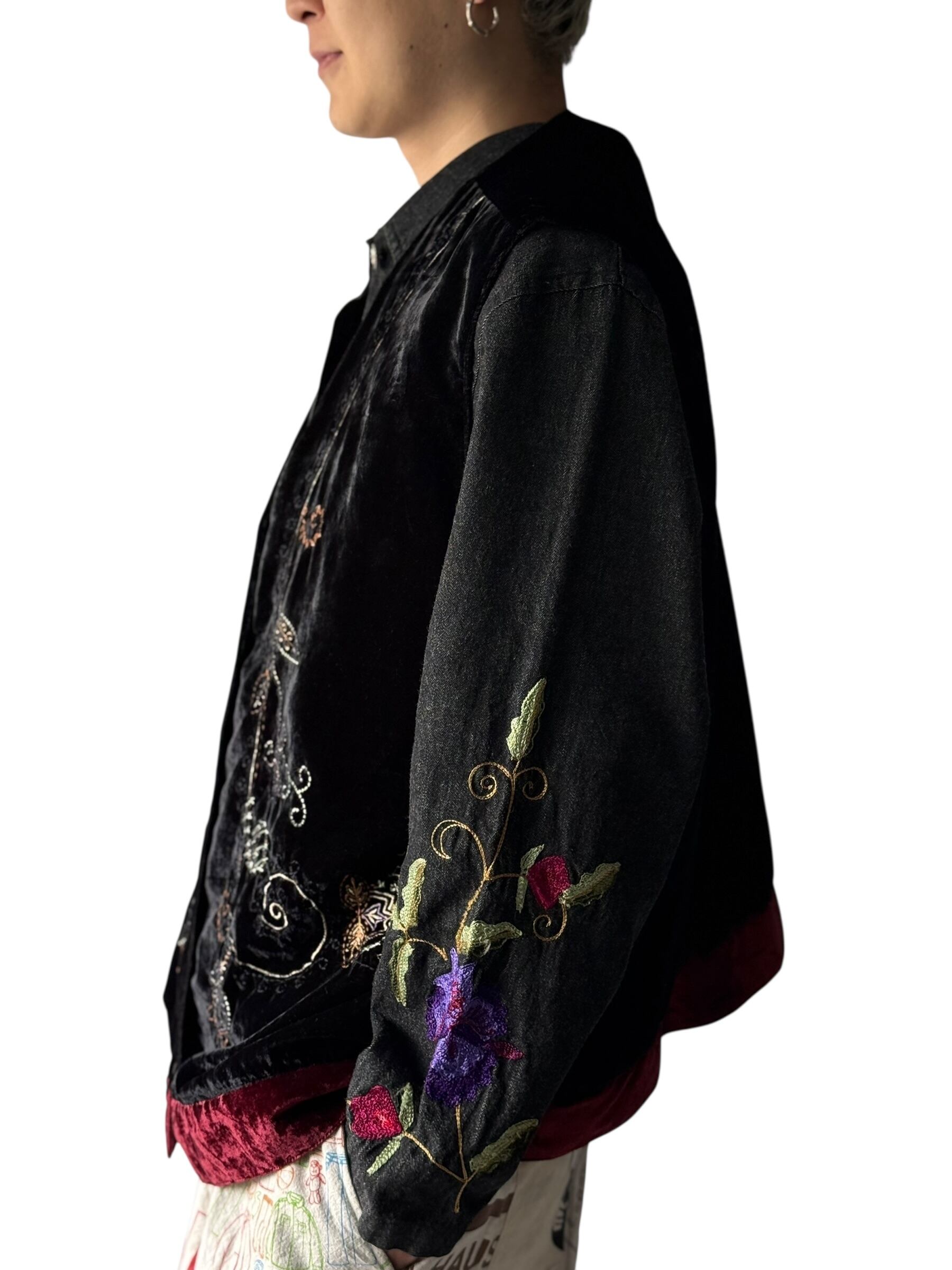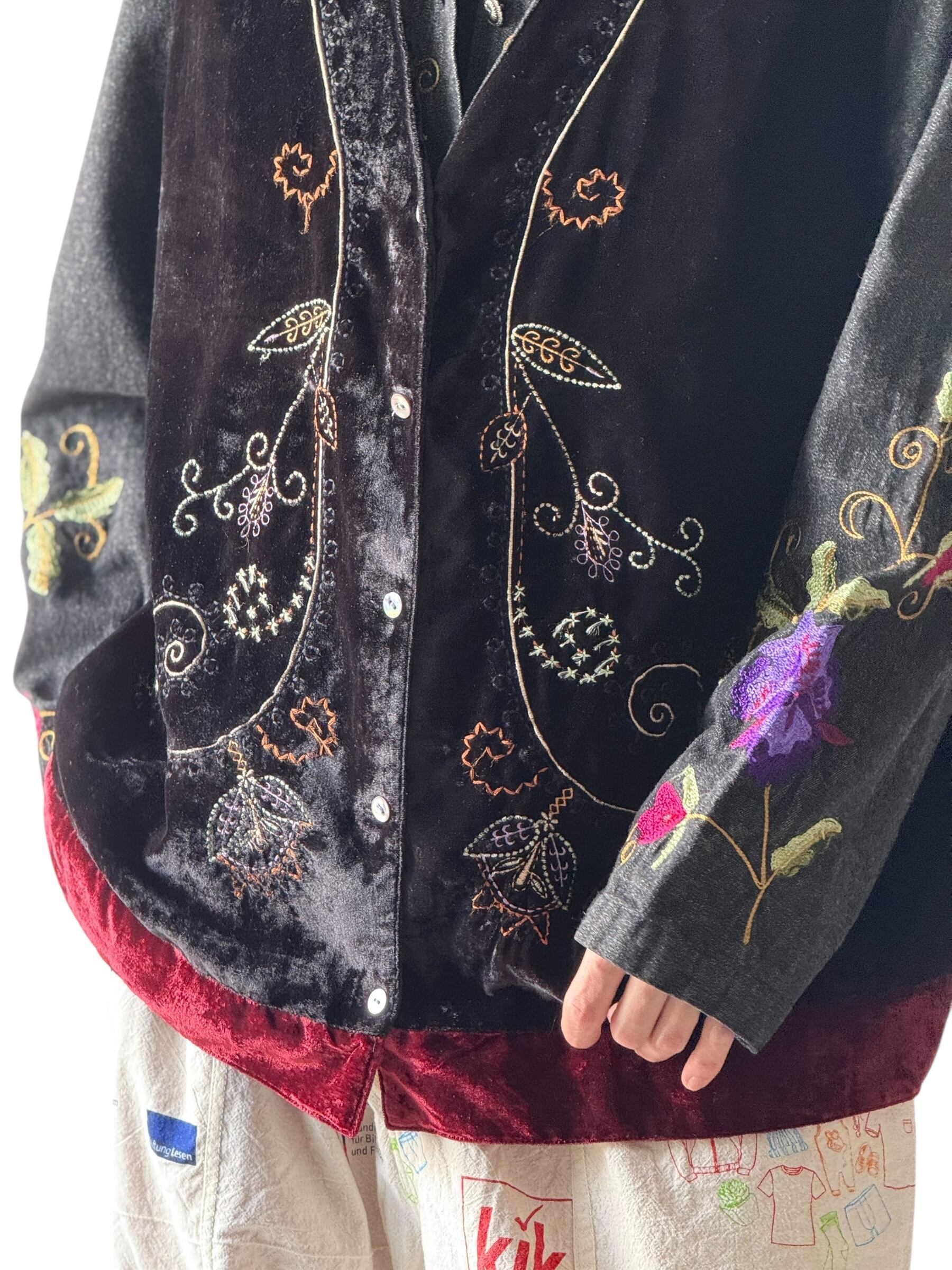 Floral embroidered velvet vest