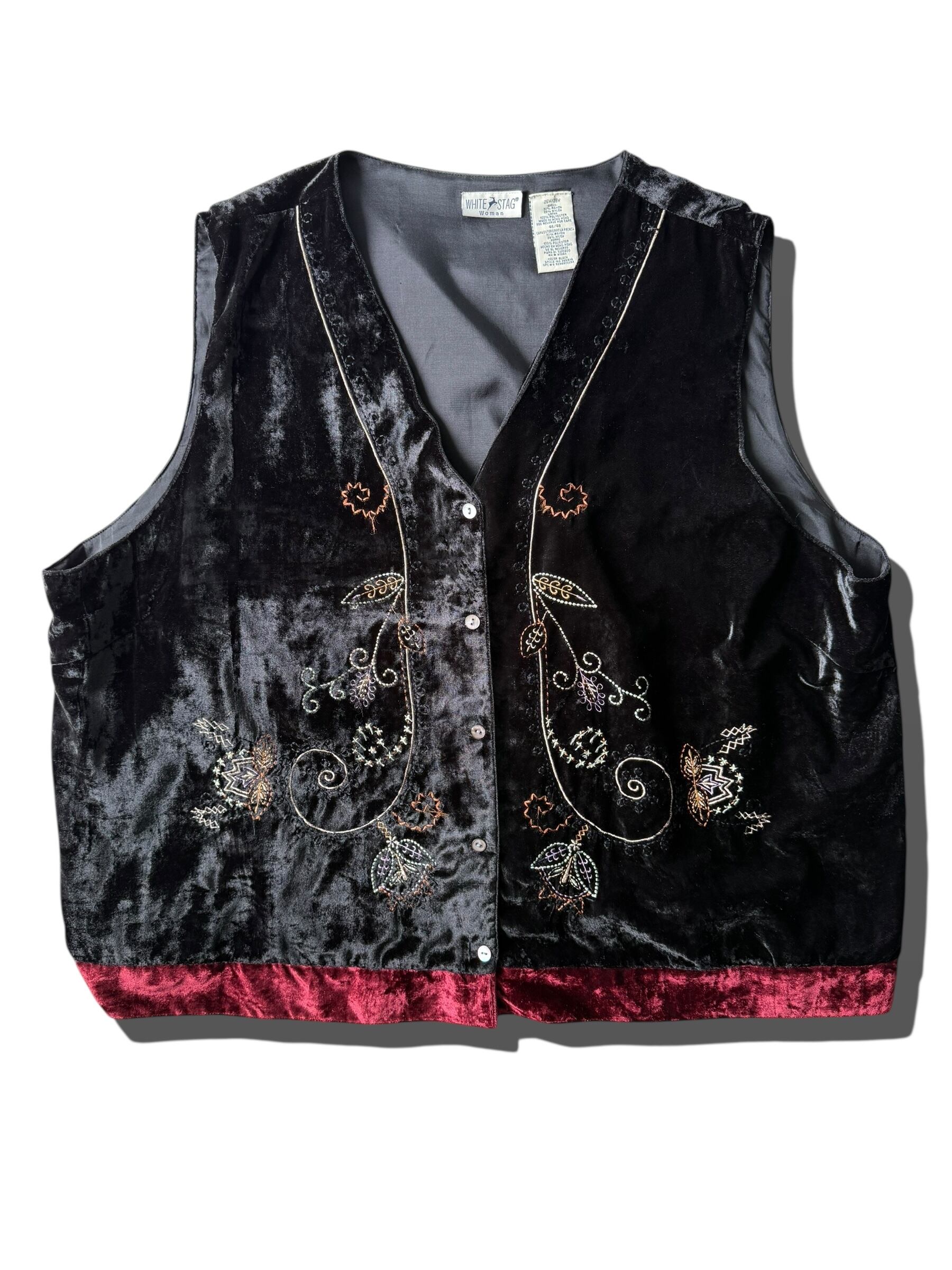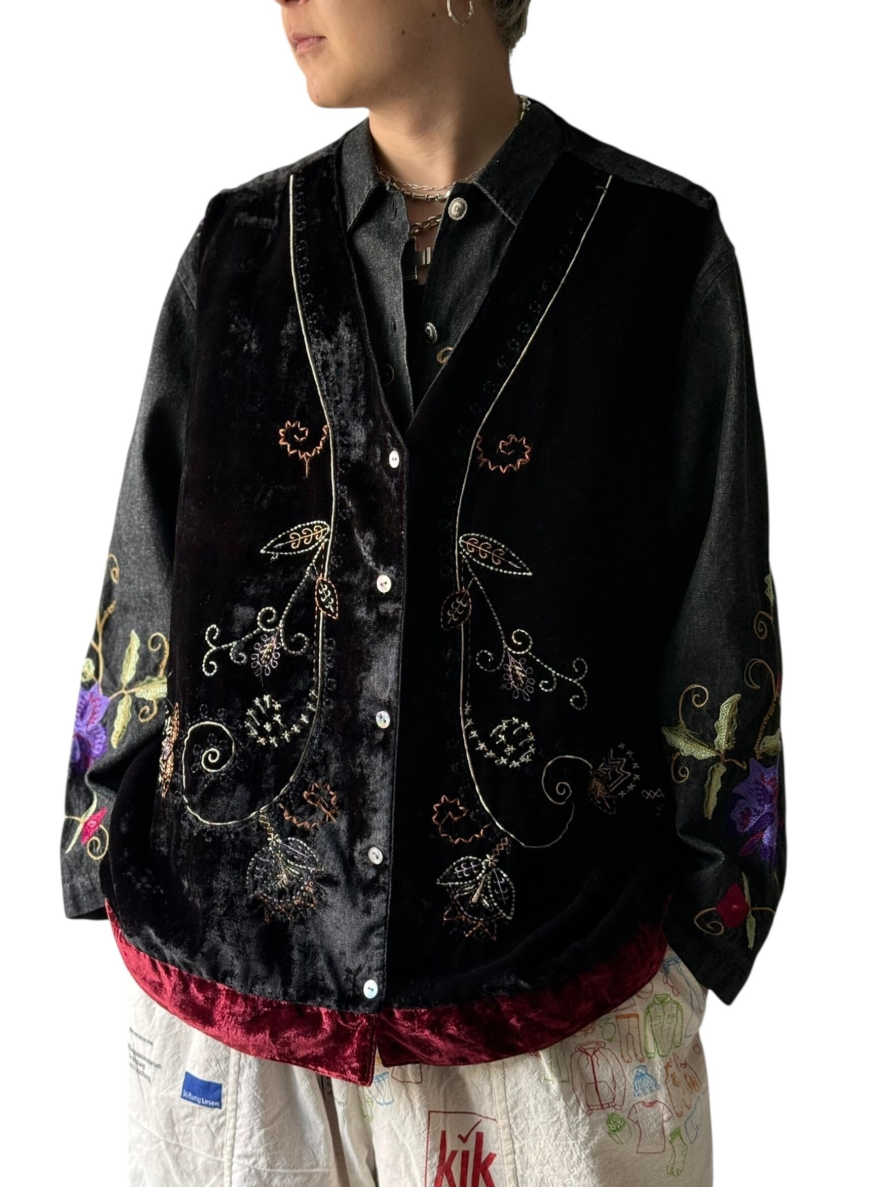 【WHITE STAG】 Floral embroidered velvet vest