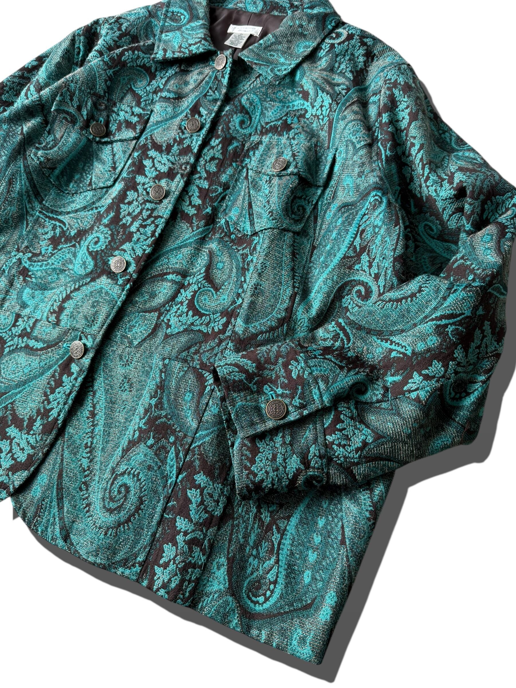 【LAURA ASHELY】 Paisley patterned glitter design Gobelin jacket