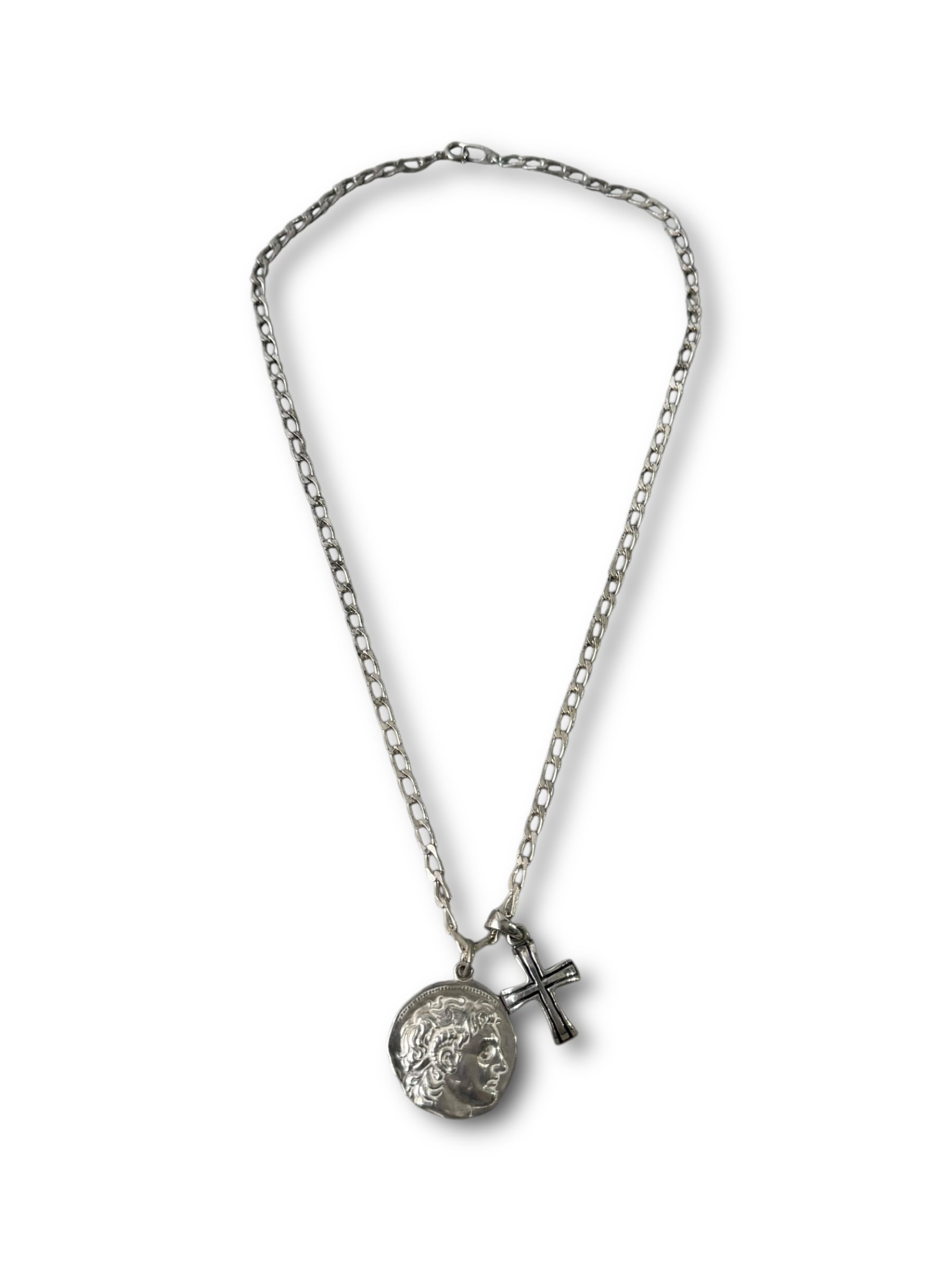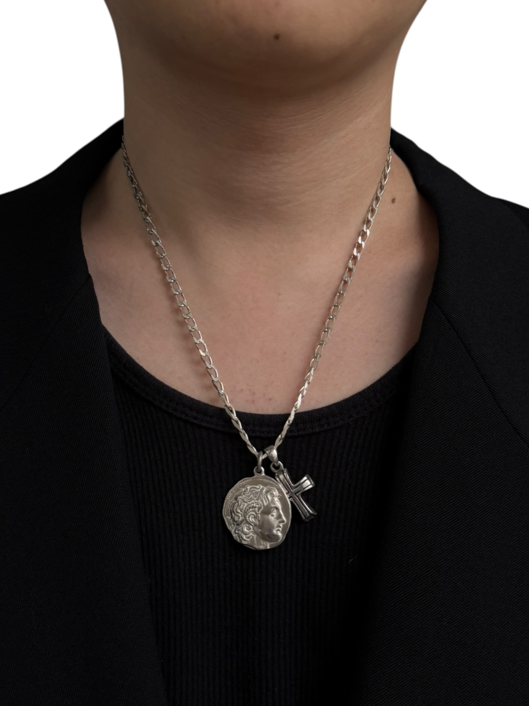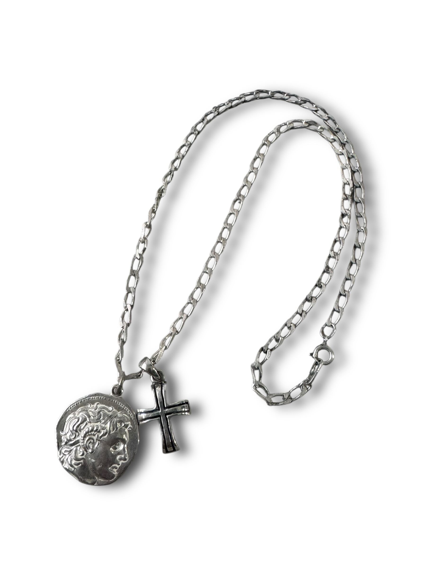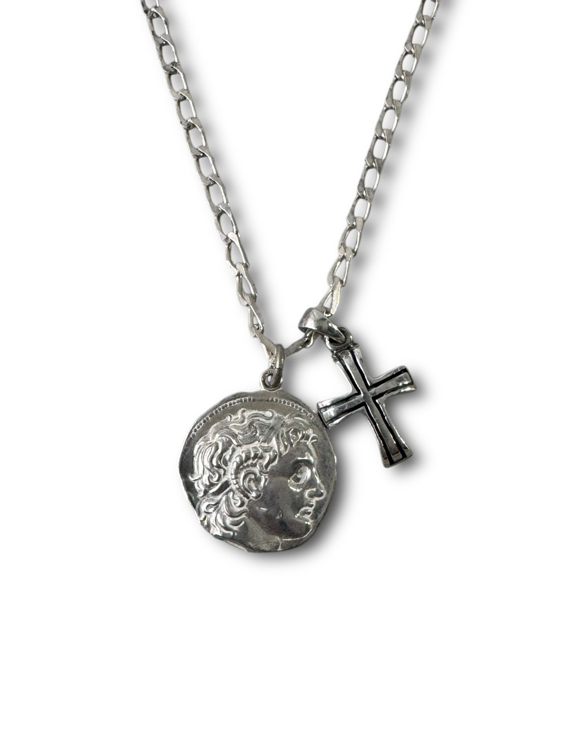 勇気と力の象徴と言われるアレキサンダー大王が刻印されたデザインのトップとキュートで可愛らしいサイズ感のクロスのダブルトップ仕様✨️✨️