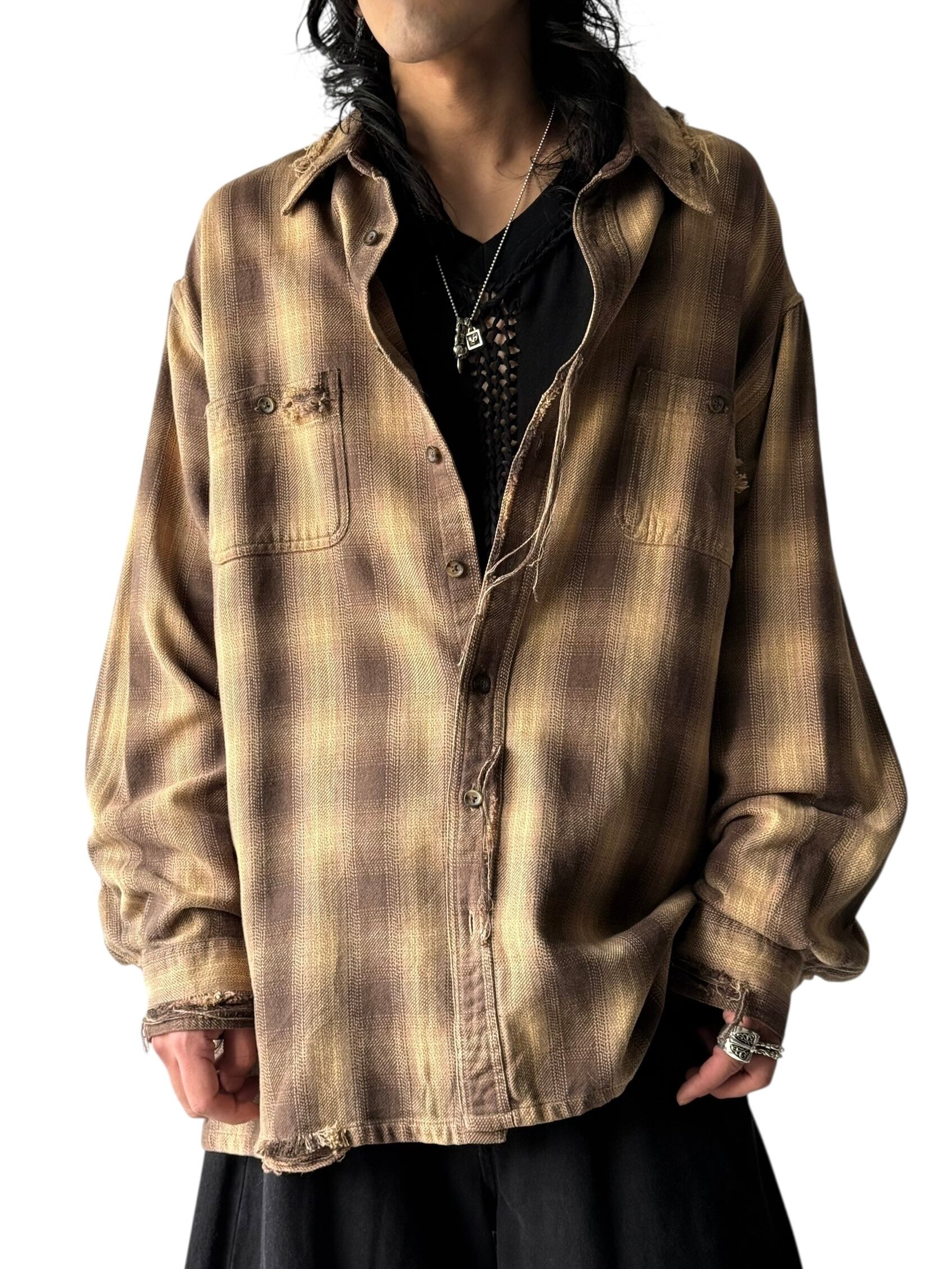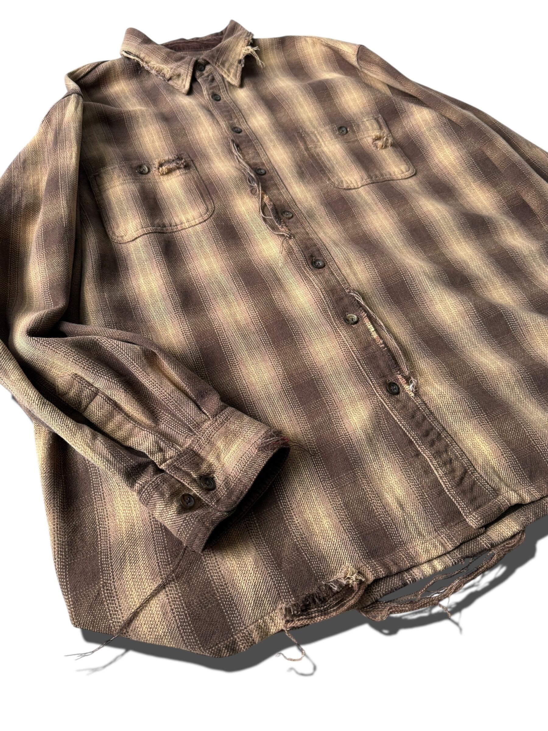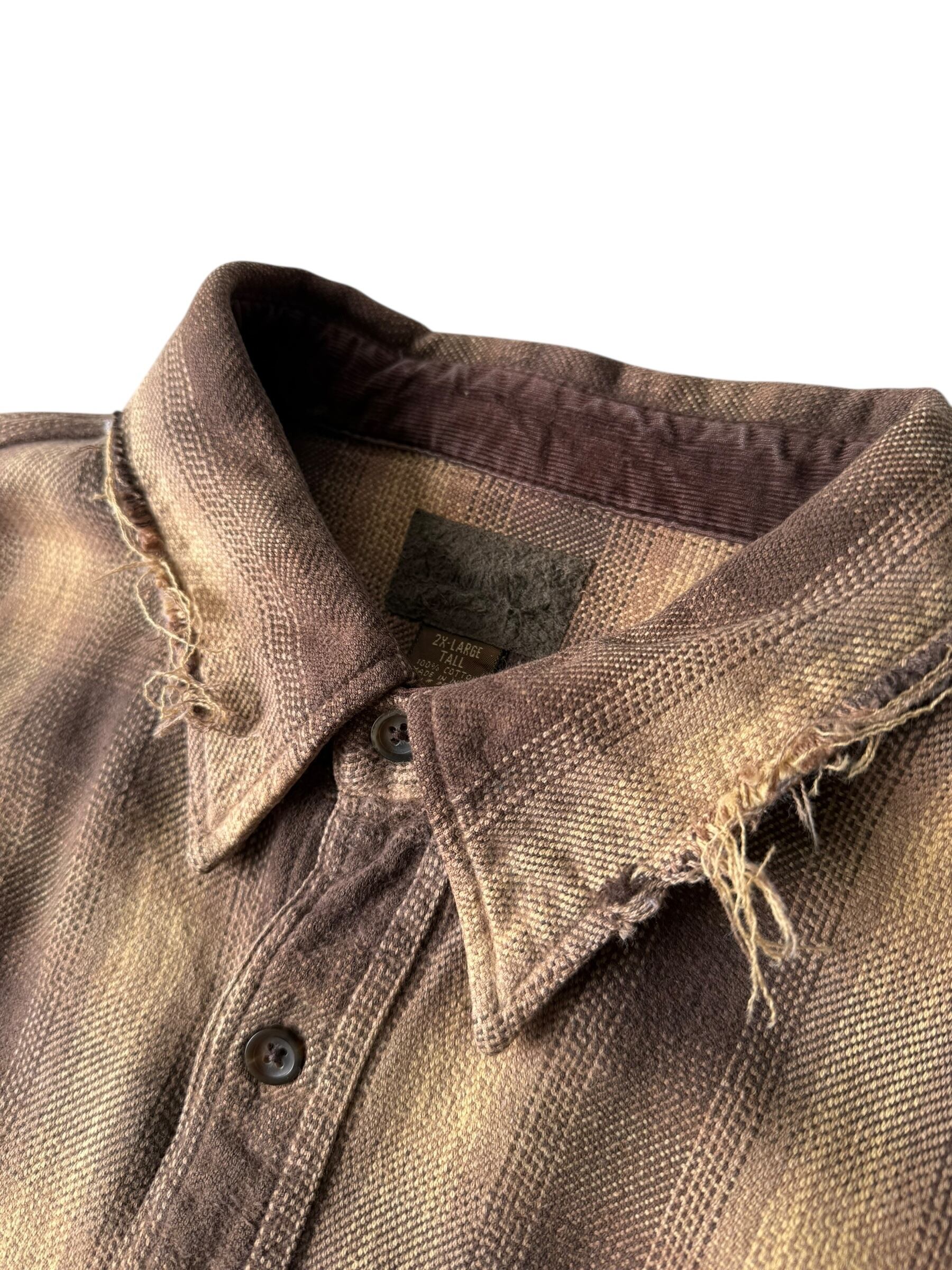 【ST. JOHNS BAY】 Design crushed heavy nel ombre check L/S shirt size2X-LARGE