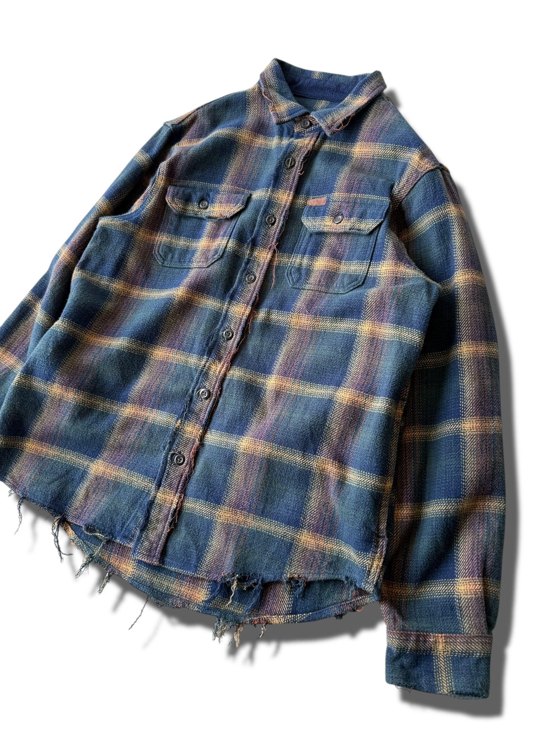 Design crushed heavy nel ombre check L/S shirt