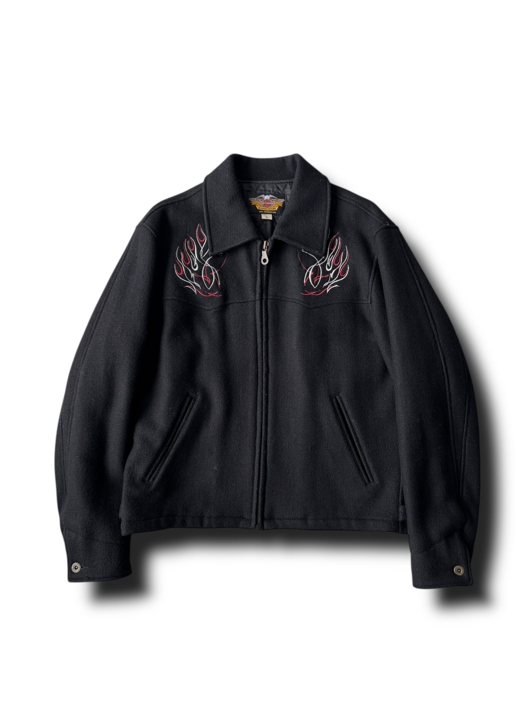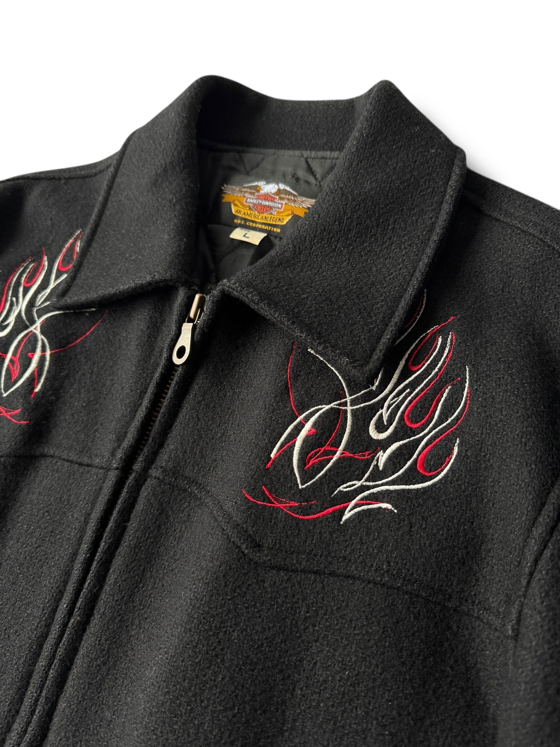 ♾️ HARLEY DAVIDSON ♾️ fire pattern embroidered zip up jacket size L