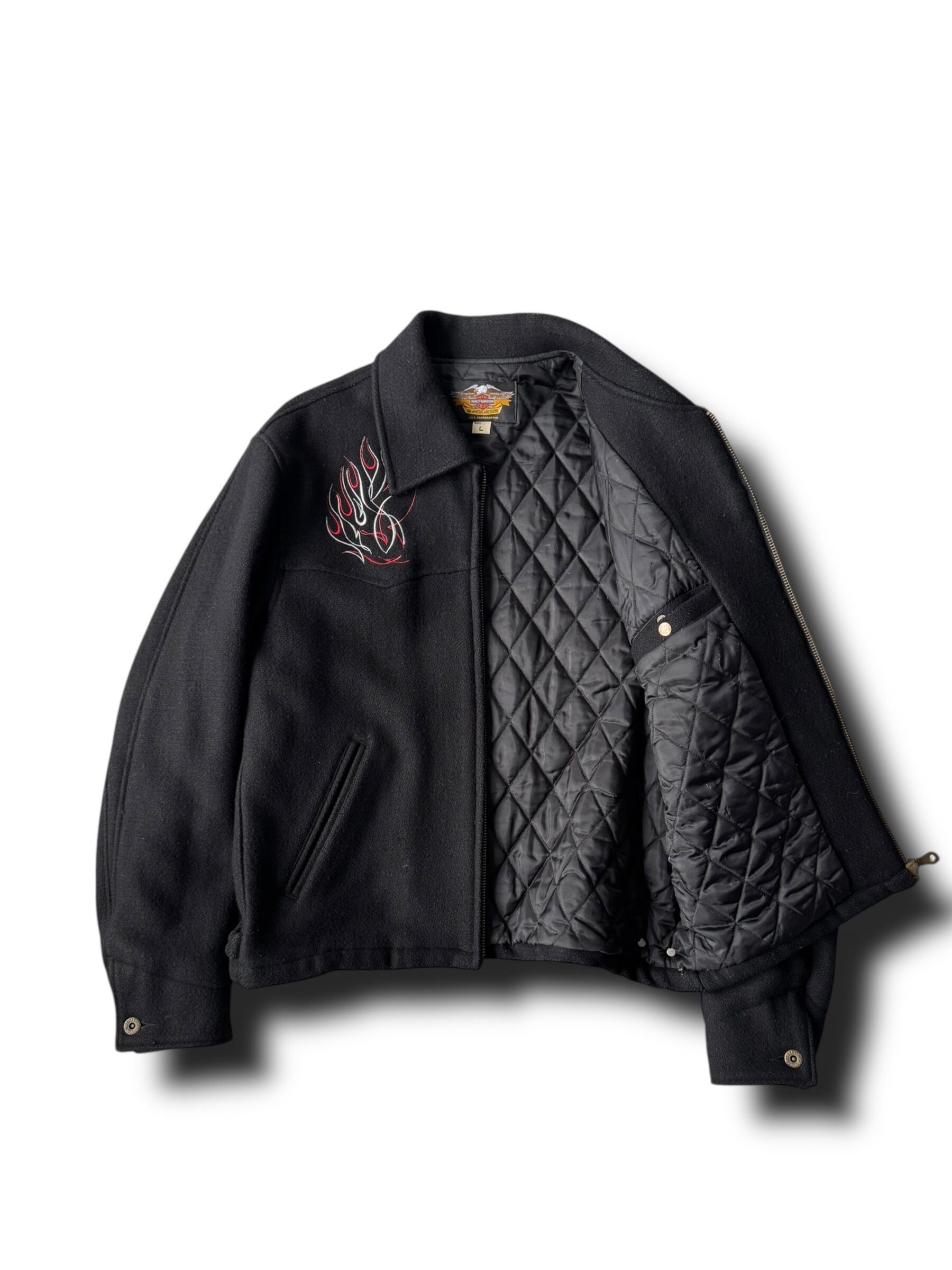 ブラックに赤の刺繍デザインが超バエなハーレーのウールジャケットの入荷✨️