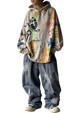 ♾No BOUNDARIES♾ Paint Design Oversized Pullover Hoodie size 3XL