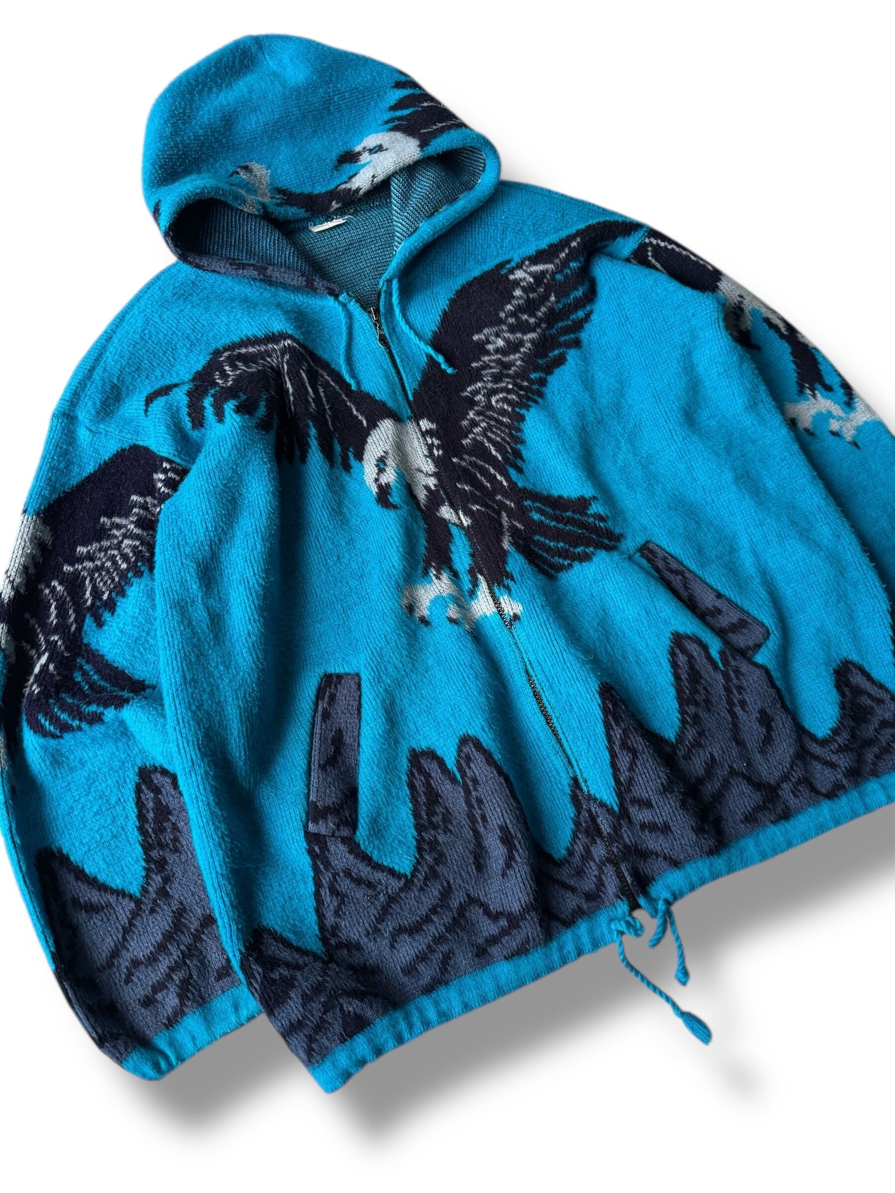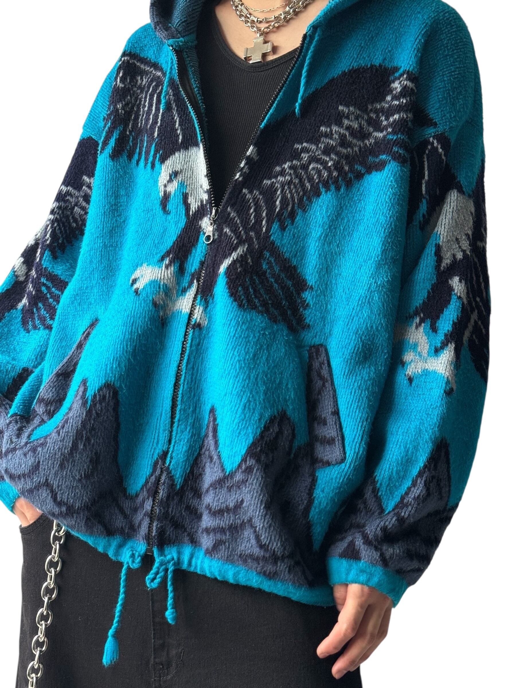 ♾ARTESANIAS♾ Eagle design ecuador zip knit hoodie size L