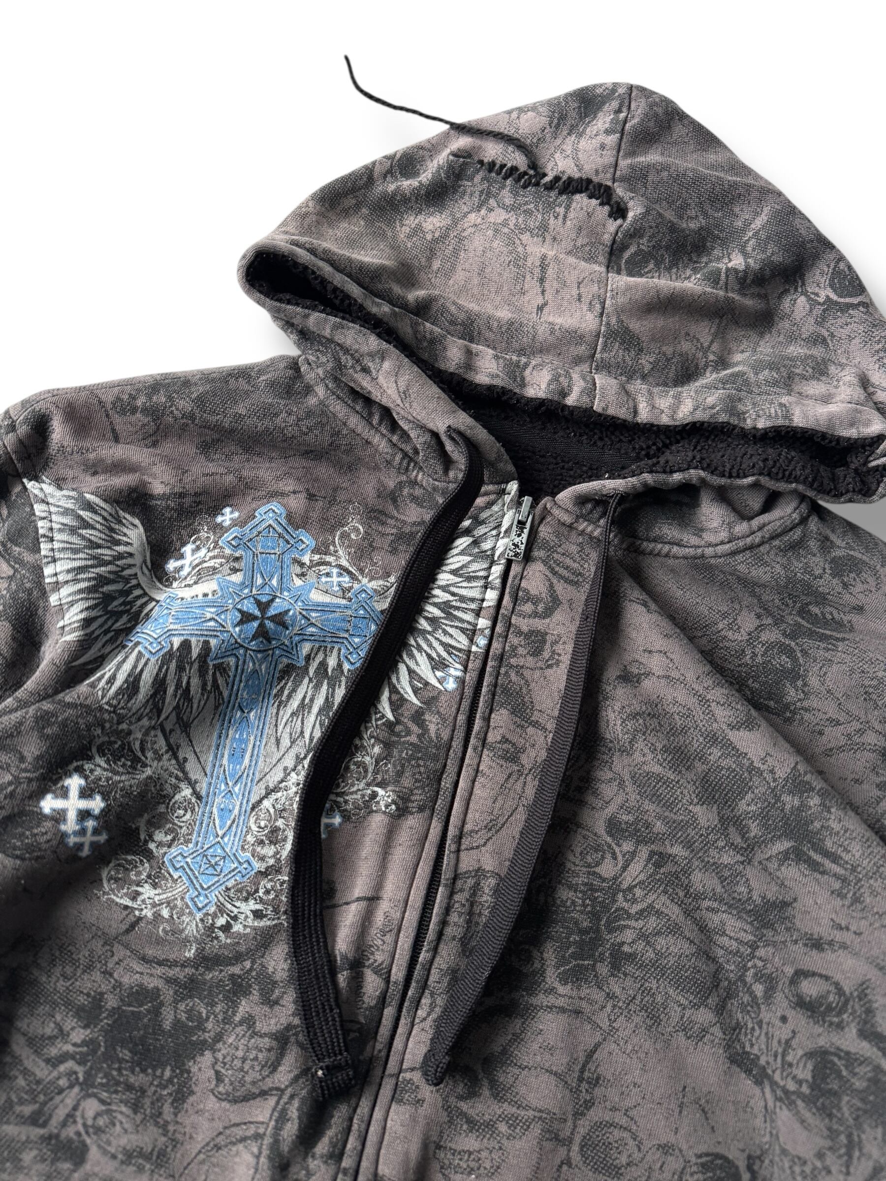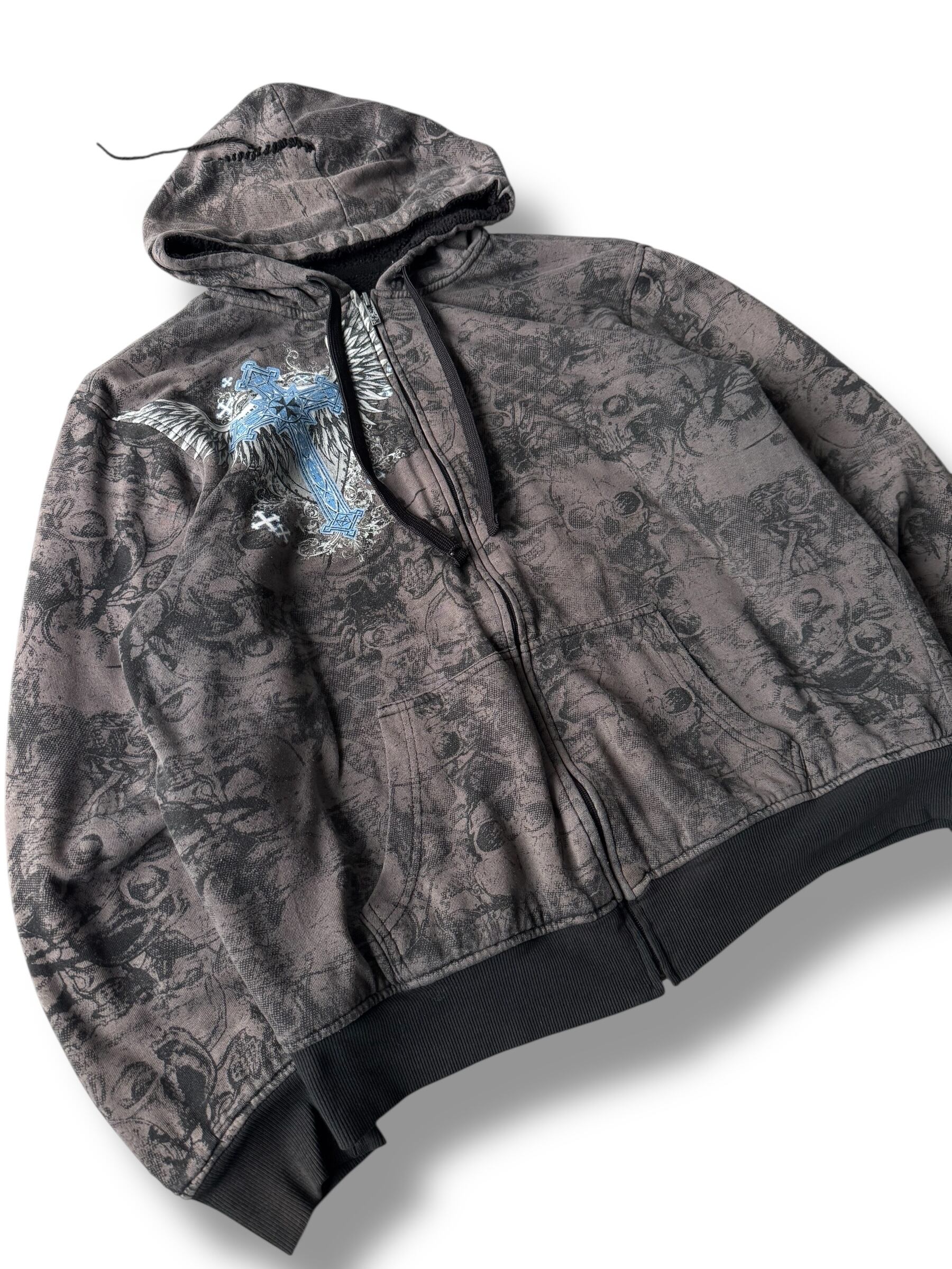 ♾No BOUNDARIES♾ Skull motif full graphic design zip hoodie size L