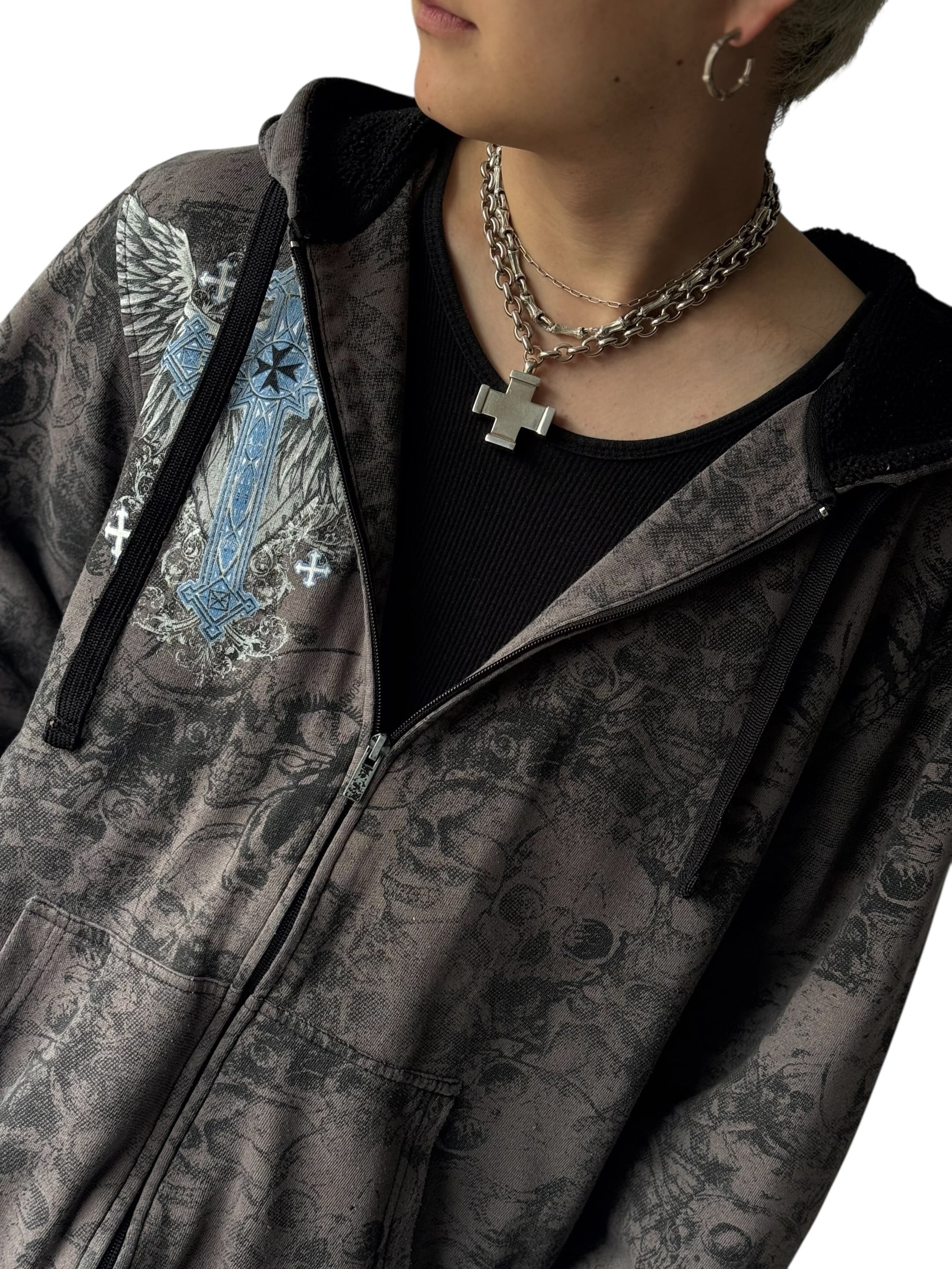 Skull motif full graphic design zip hoodie