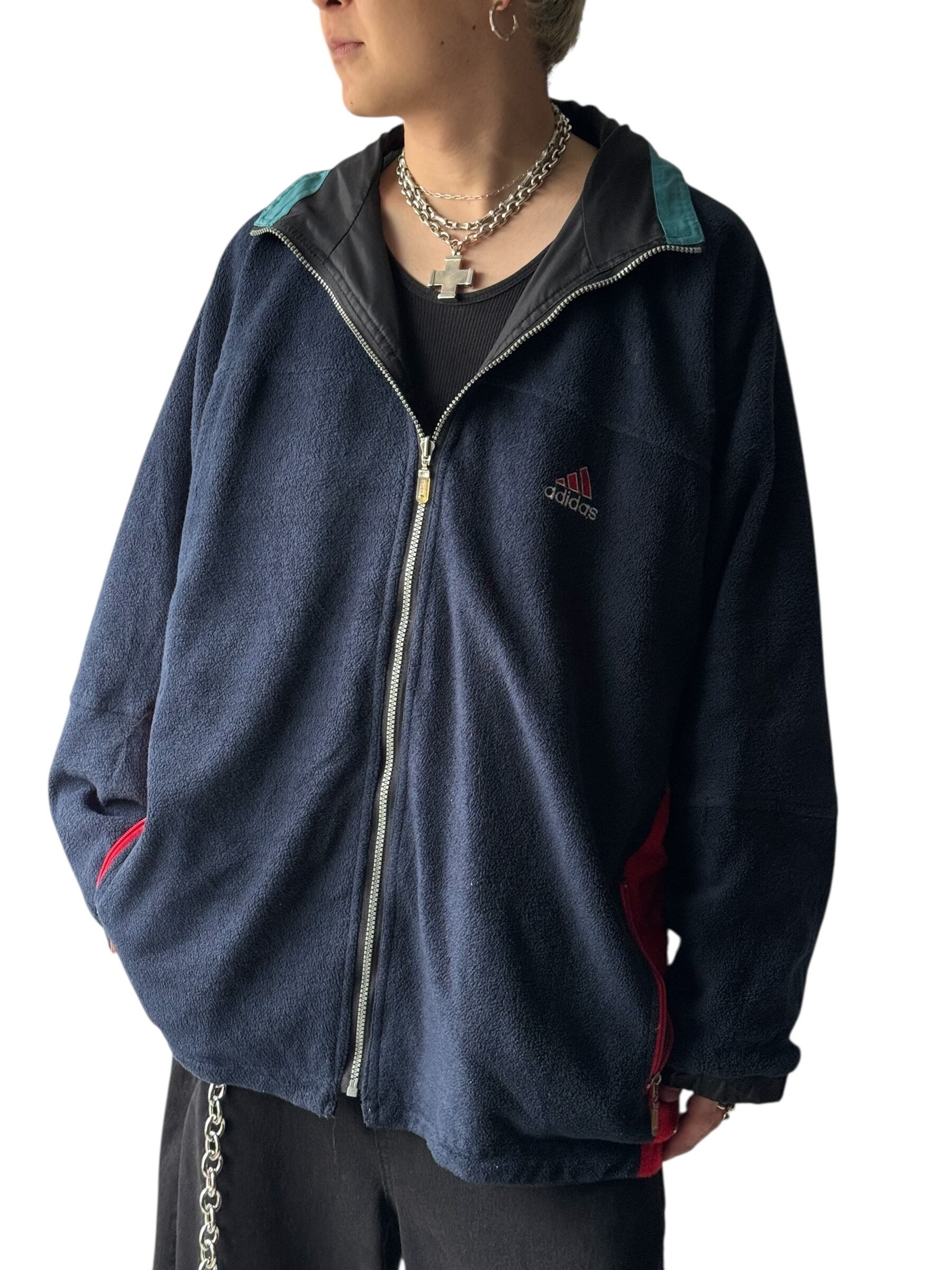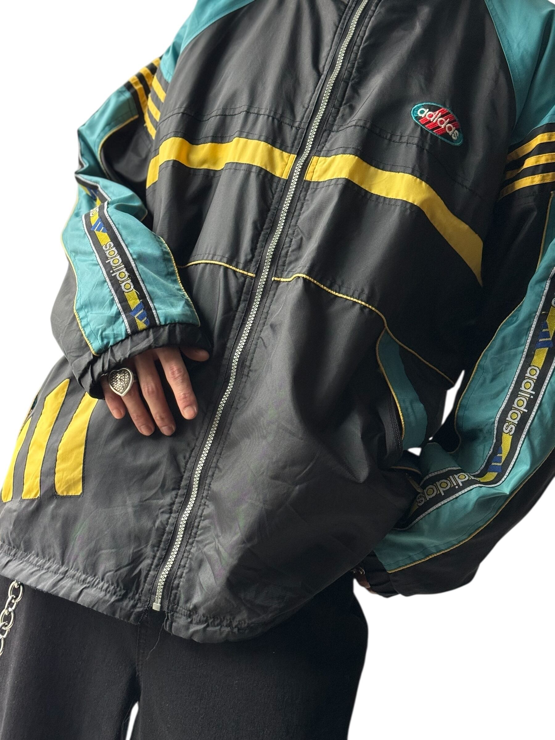 ♾90's adidas♾ double face design nylon track jacket sizeXXL