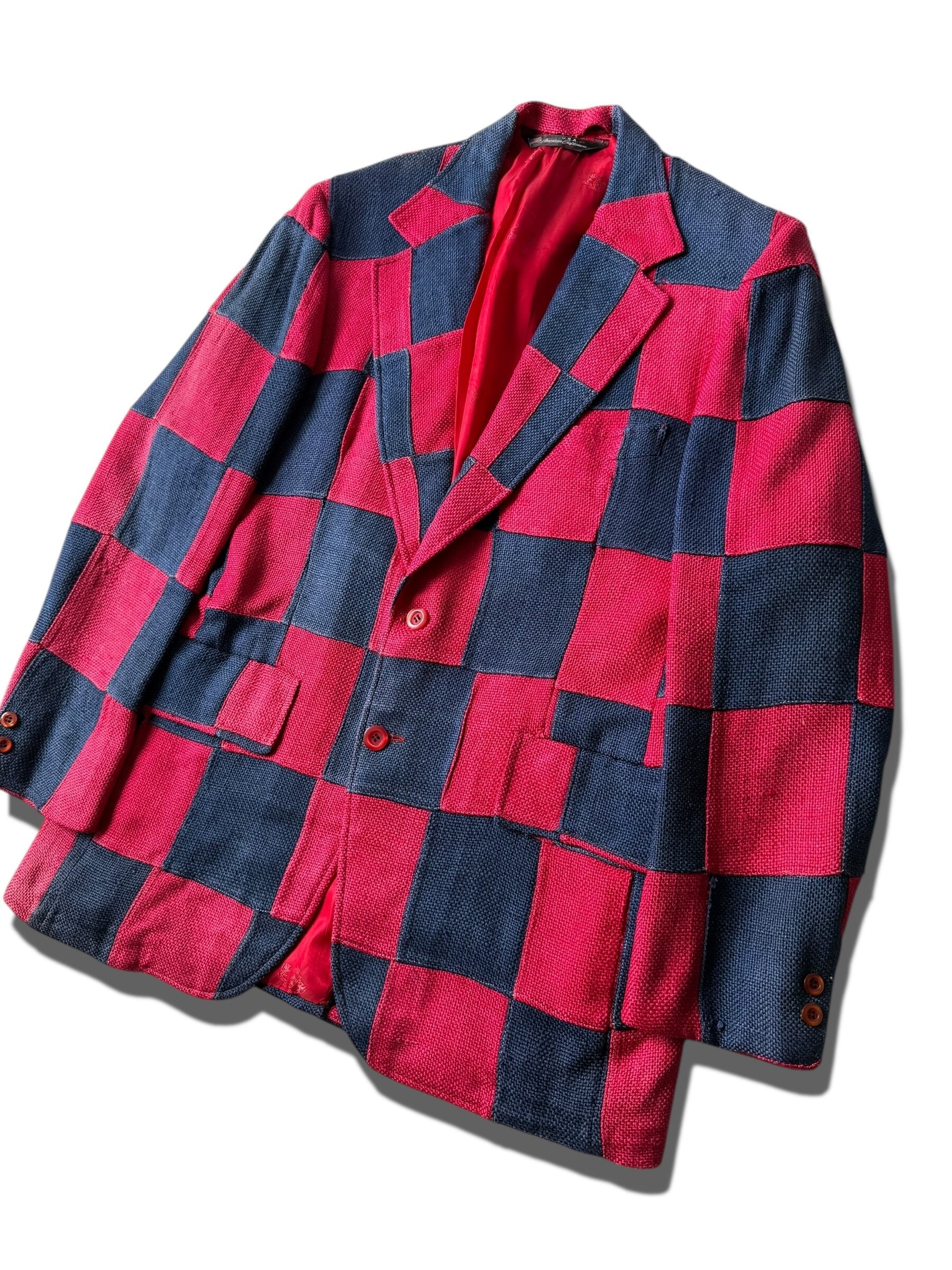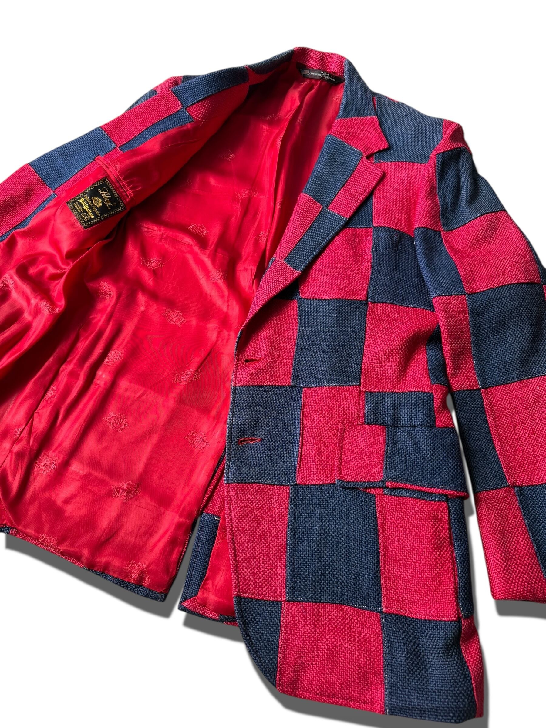 【MADE IN U.S.A.】70s Vintage Silk Woven check pattern tailored jacket