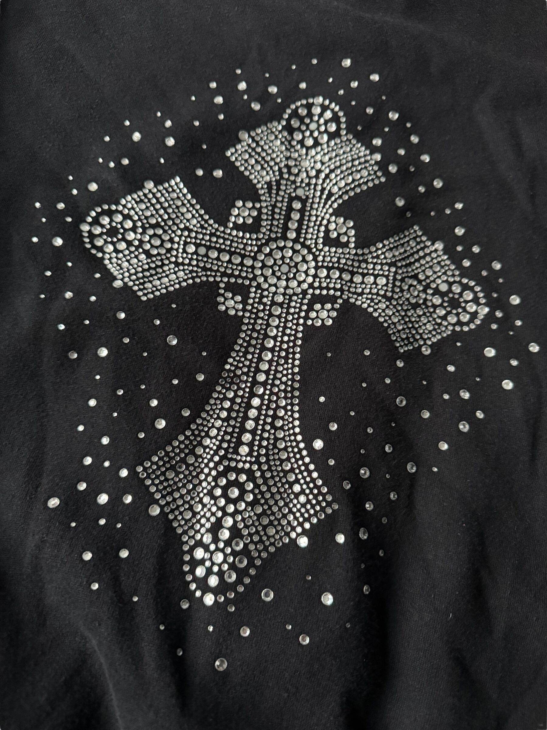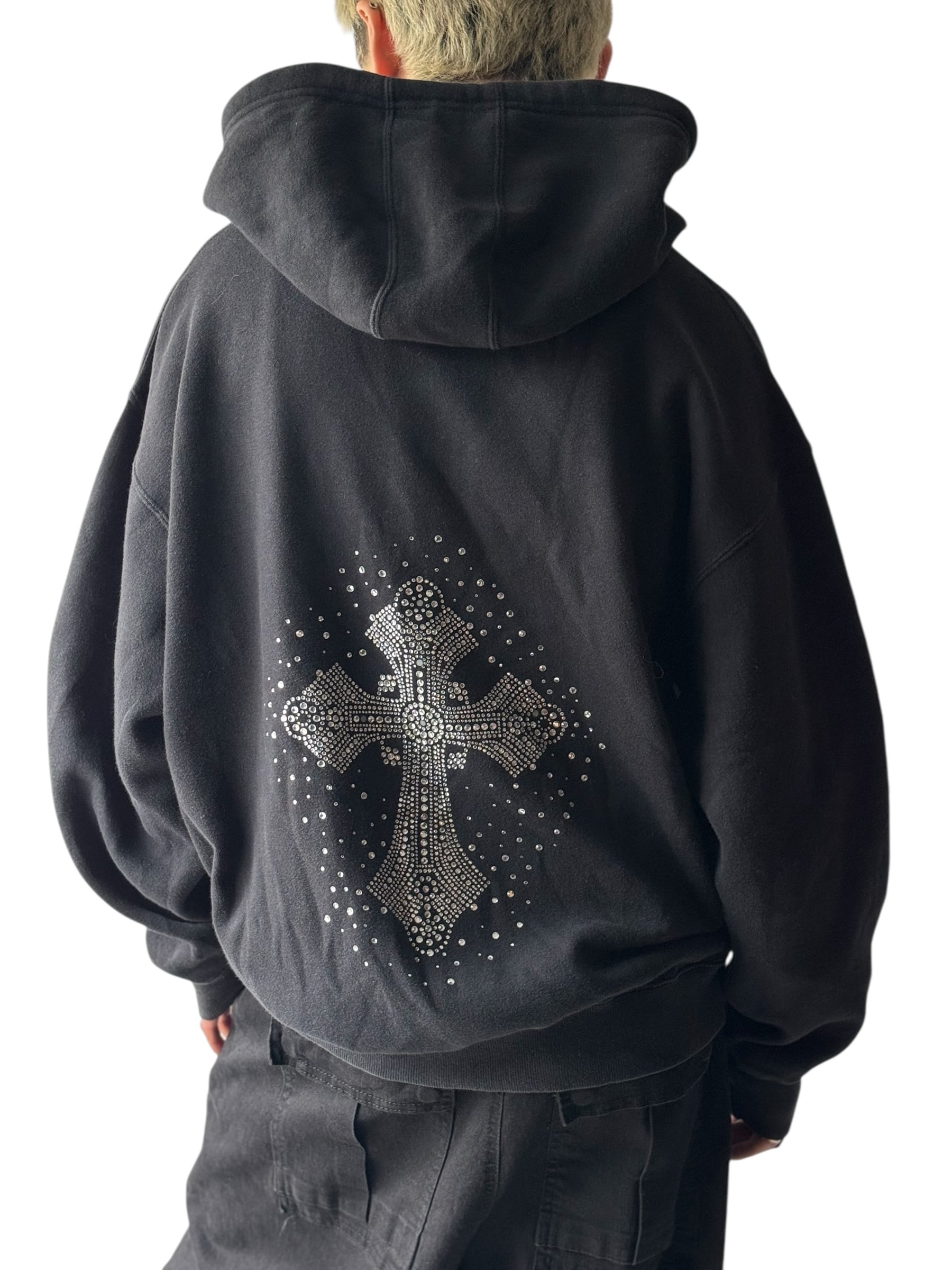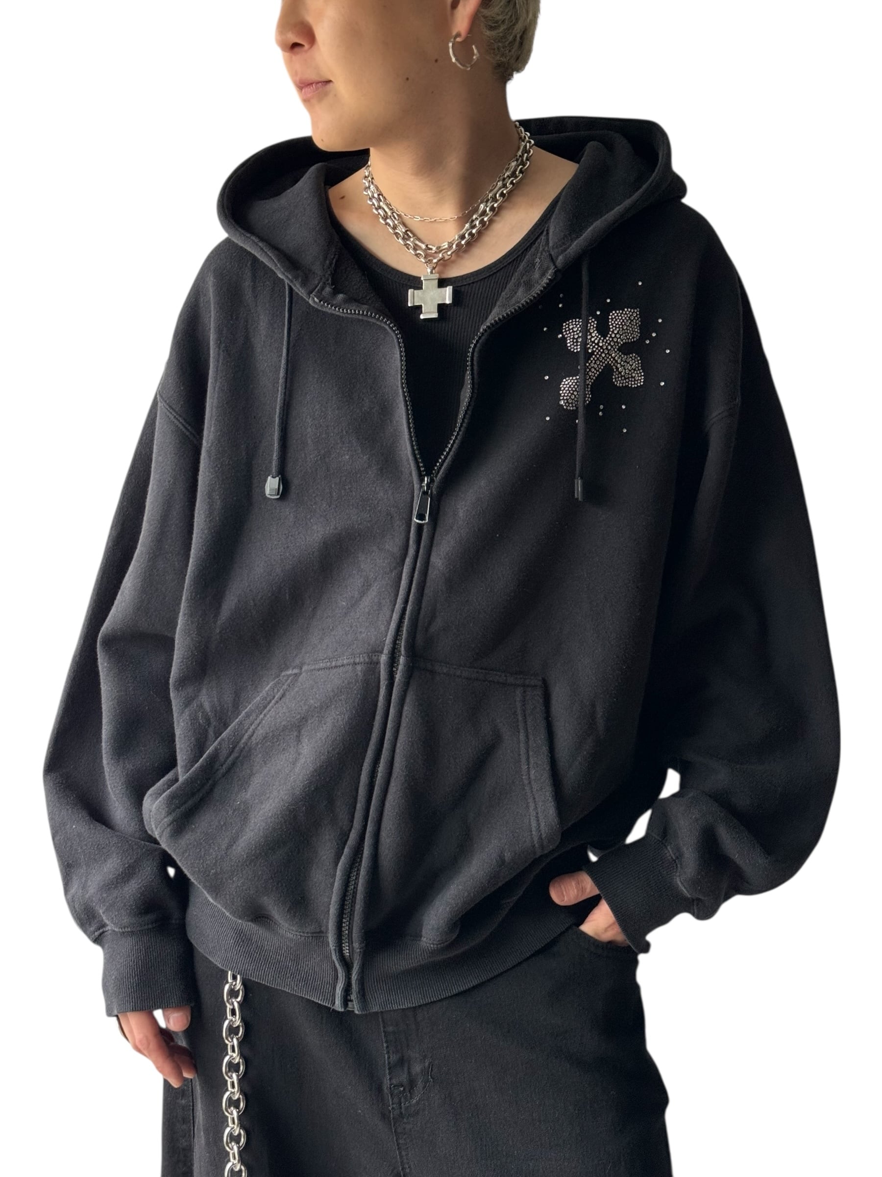 ♾design used♾ Cross motif rhinestone design zip hoodie size XL