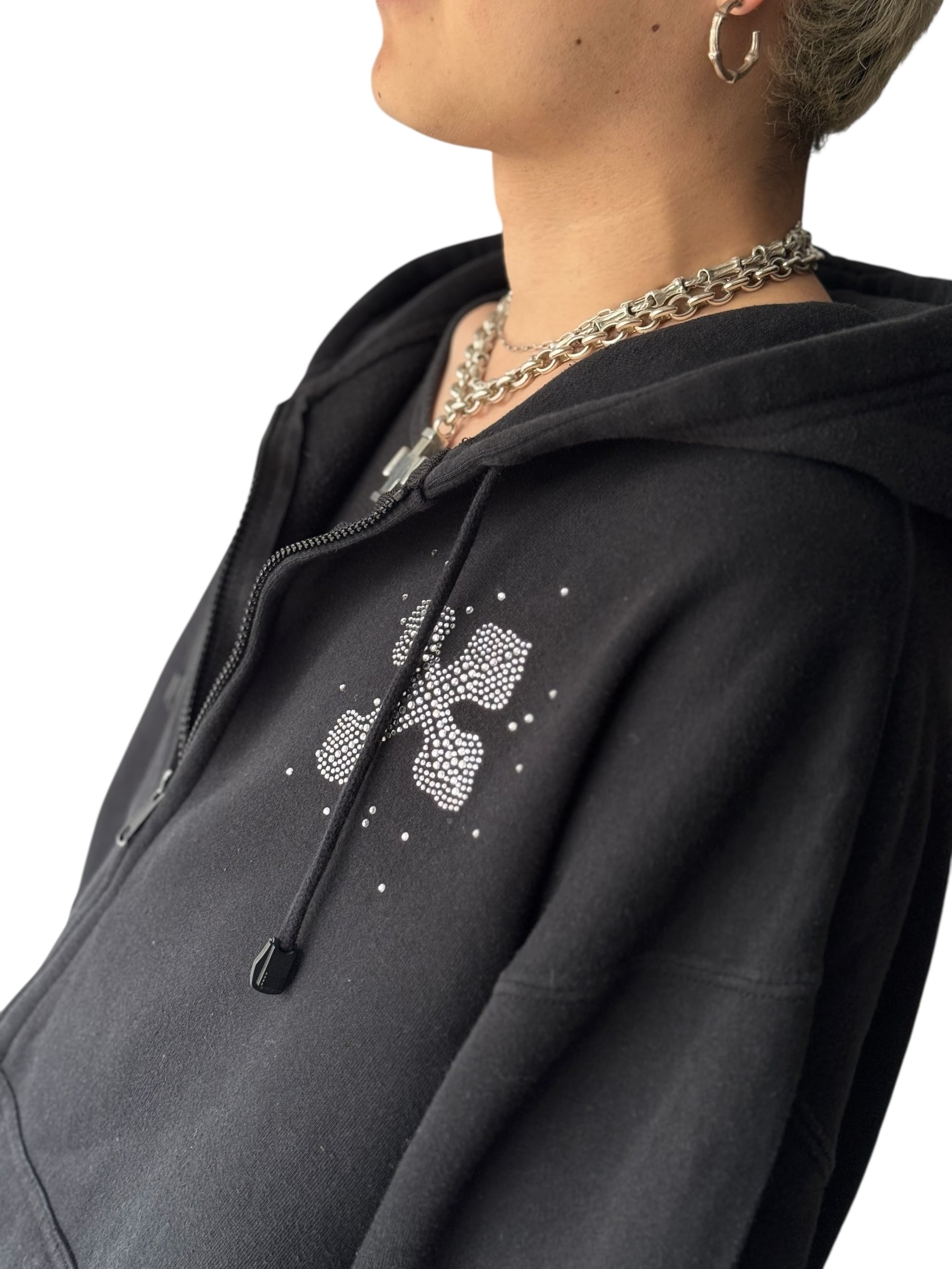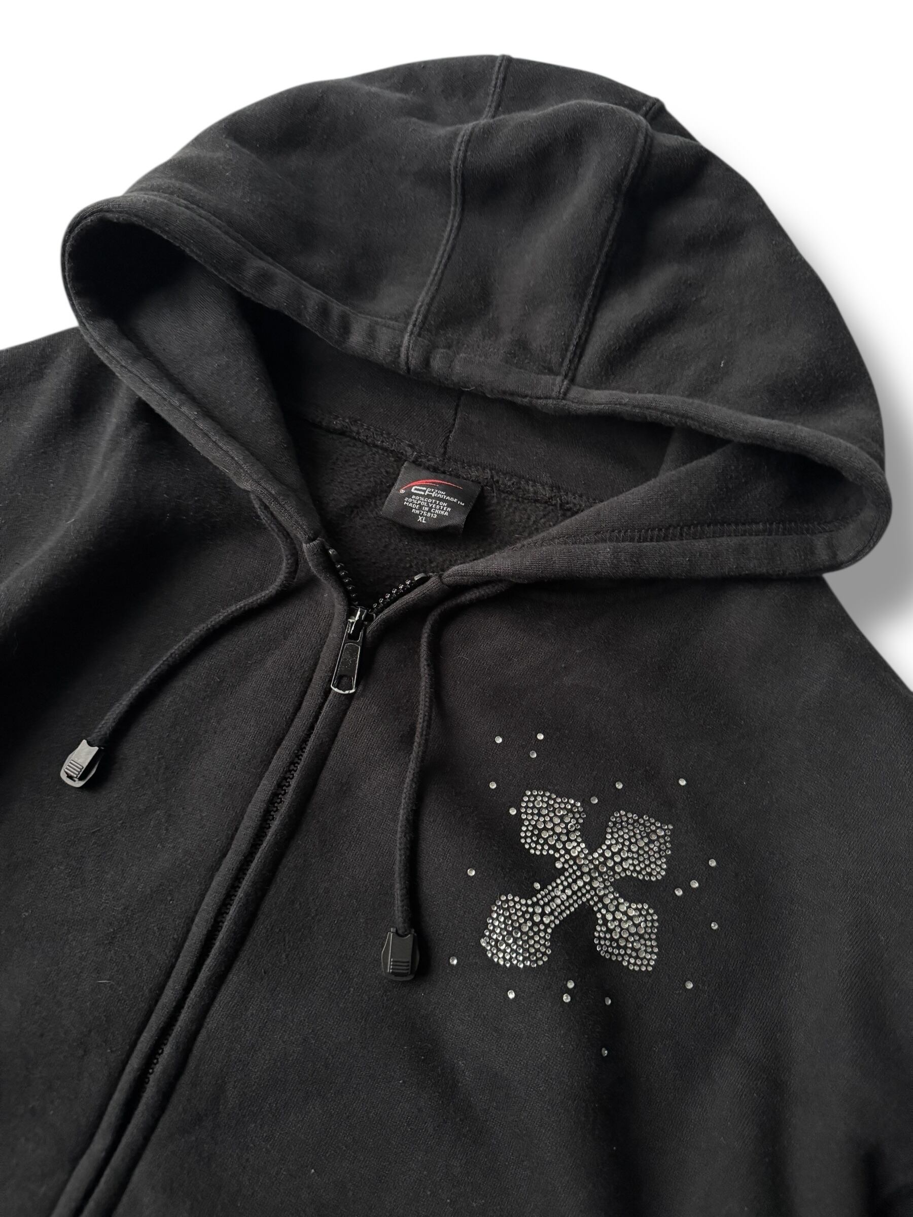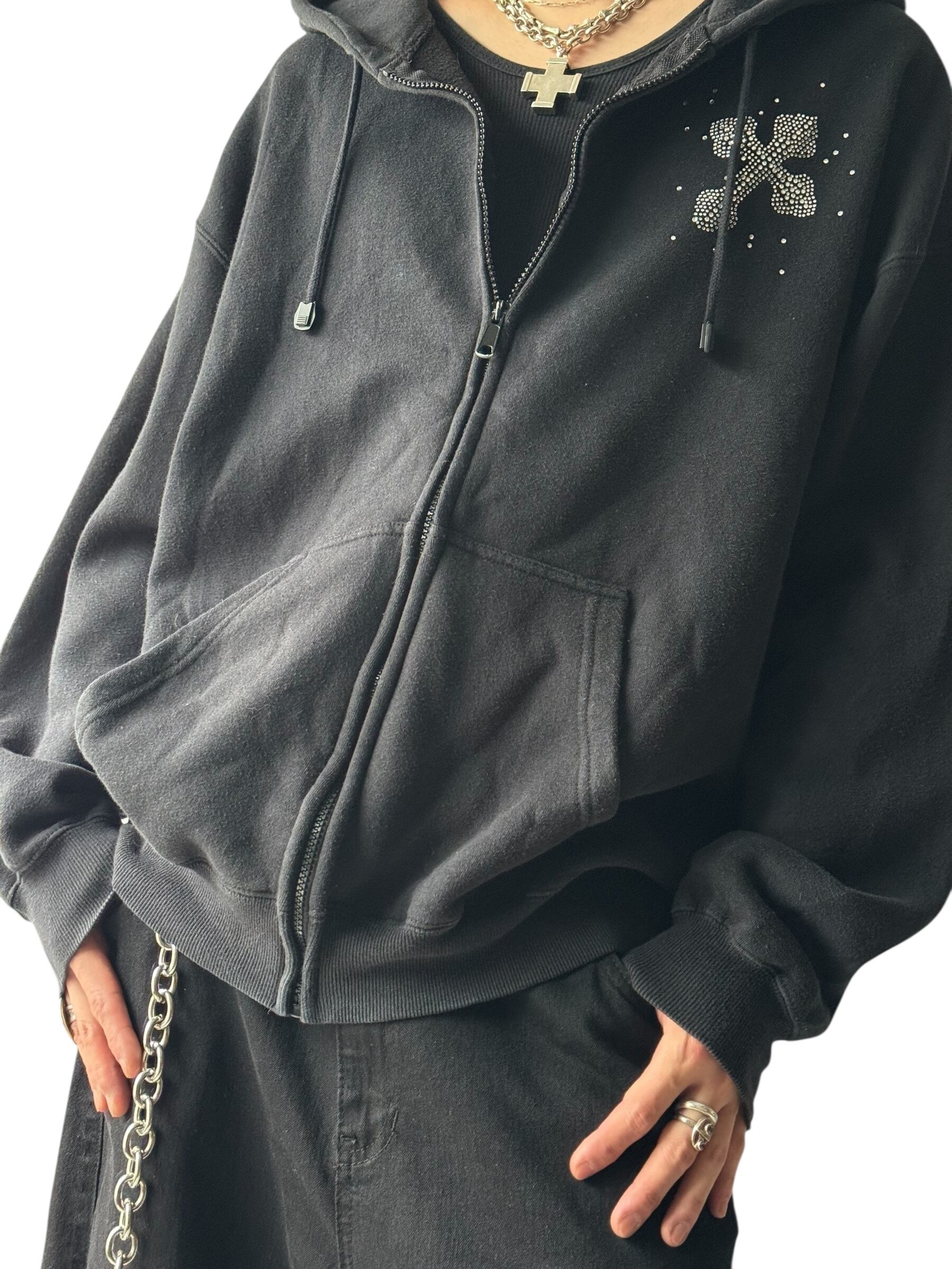 ♾design used♾ Cross motif rhinestone design zip hoodie size XL