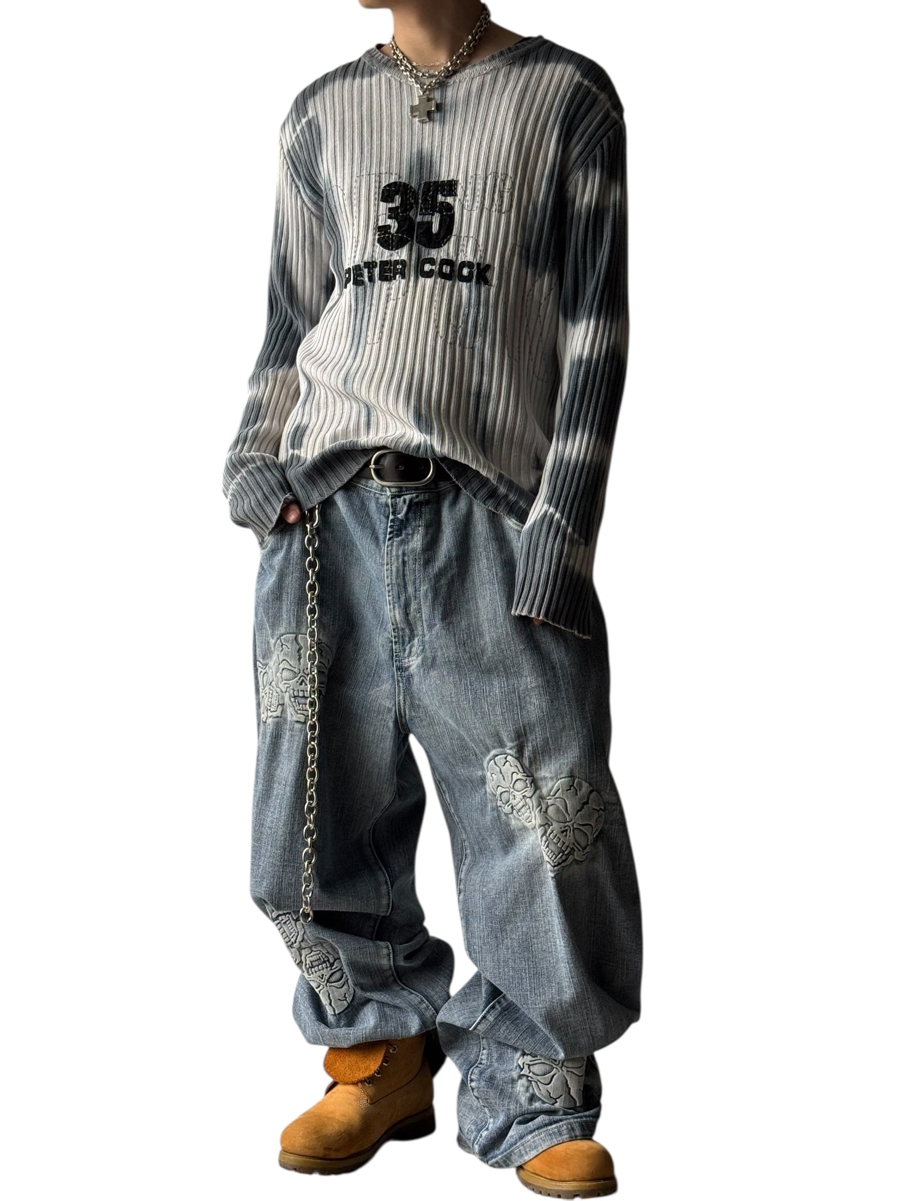 ♾peter cook♾ Tie-dye design embroidered patch sweater size L