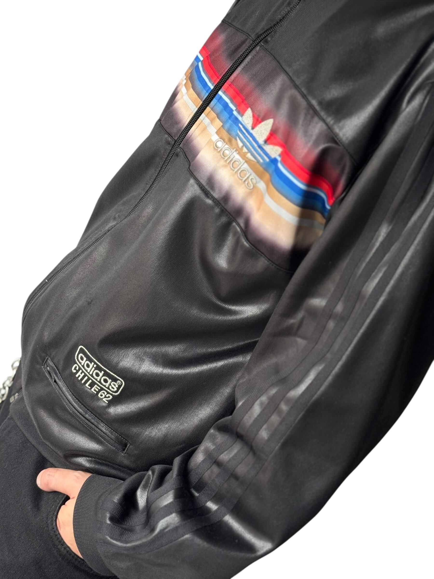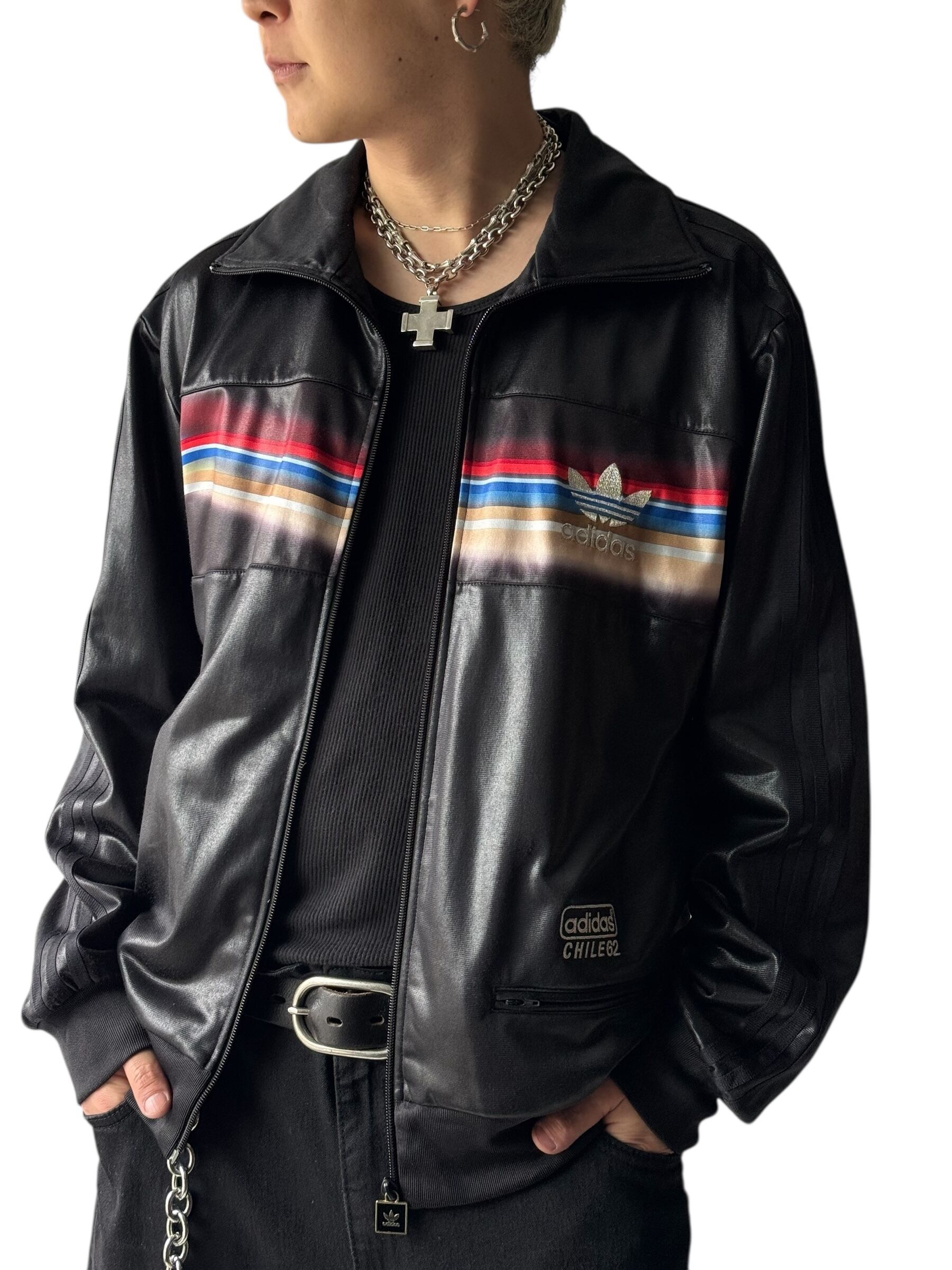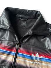 ブラックカラーにカラフルなラインが胸部に広がるデザイントラックジャケット✨️