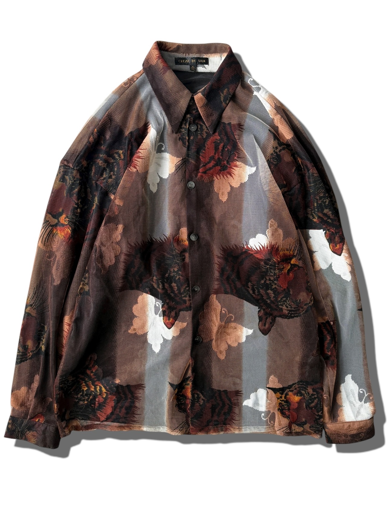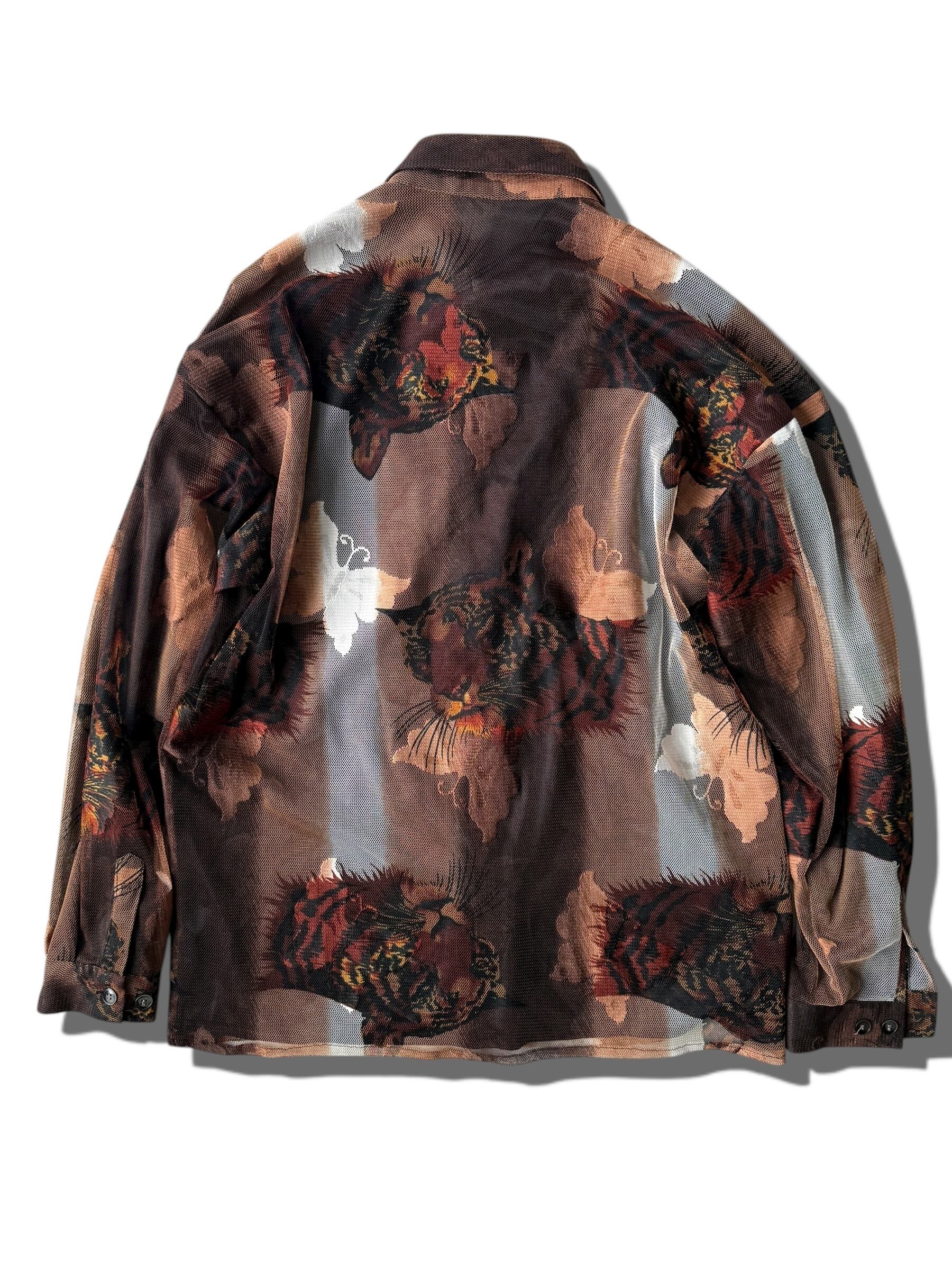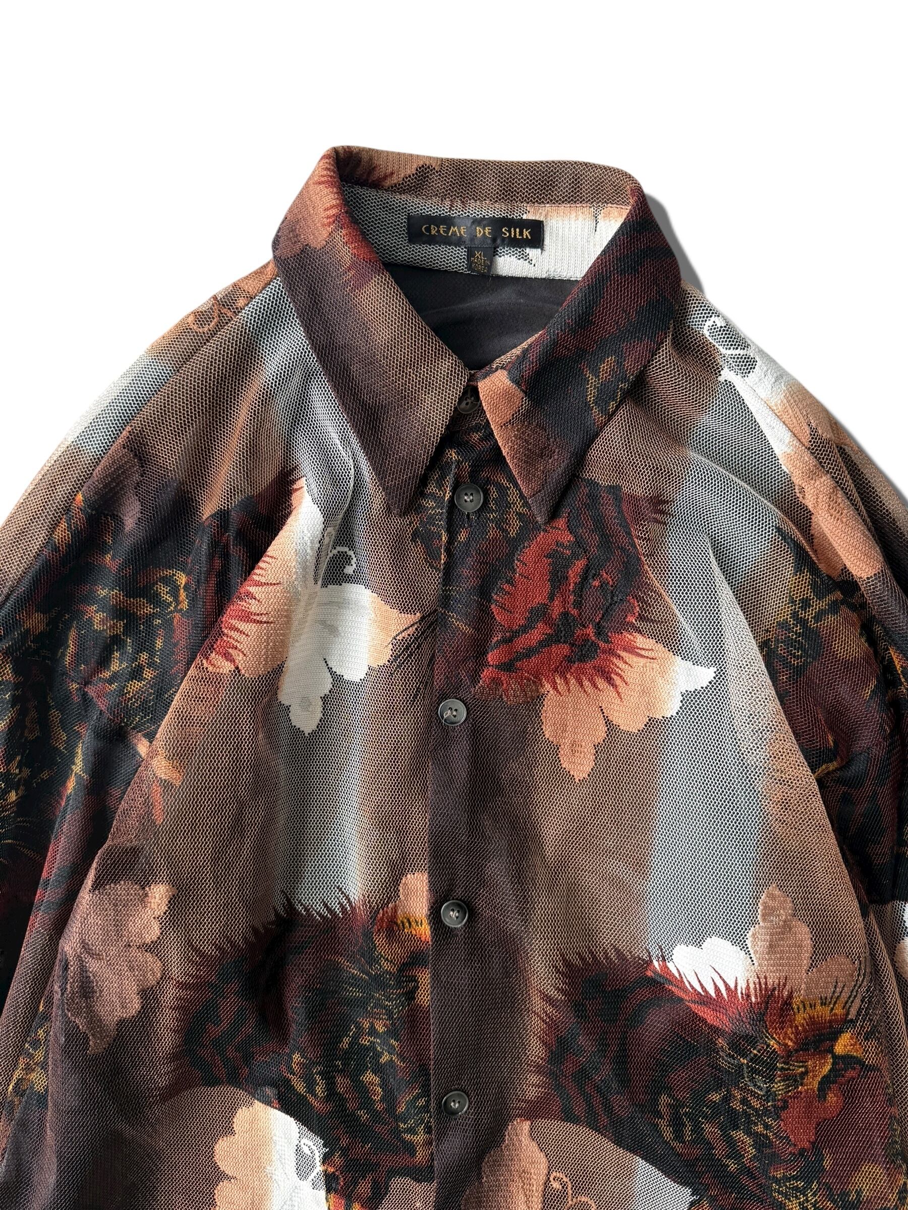 【CREME DE SILK】"Butterfly and Cheetah" Mesh pattern design shirt