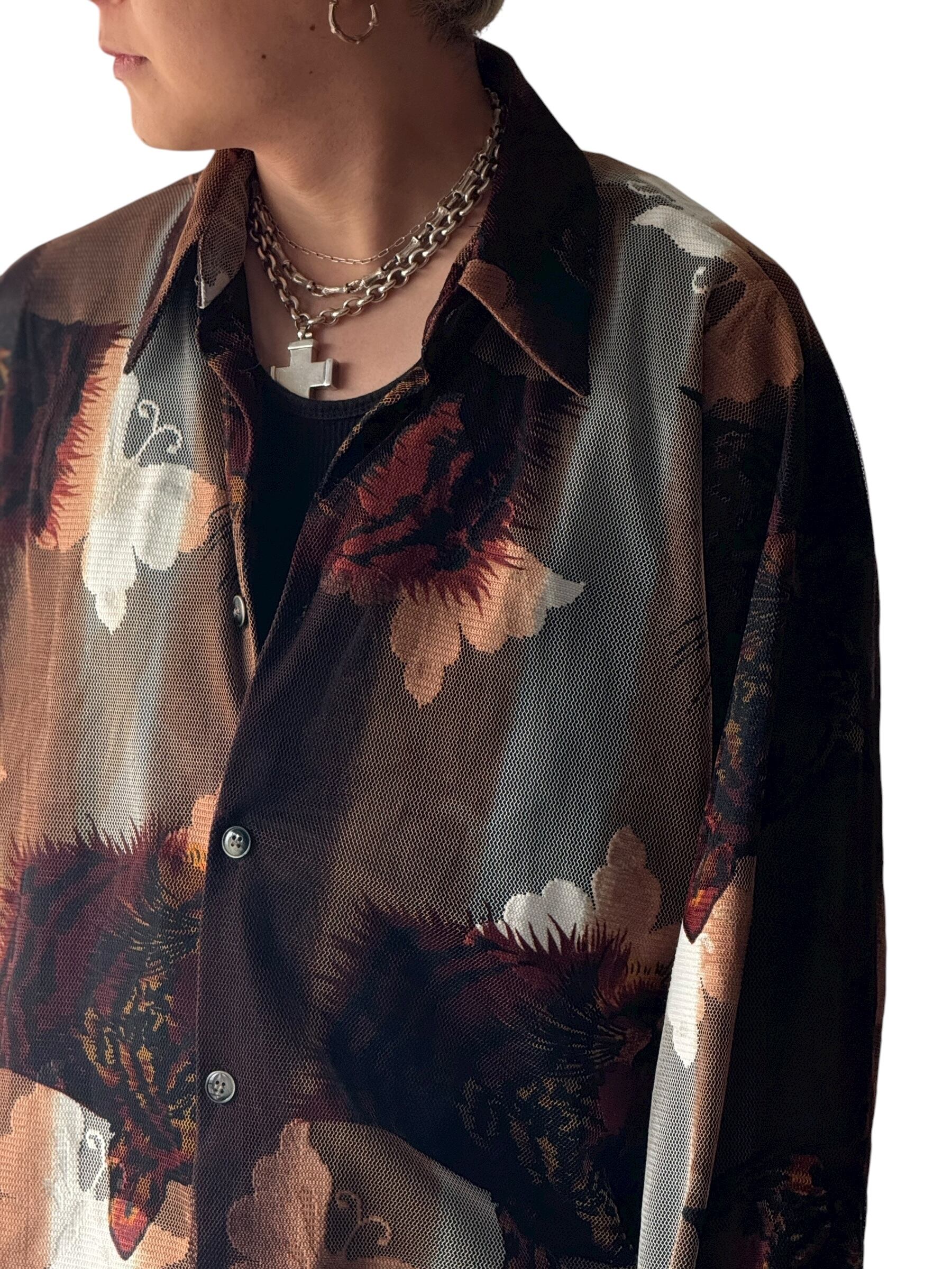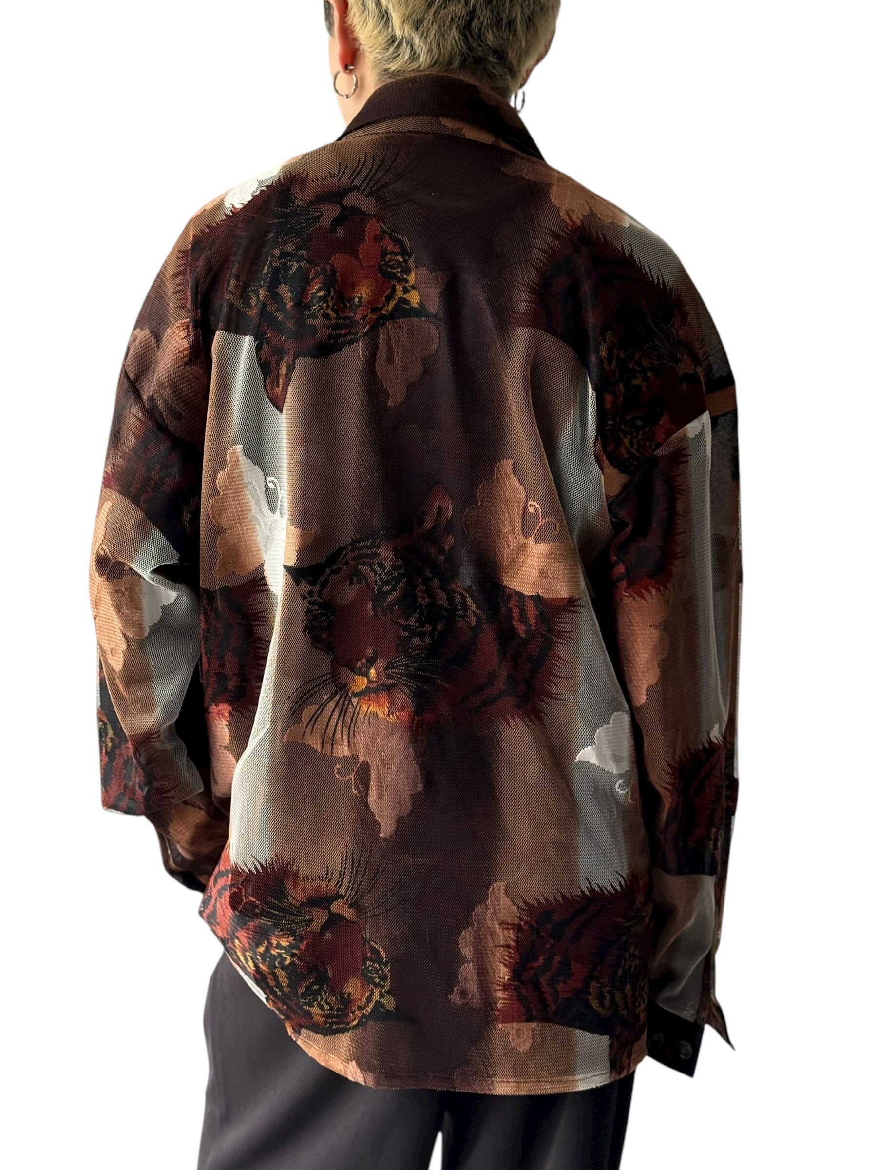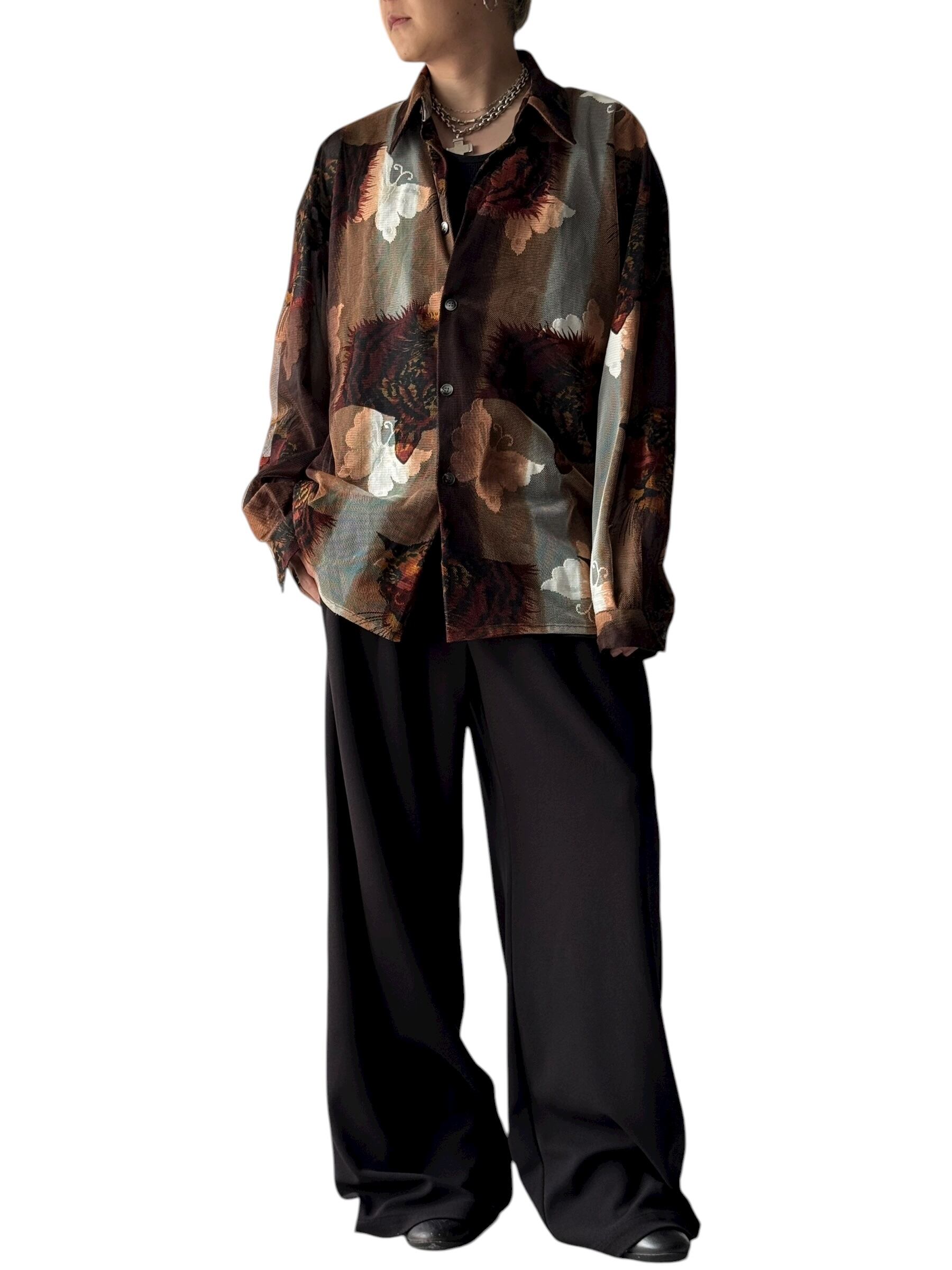 【CREME DE SILK】"Butterfly and Cheetah" Mesh pattern design shirt