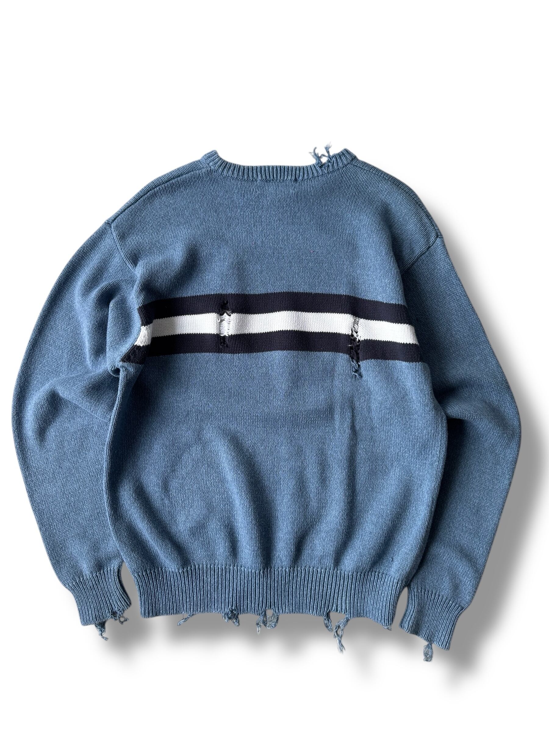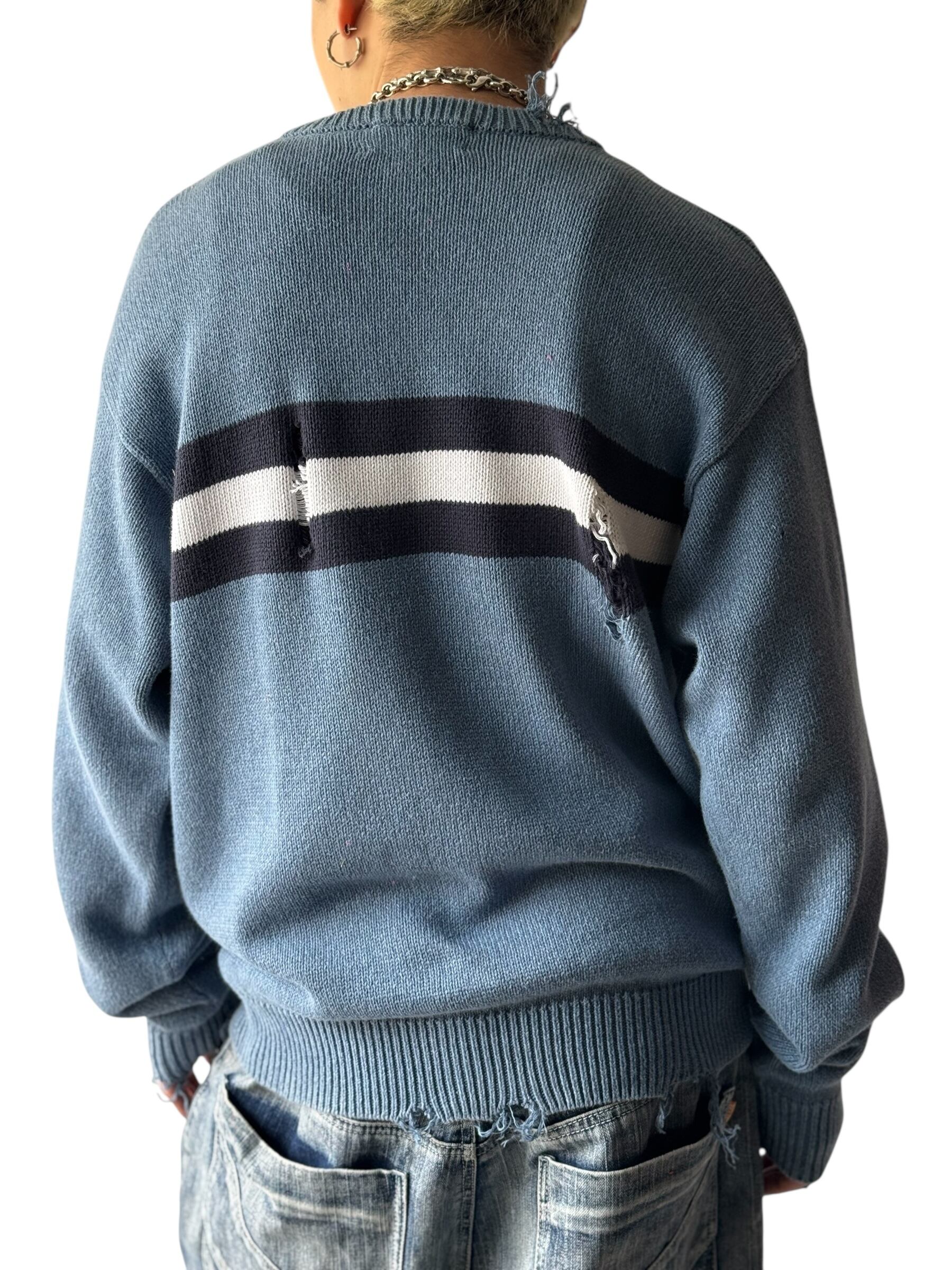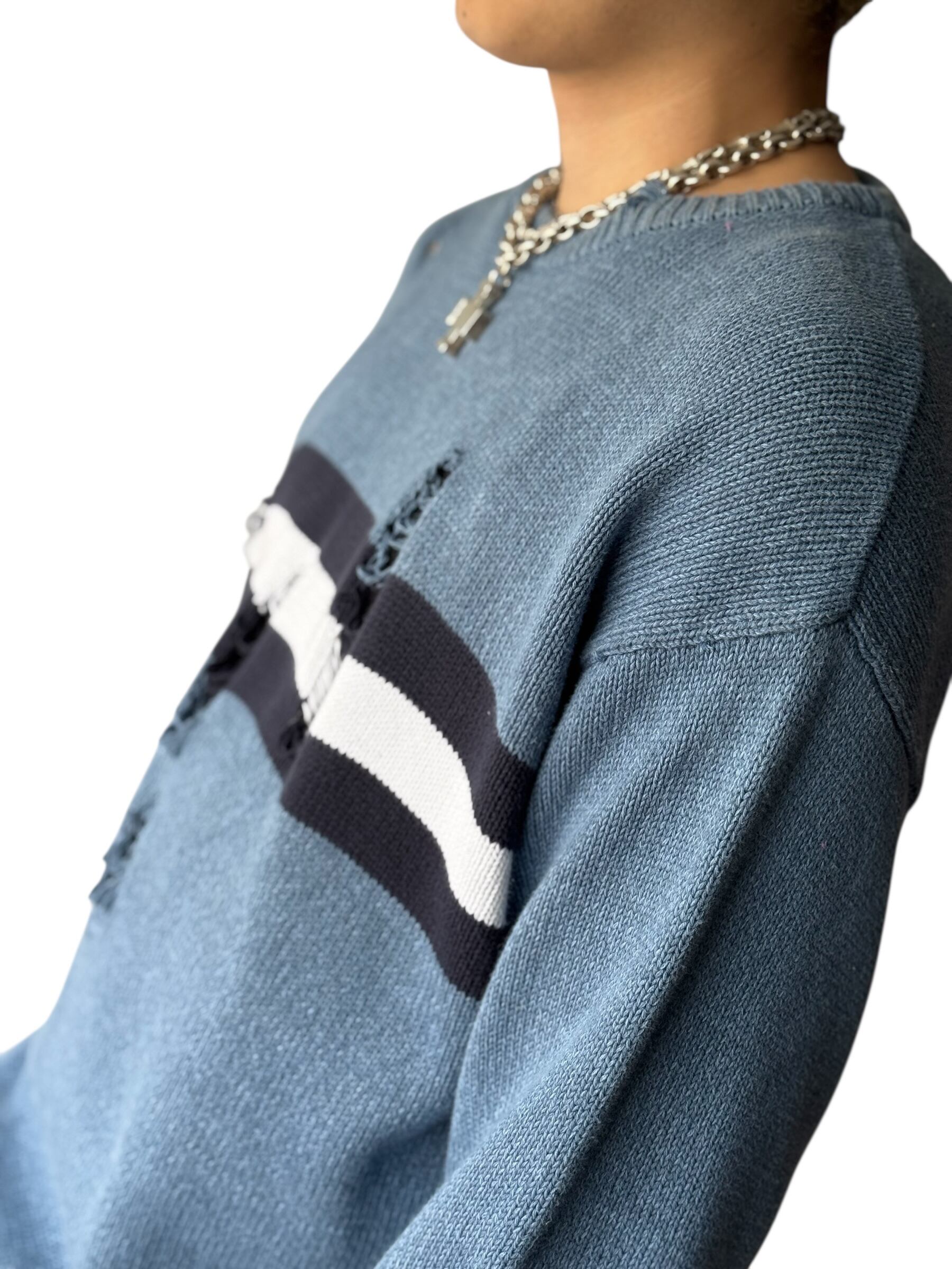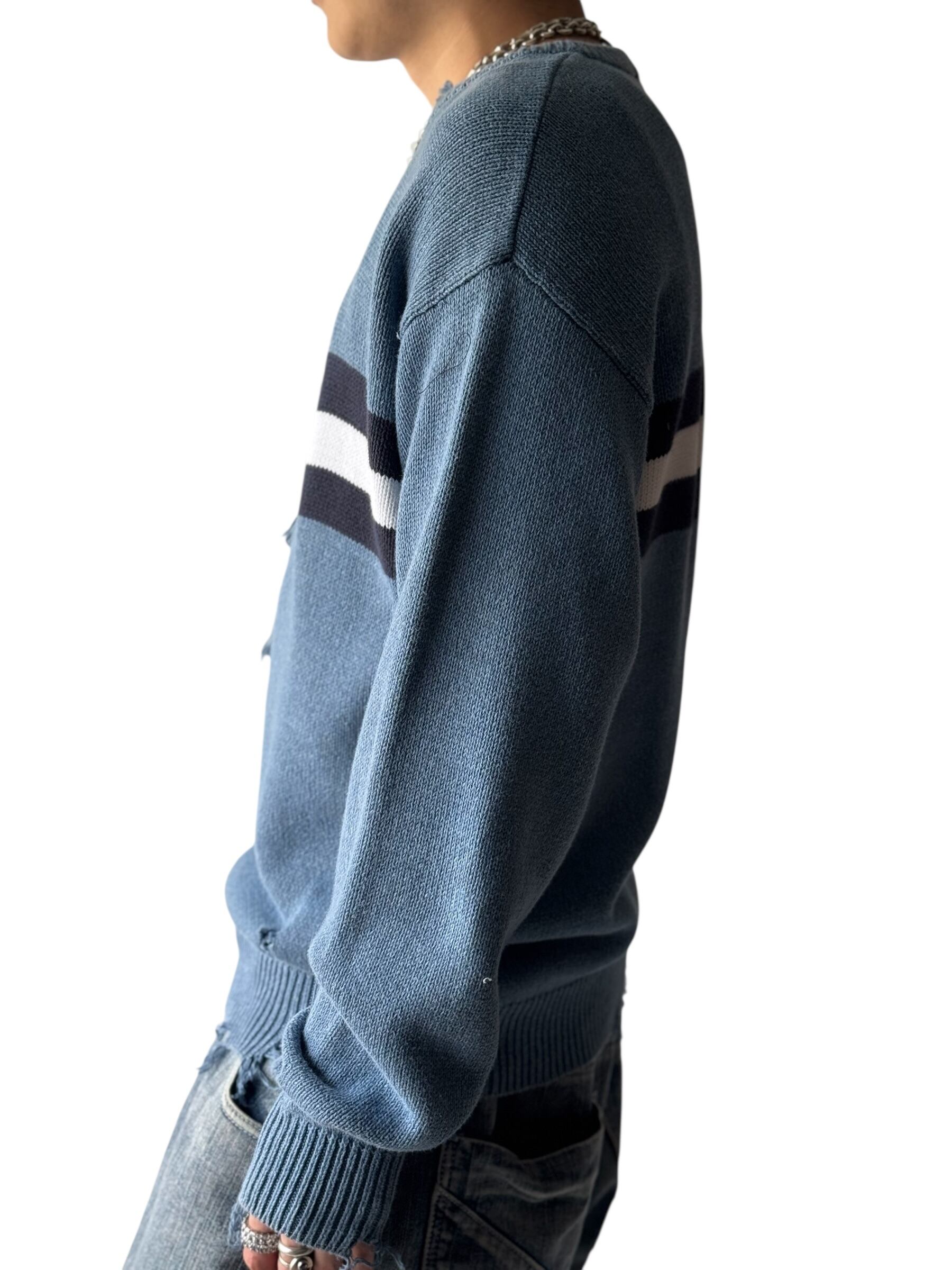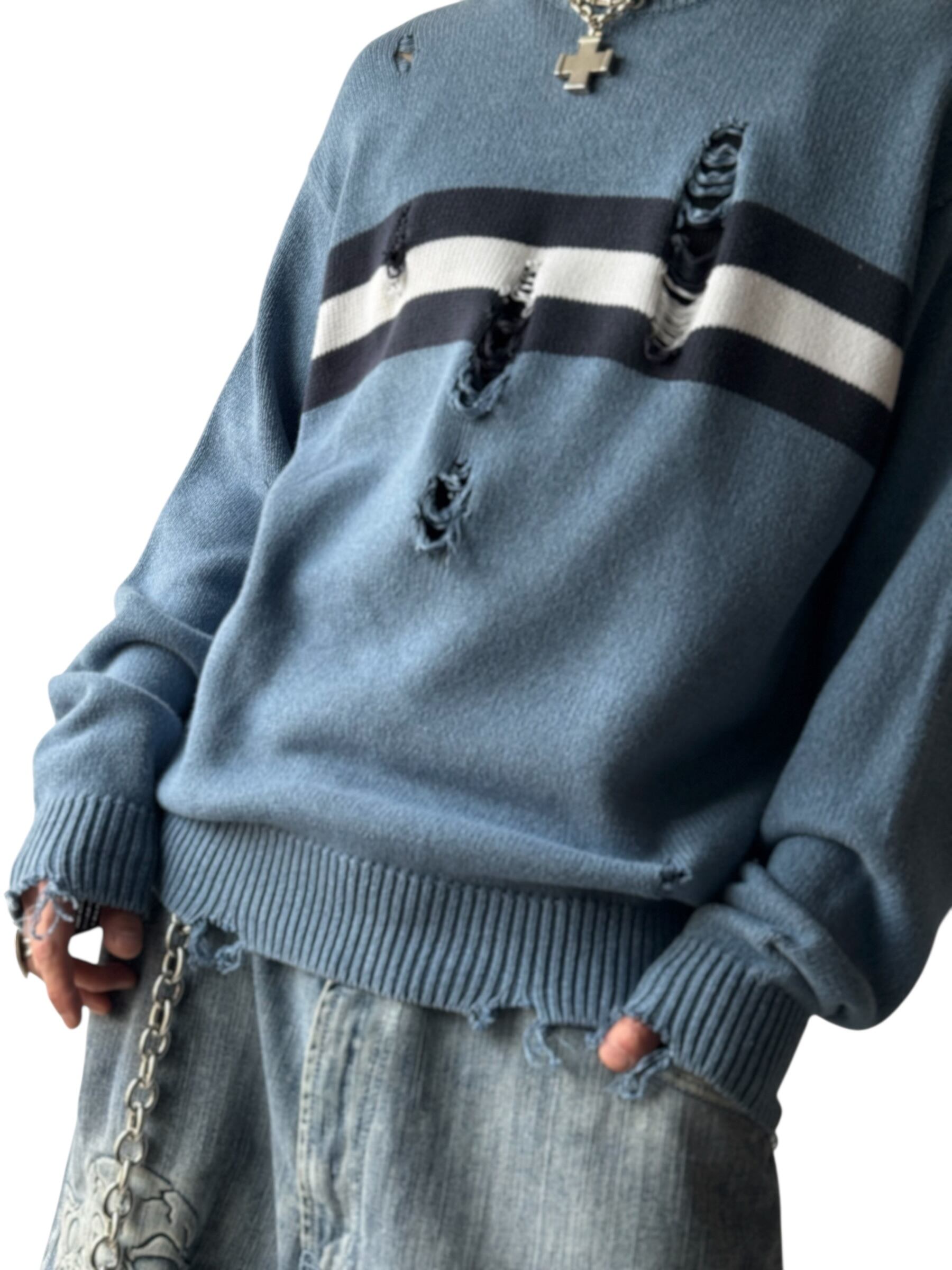 存在感抜群なセンターのワイドピッチボーダーが目を引くクラッシュデザインニット‼️