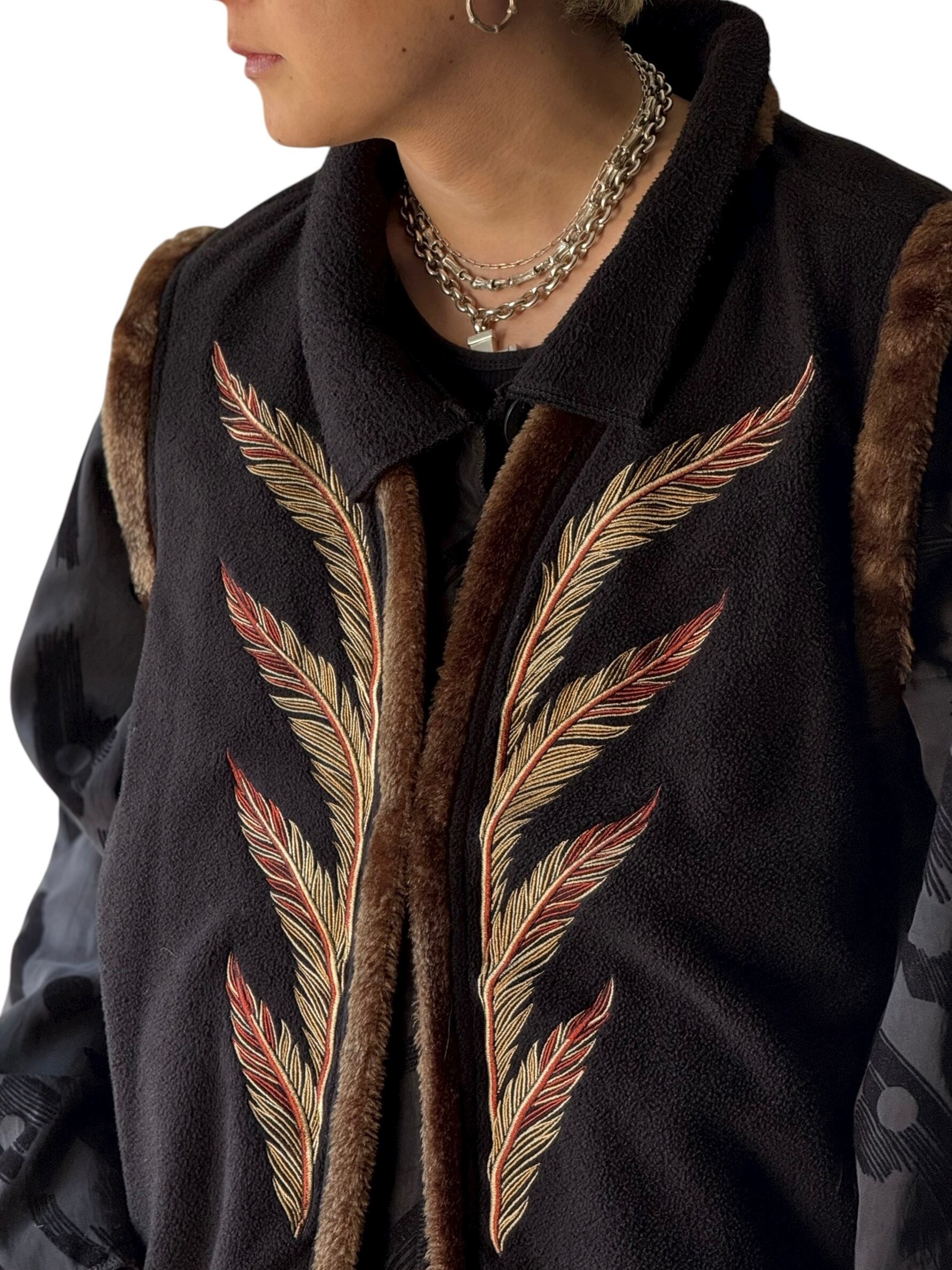 【Bob Mackie】 Feiffer Switch Embroidered Fleece Vest