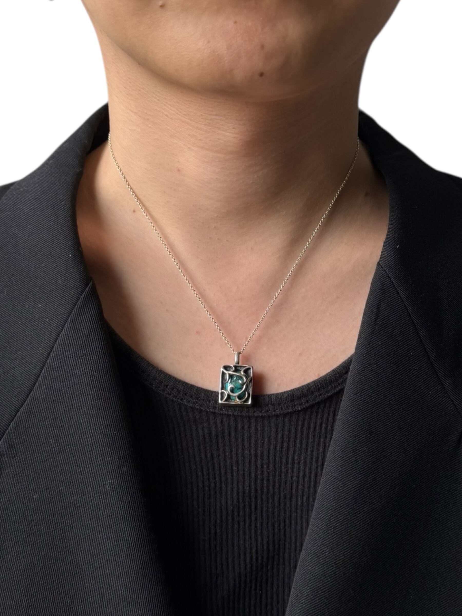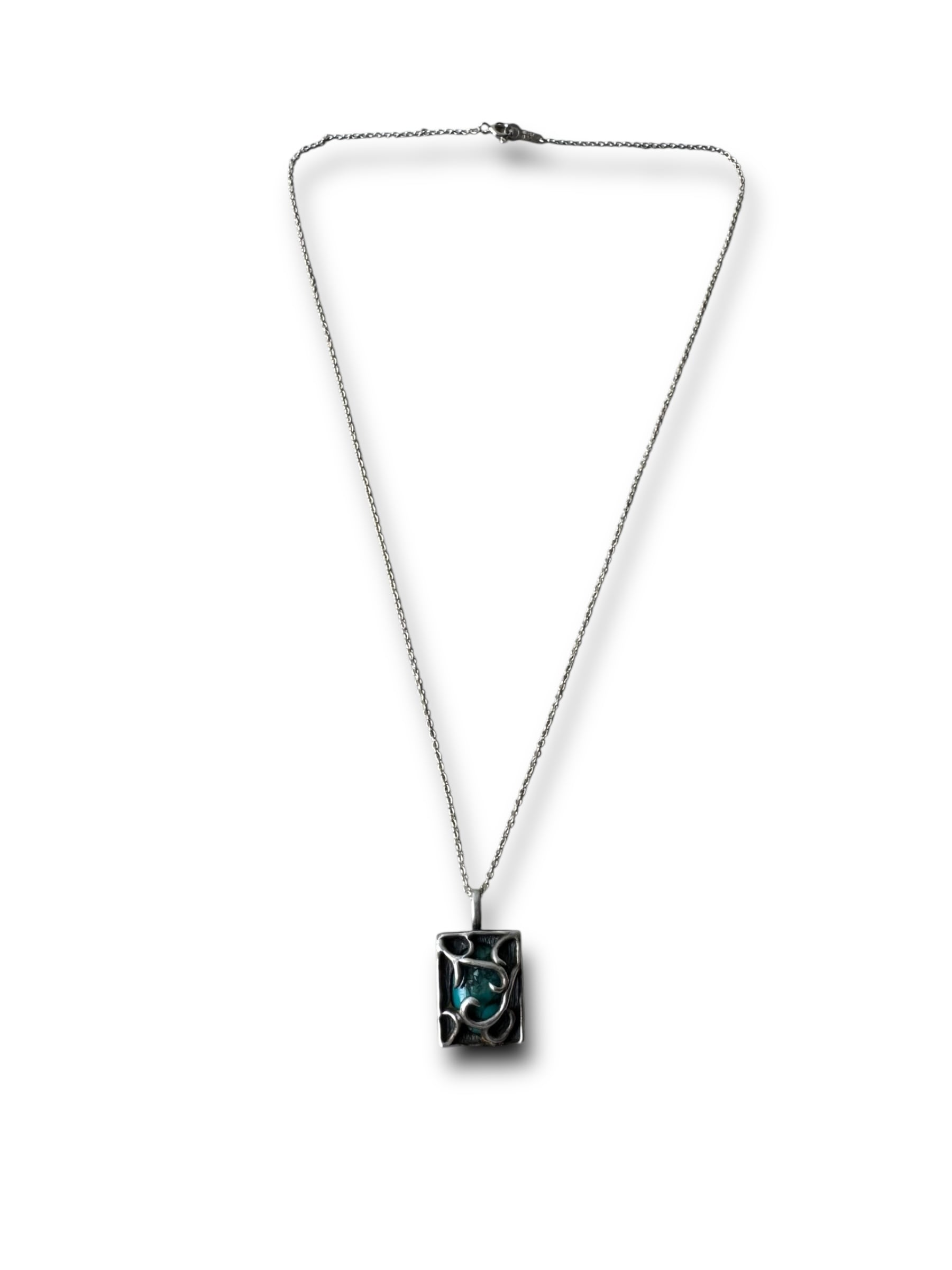 トライバルデザインのシルバーにターコイズがセットされており、渋くもありネオかっこいい感じもある最強ネックレス‼️‼️