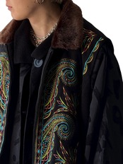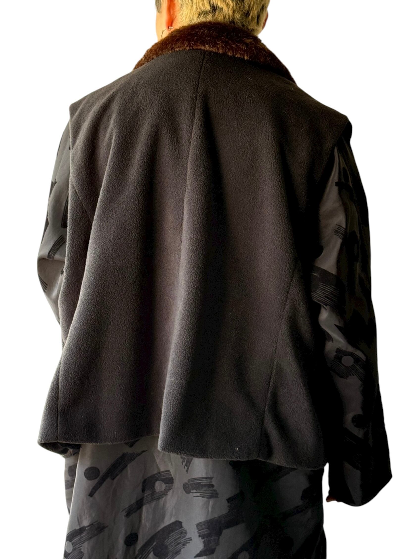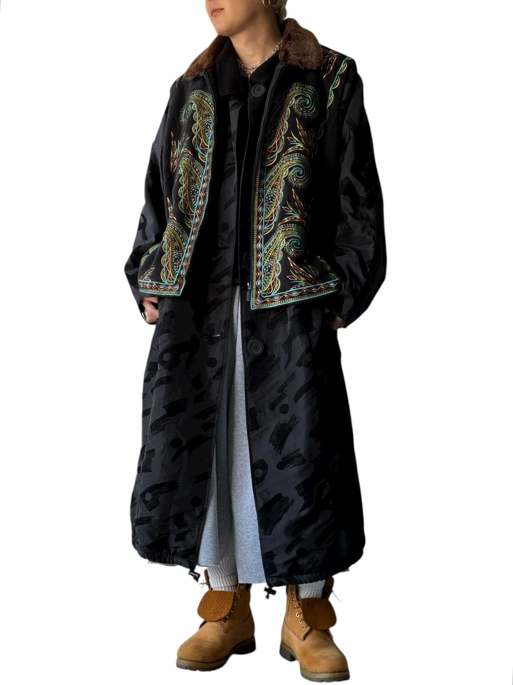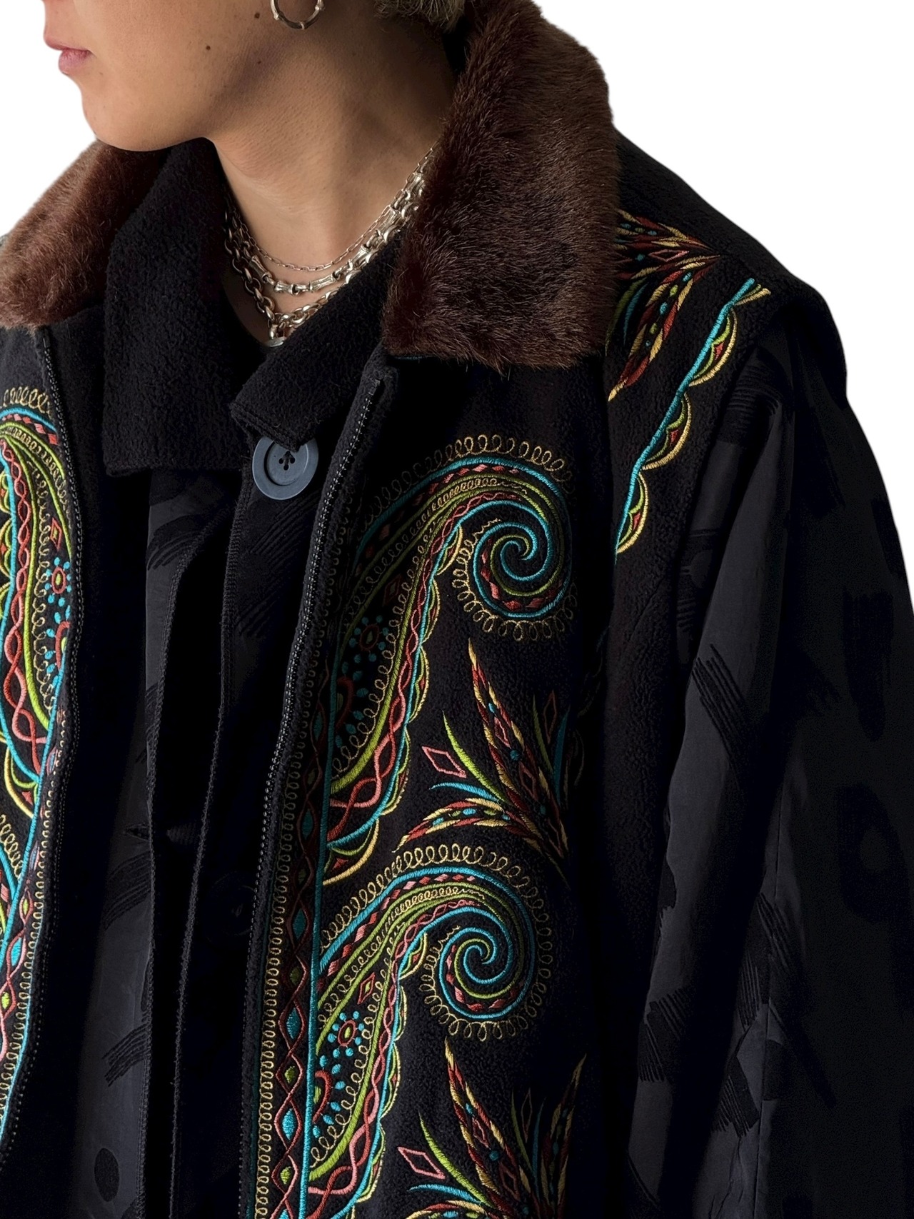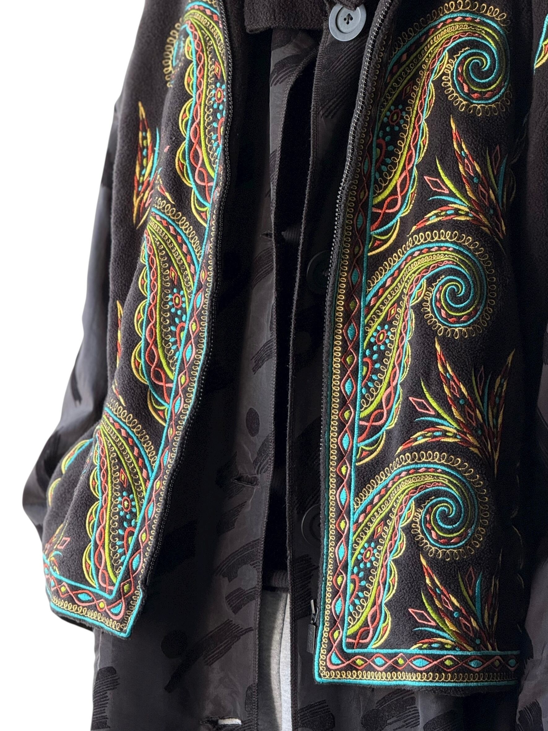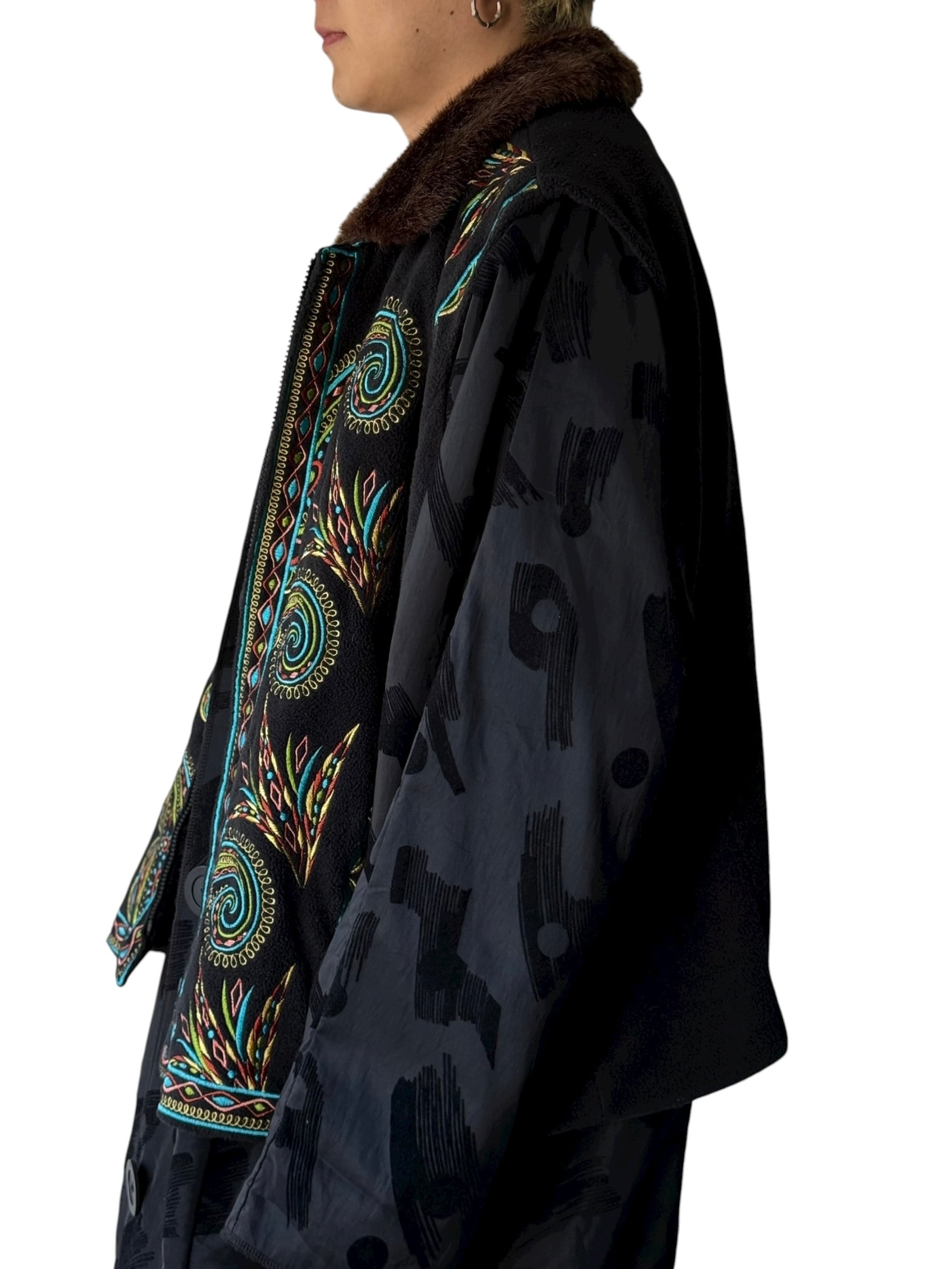 【Bob Mackie】 Fur collar swiching Embroidered fleece zip vest