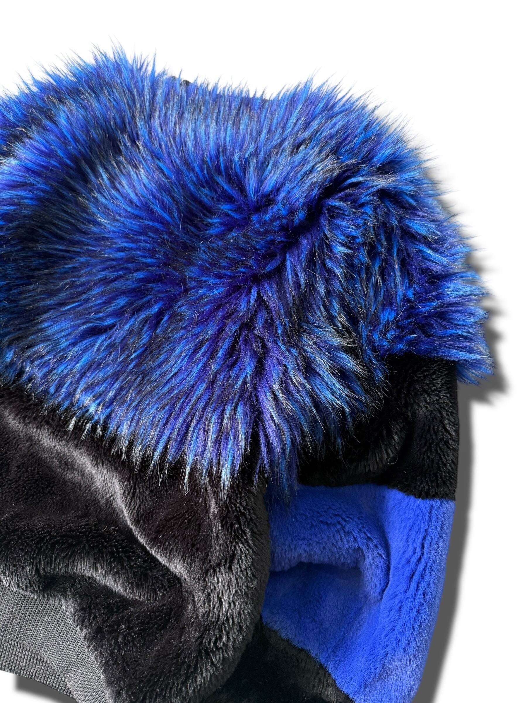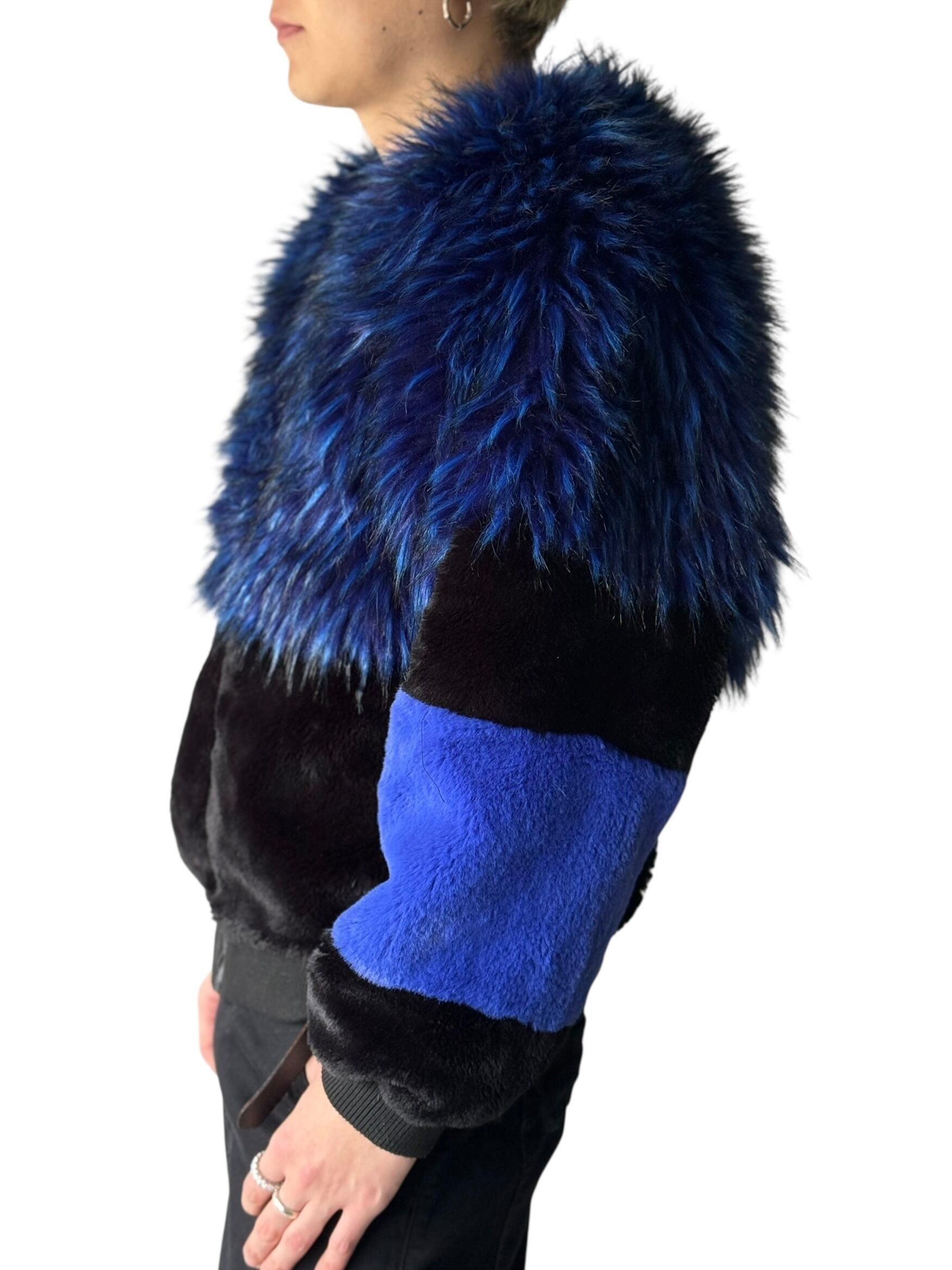 ボリューム、存在感共に完璧なファーお洒落ブルゾン❗️ 毛足のある部分と切り替えで青黒ベースがまず見ないディテール‼️