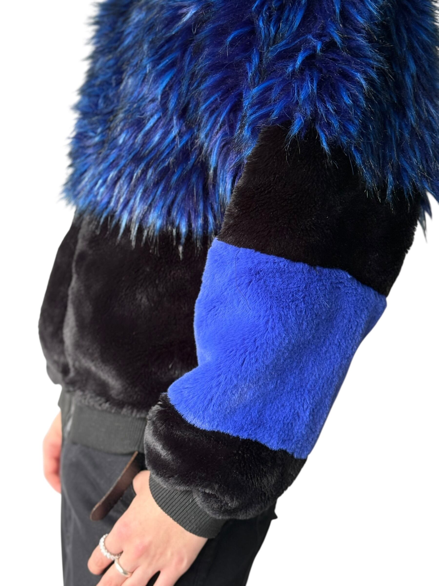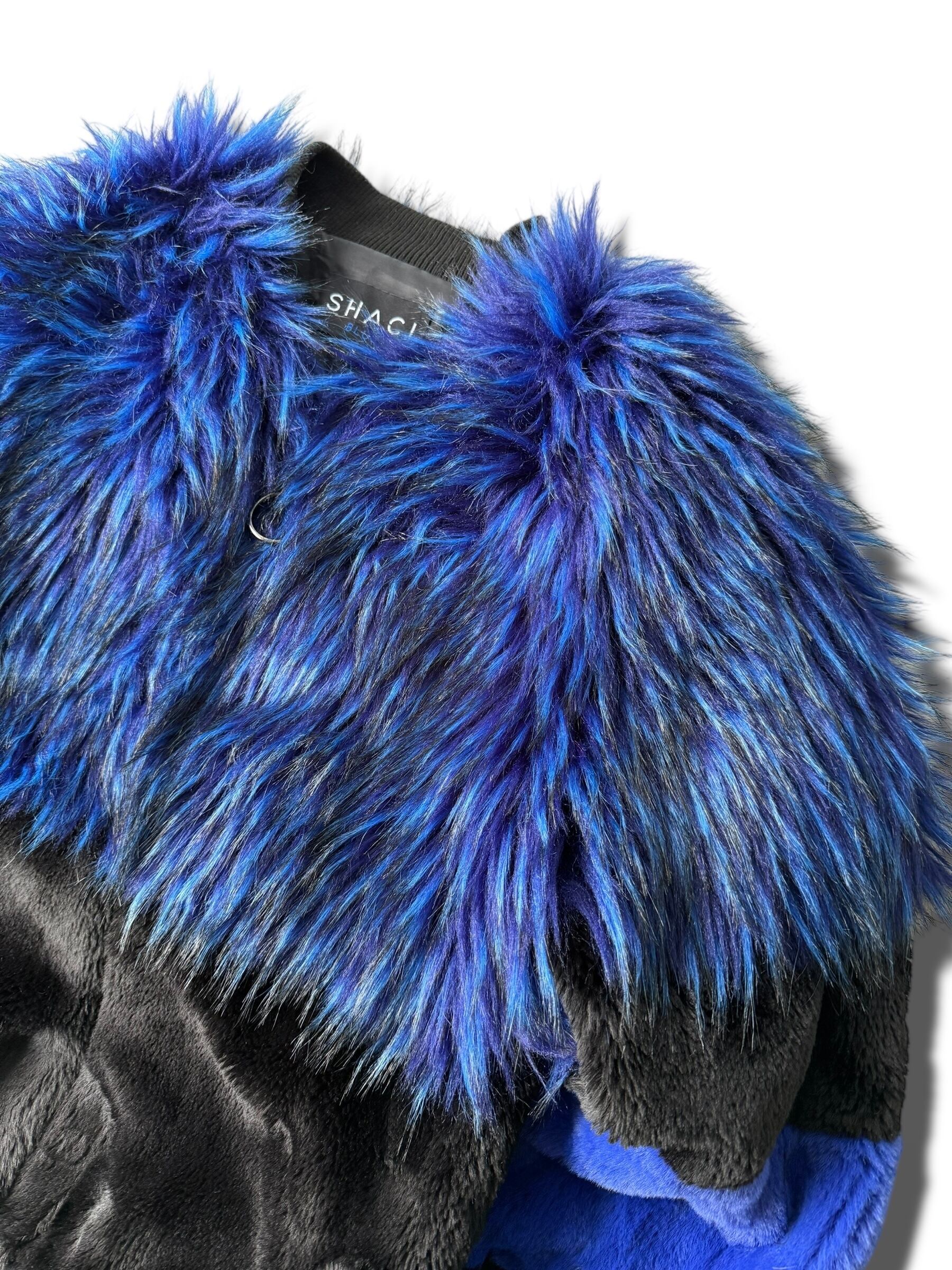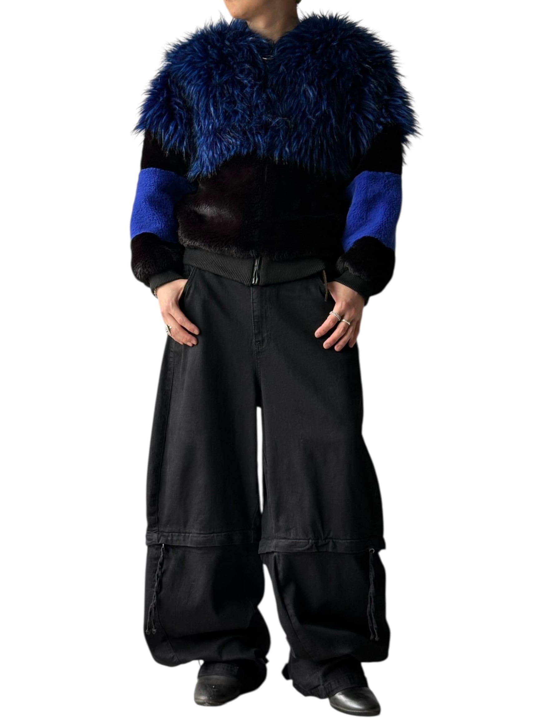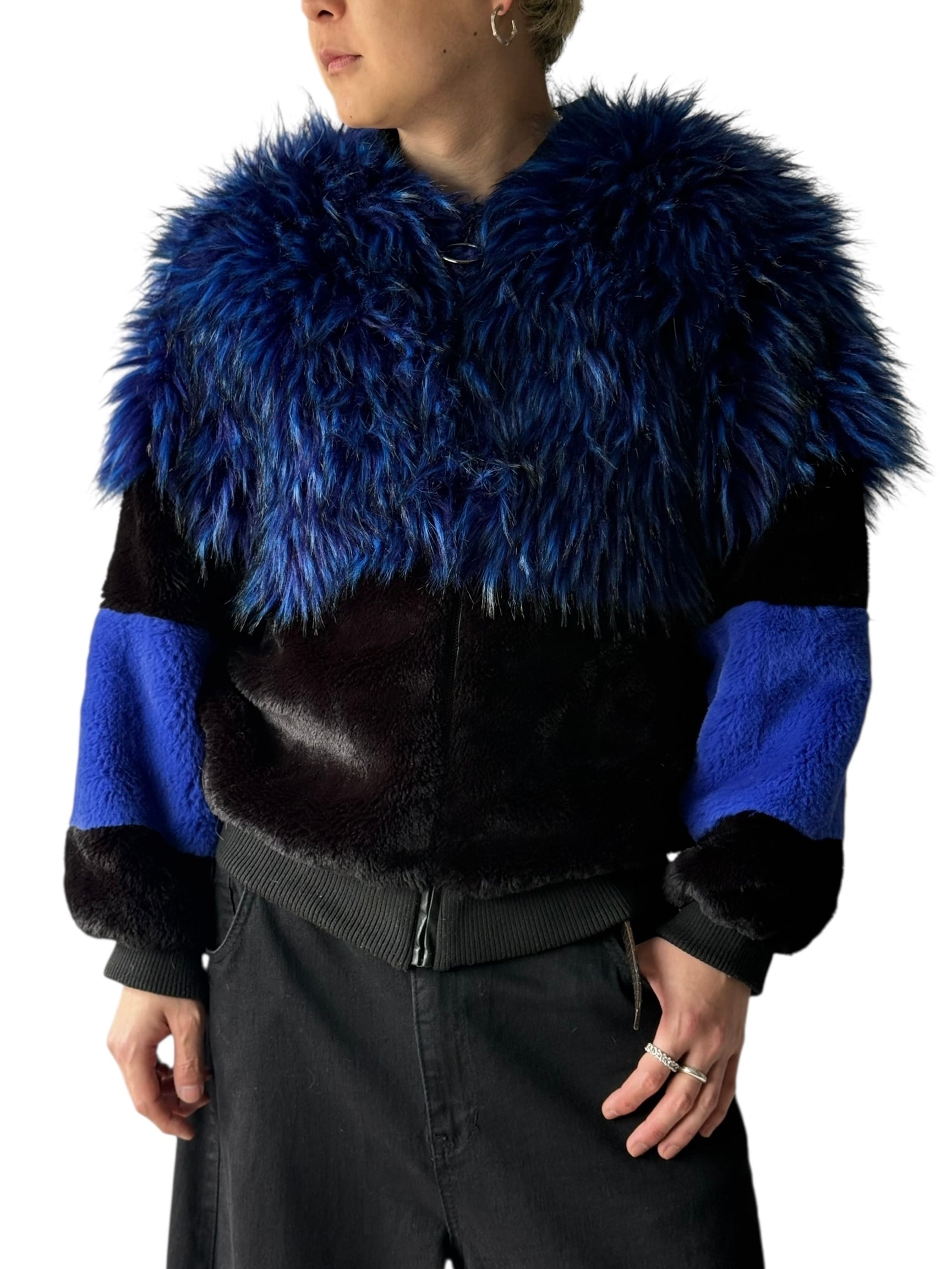 【SHACI BLUE】Shaggy hair switching Faux Fur Blouson