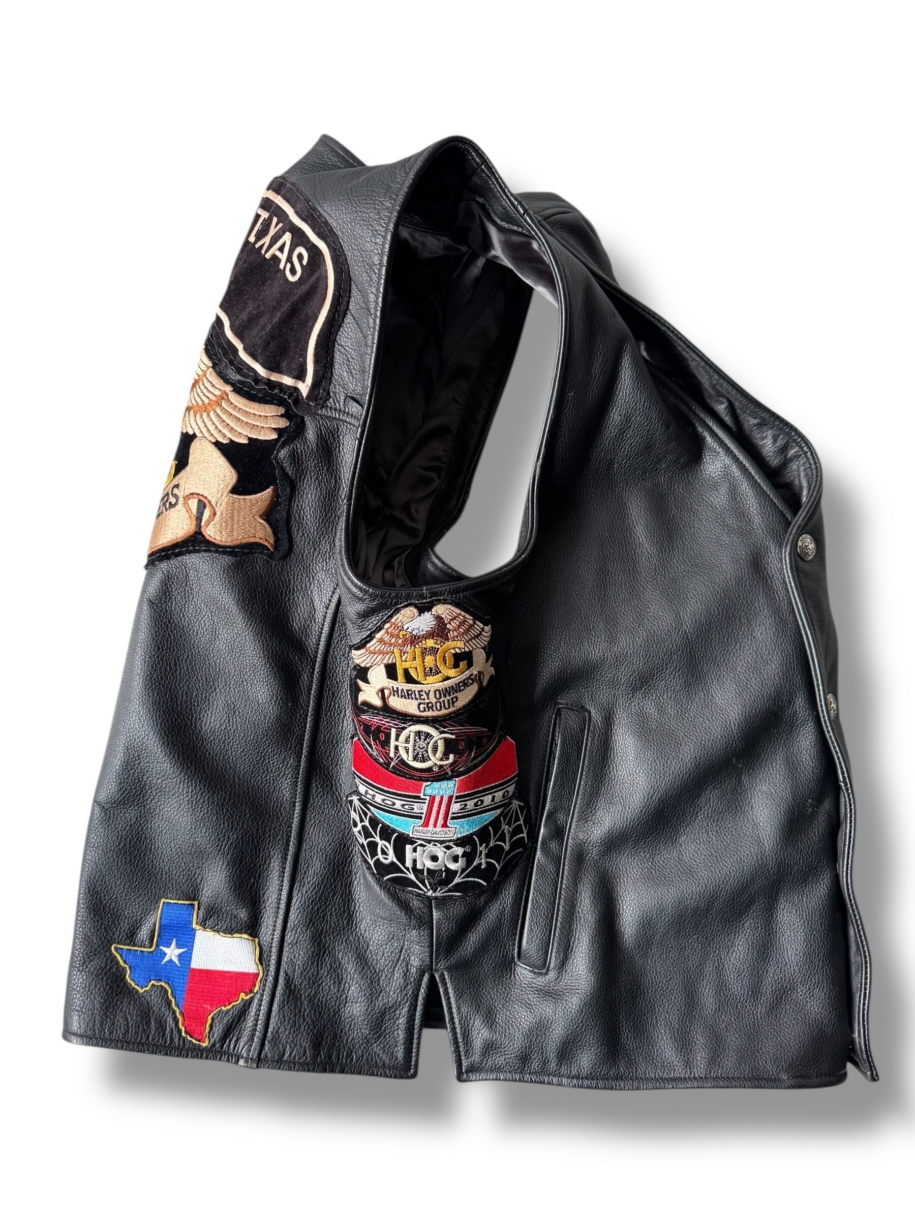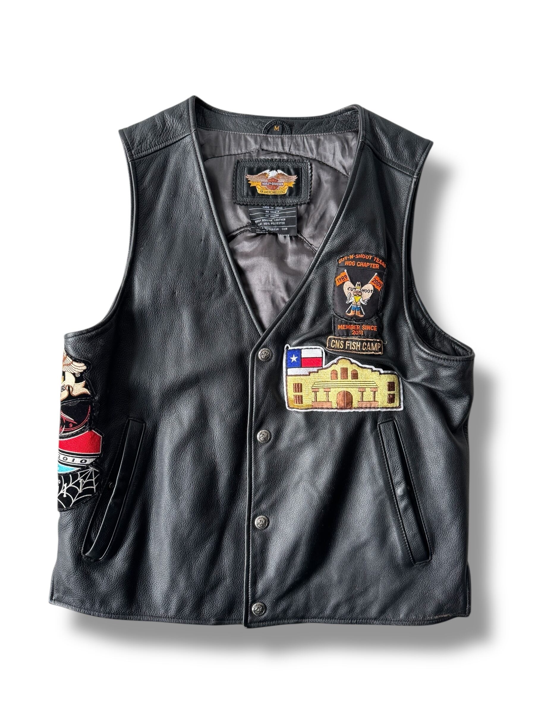 ♾HARLEY-DAVIDSON♾ vtg patchwork design leather vest sizeM