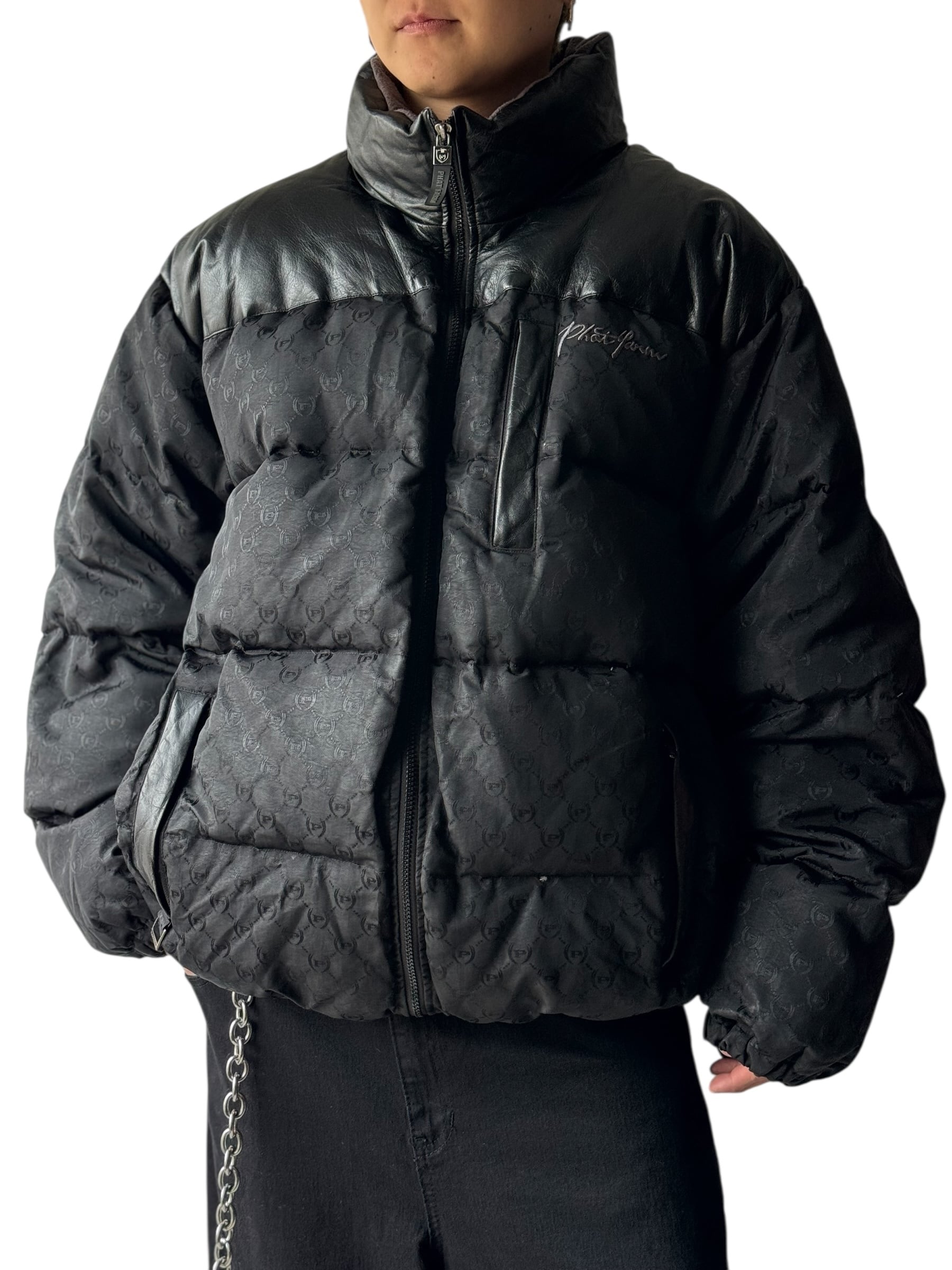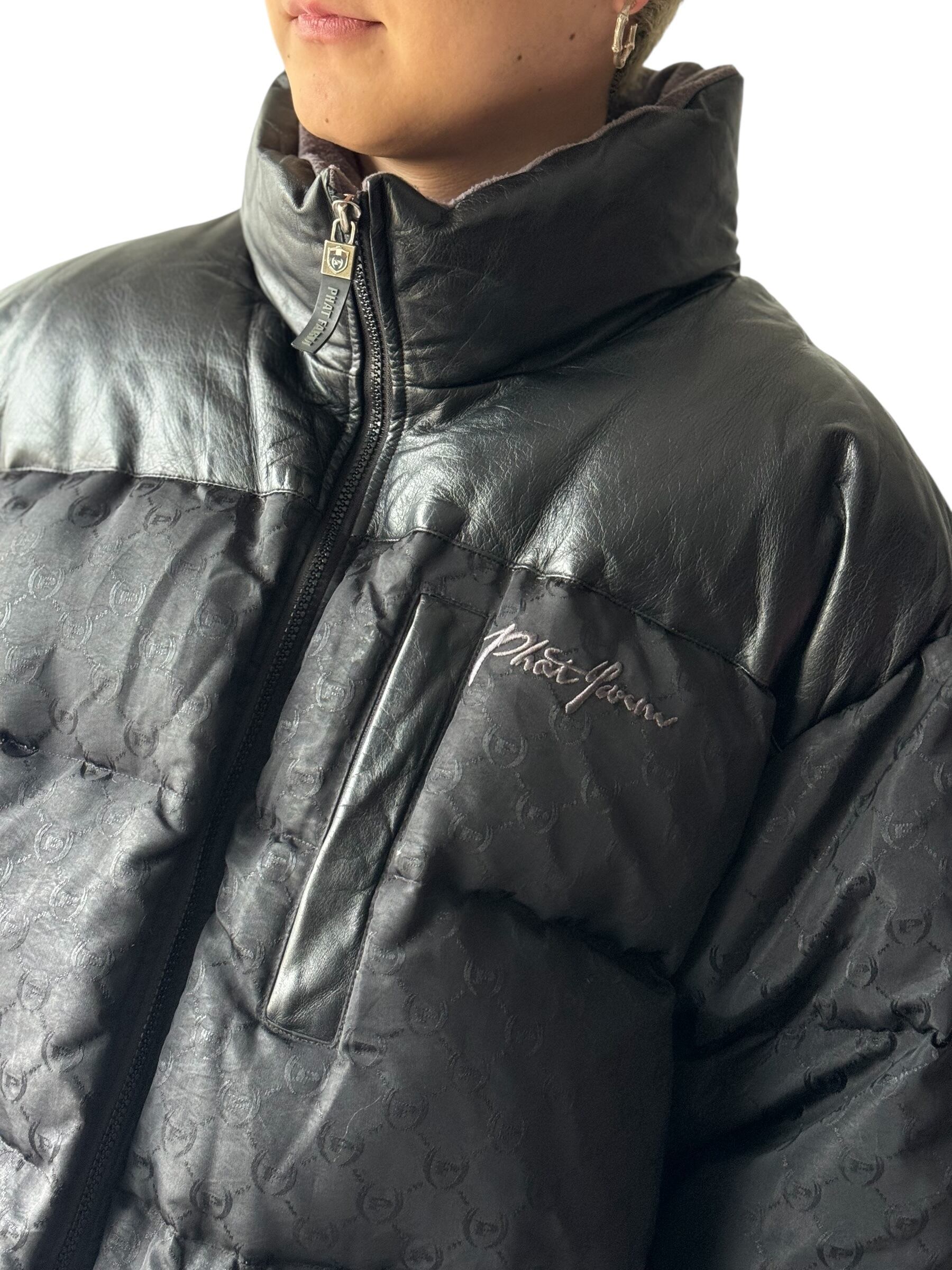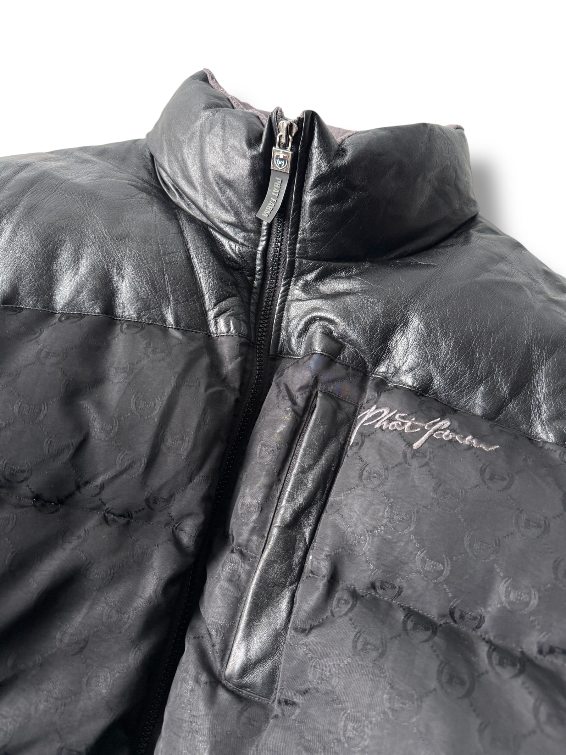 ♾️PHAT FARM♾️ "leather / "P"monogram " down jacket size 3XL