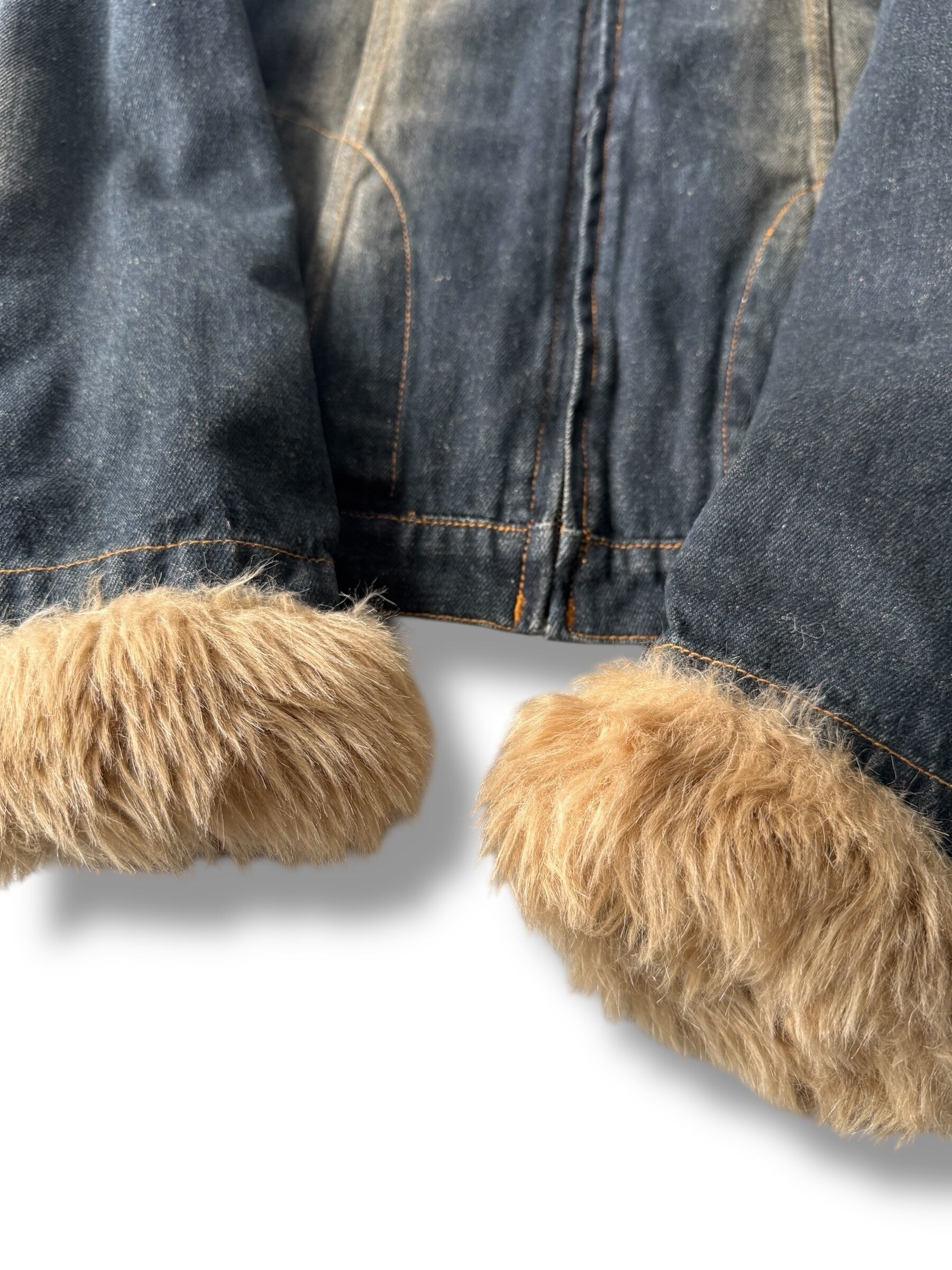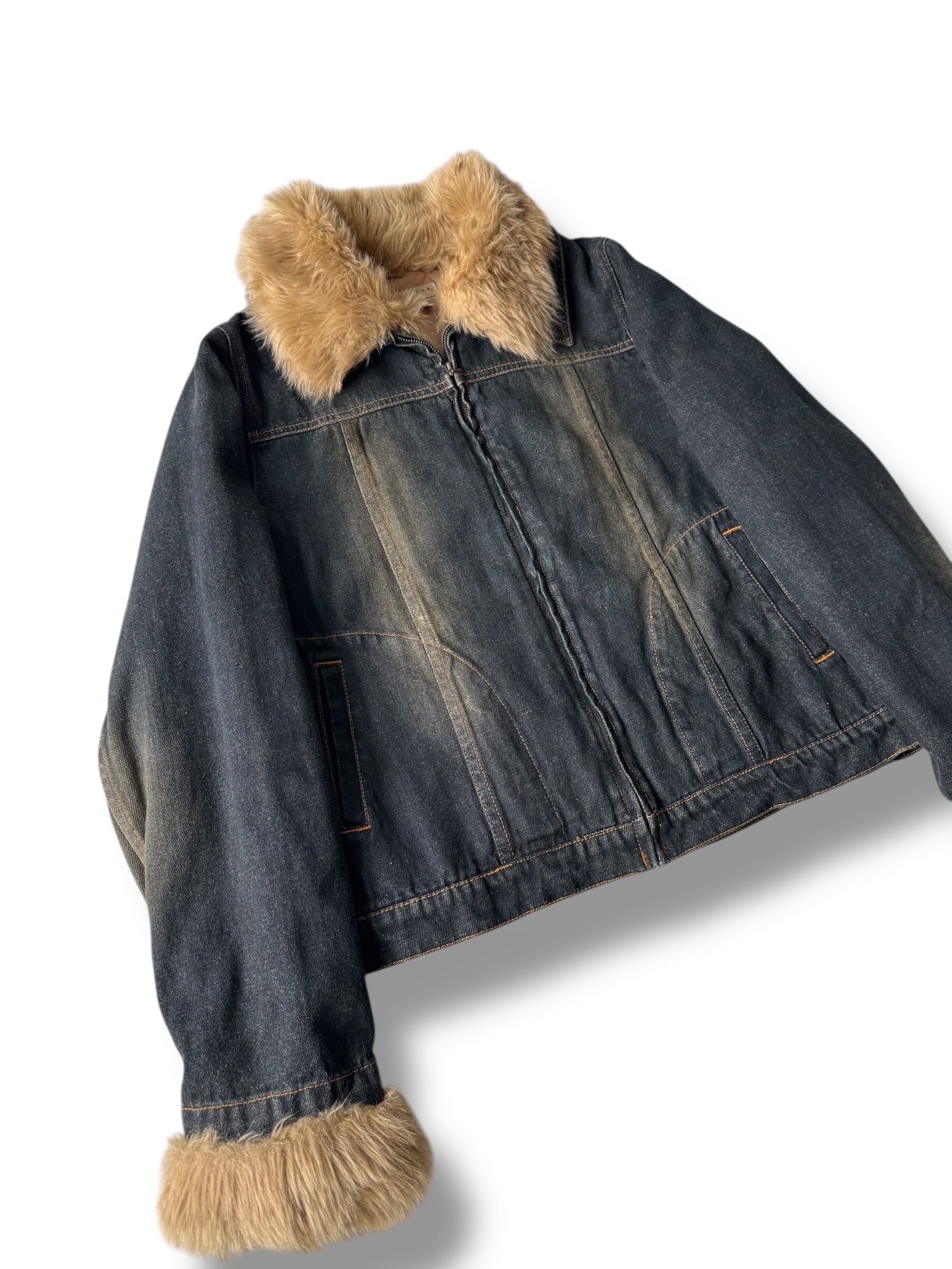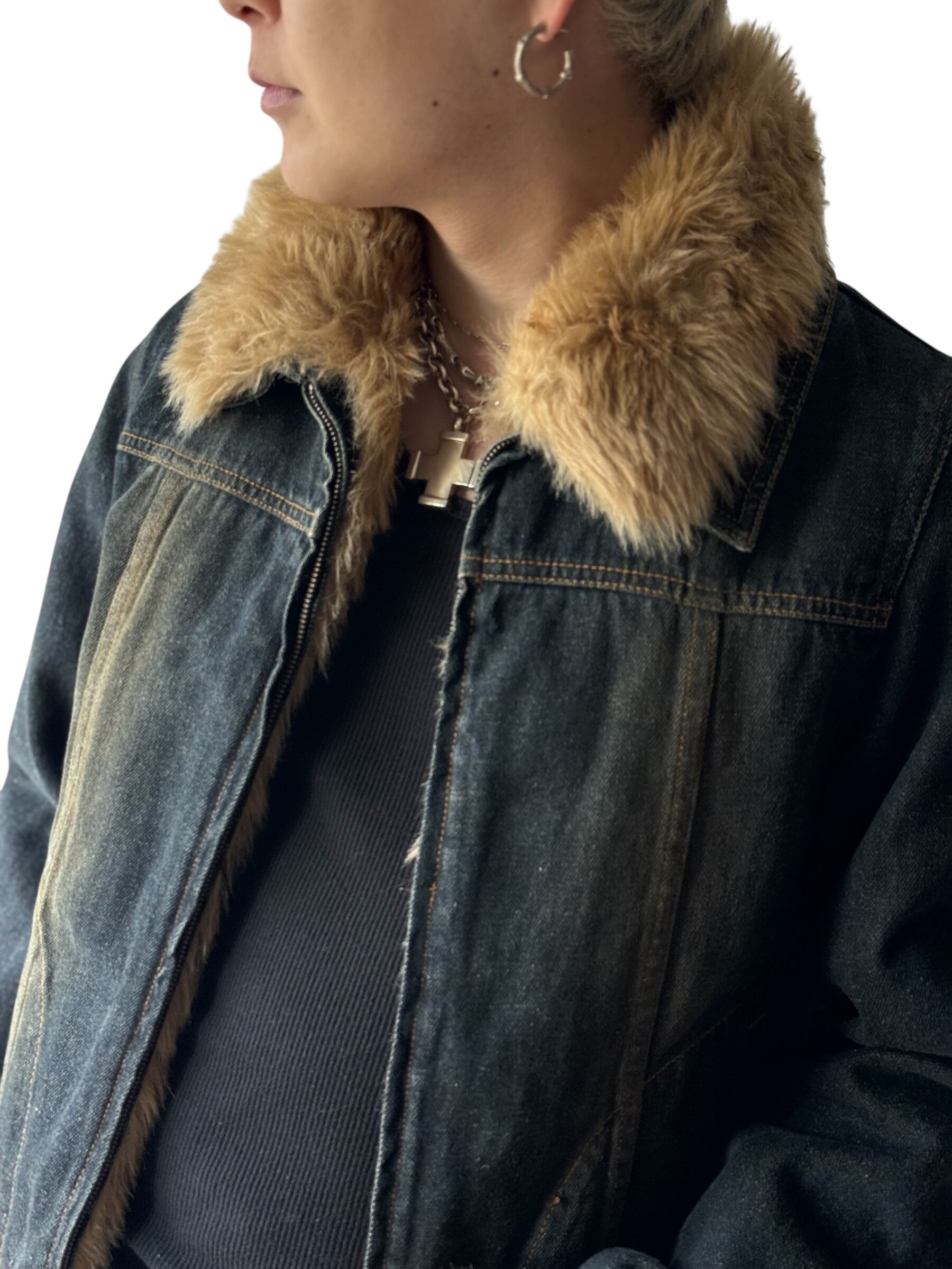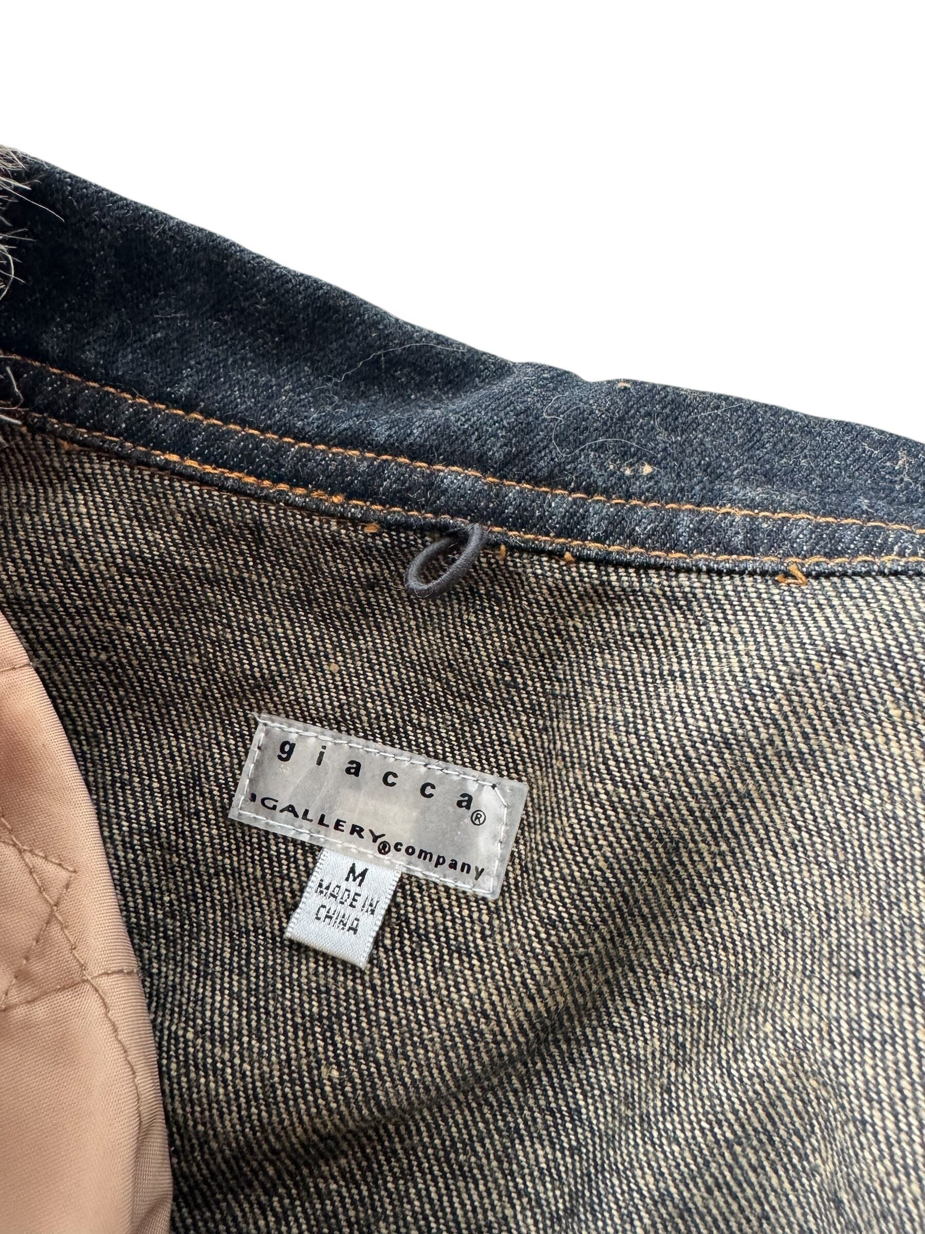 ♾giacca♾ faux fur switching design zip up denim jacket sizeM