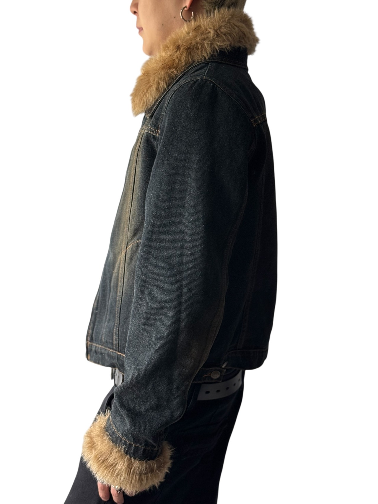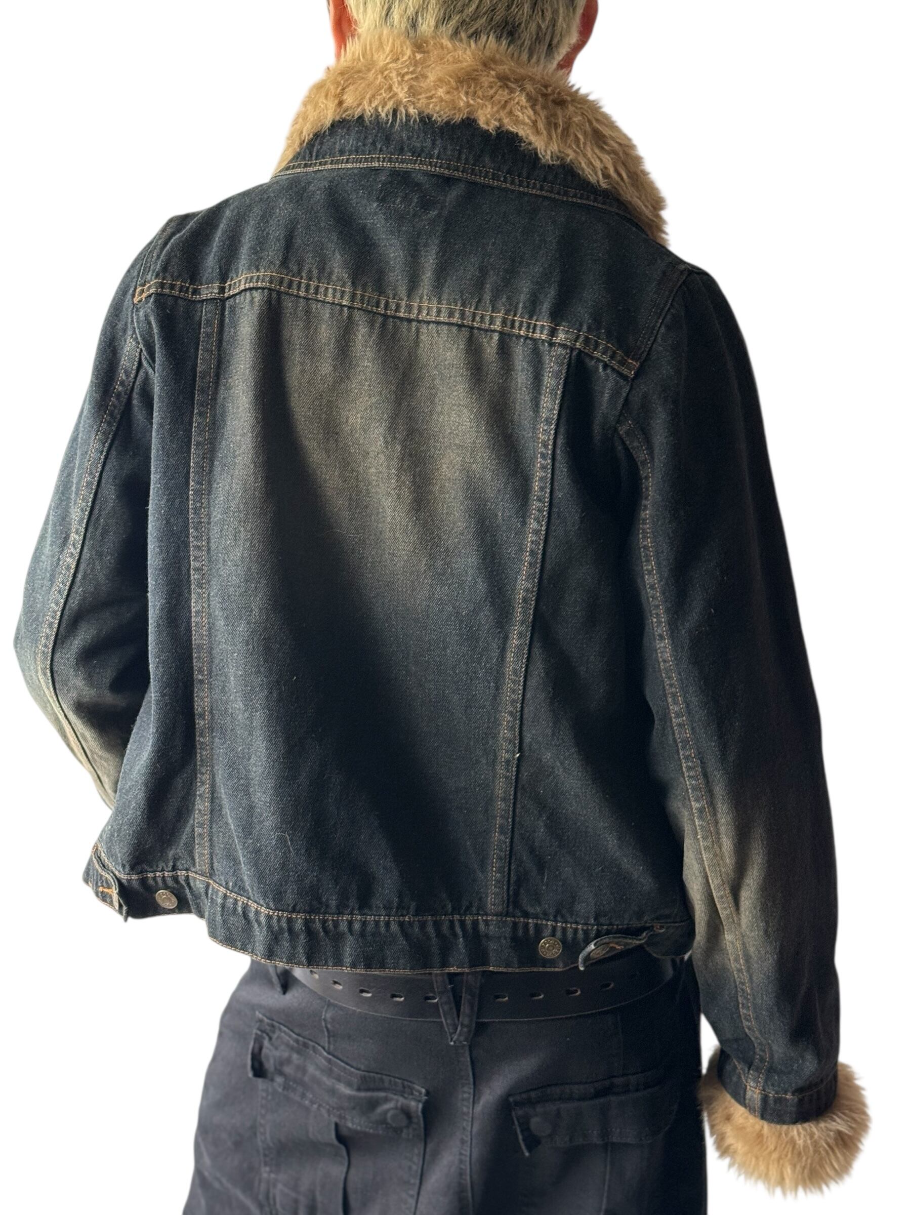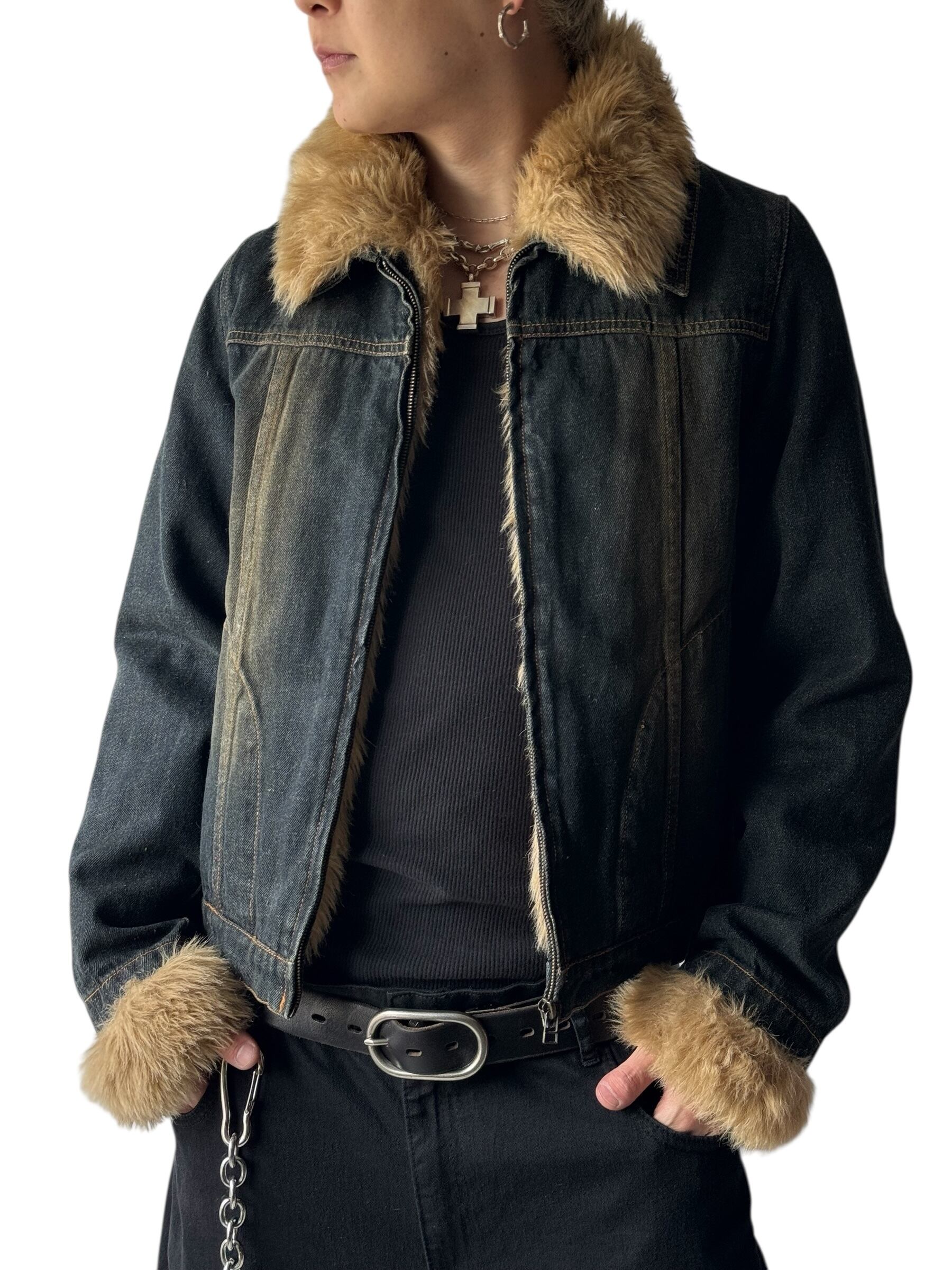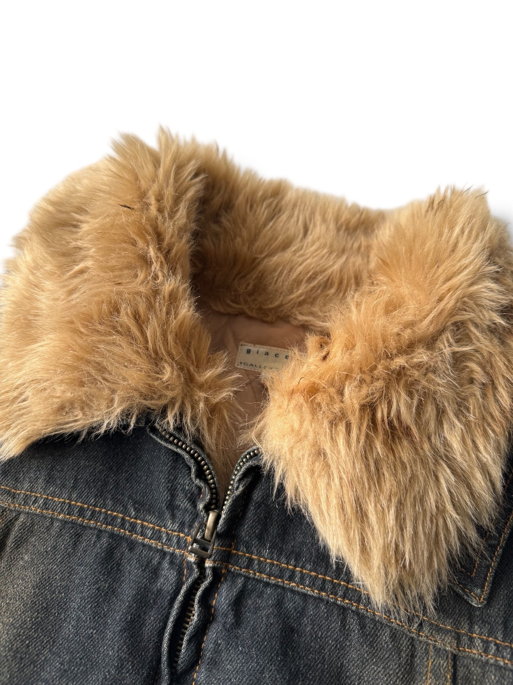 ♾giacca♾ faux fur switching design zip up denim jacket sizeM