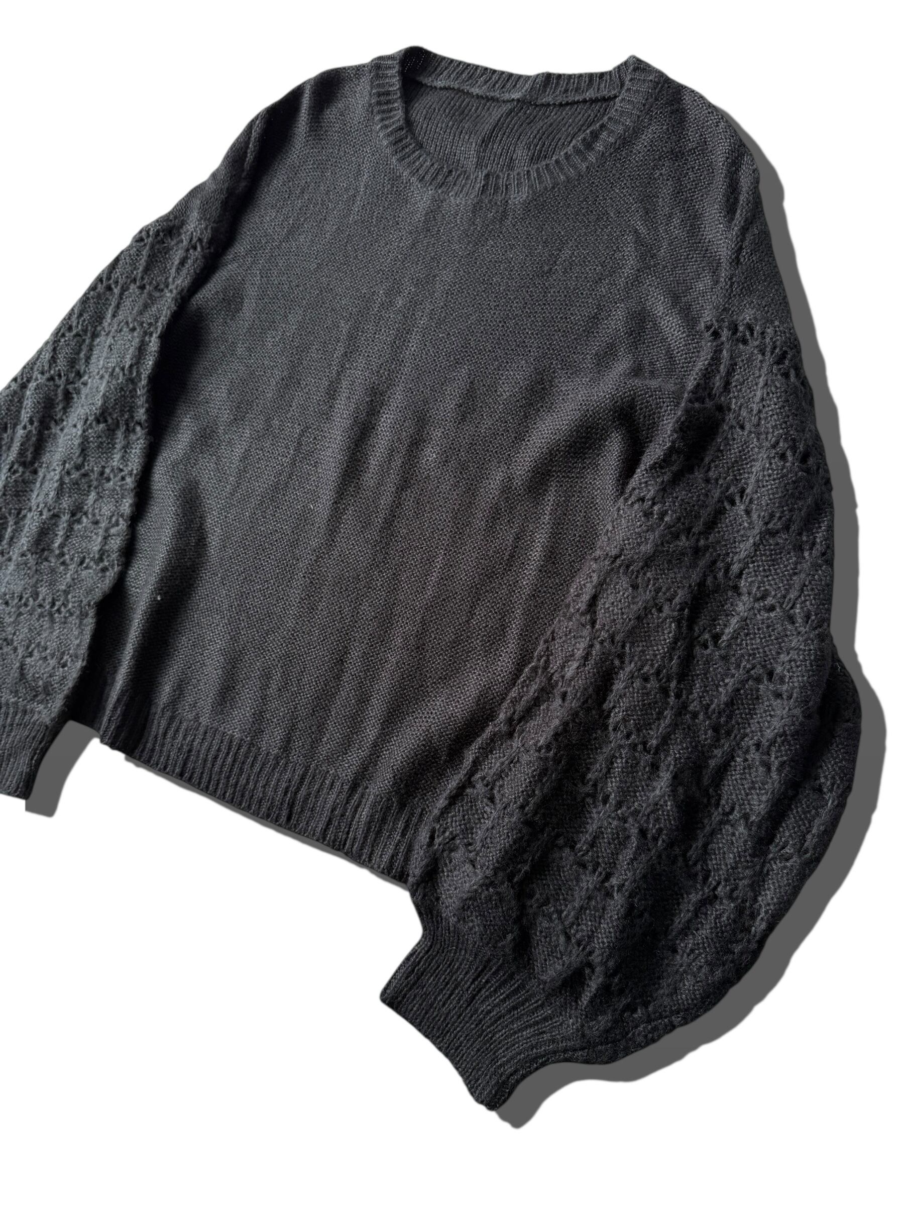 同色ブラックで袖から編み方の切り替えが洒落たニットセーター!!!