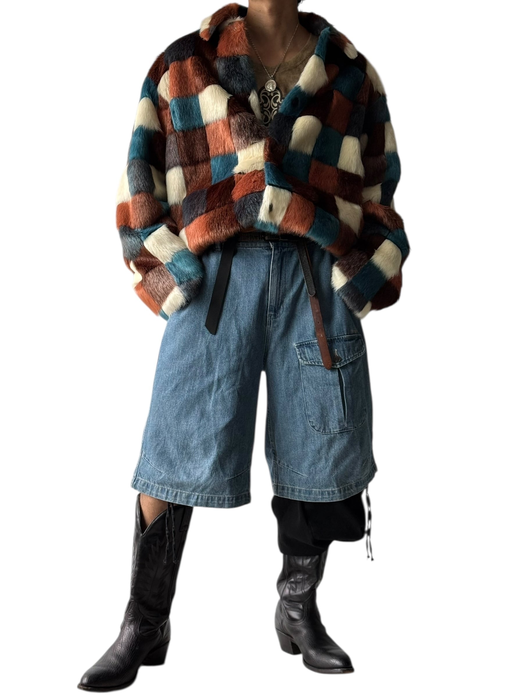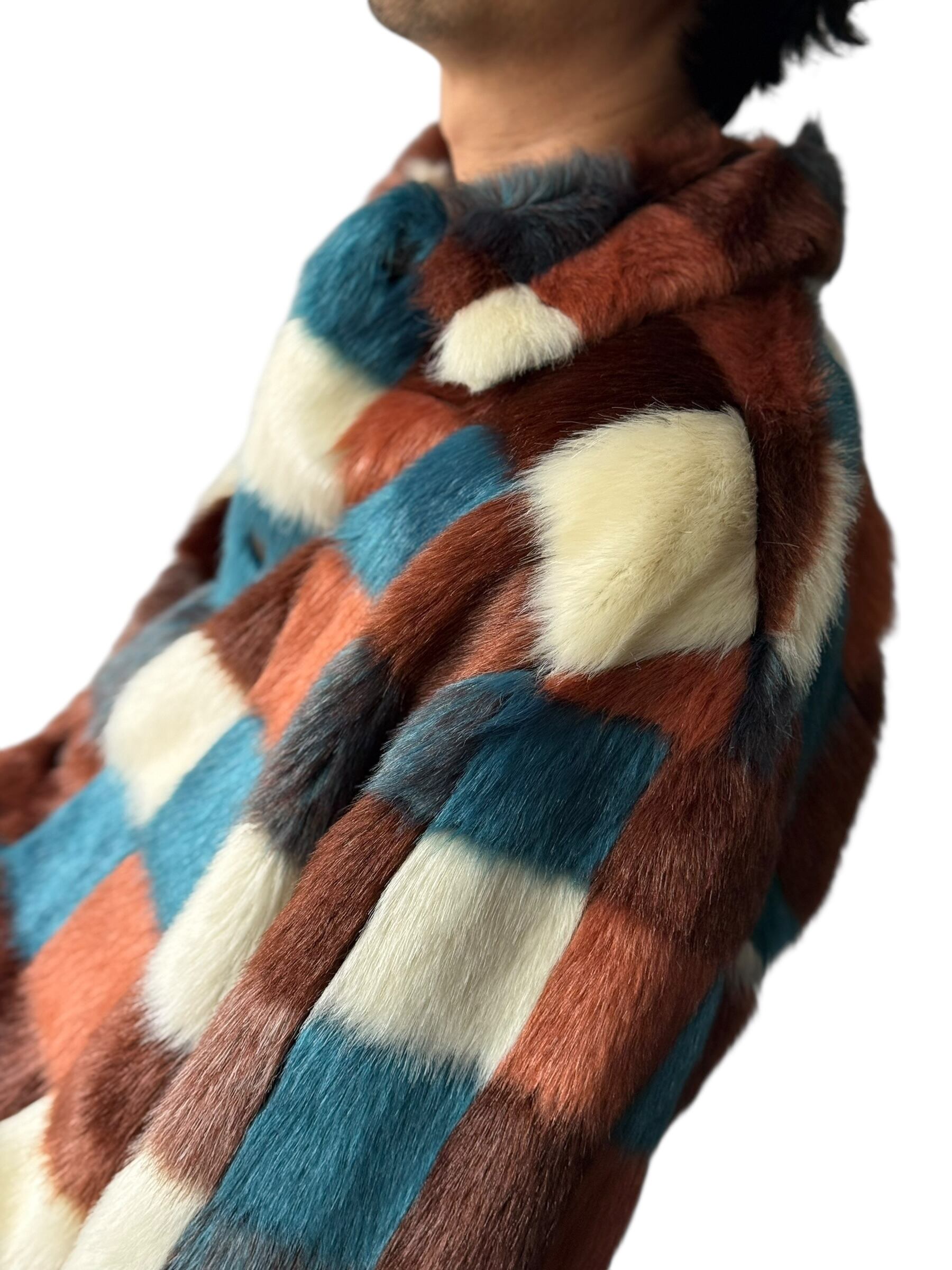 【Sasquatchfabrix.】 COLOR BLOCK DESIGN FAKE FUR JACKET