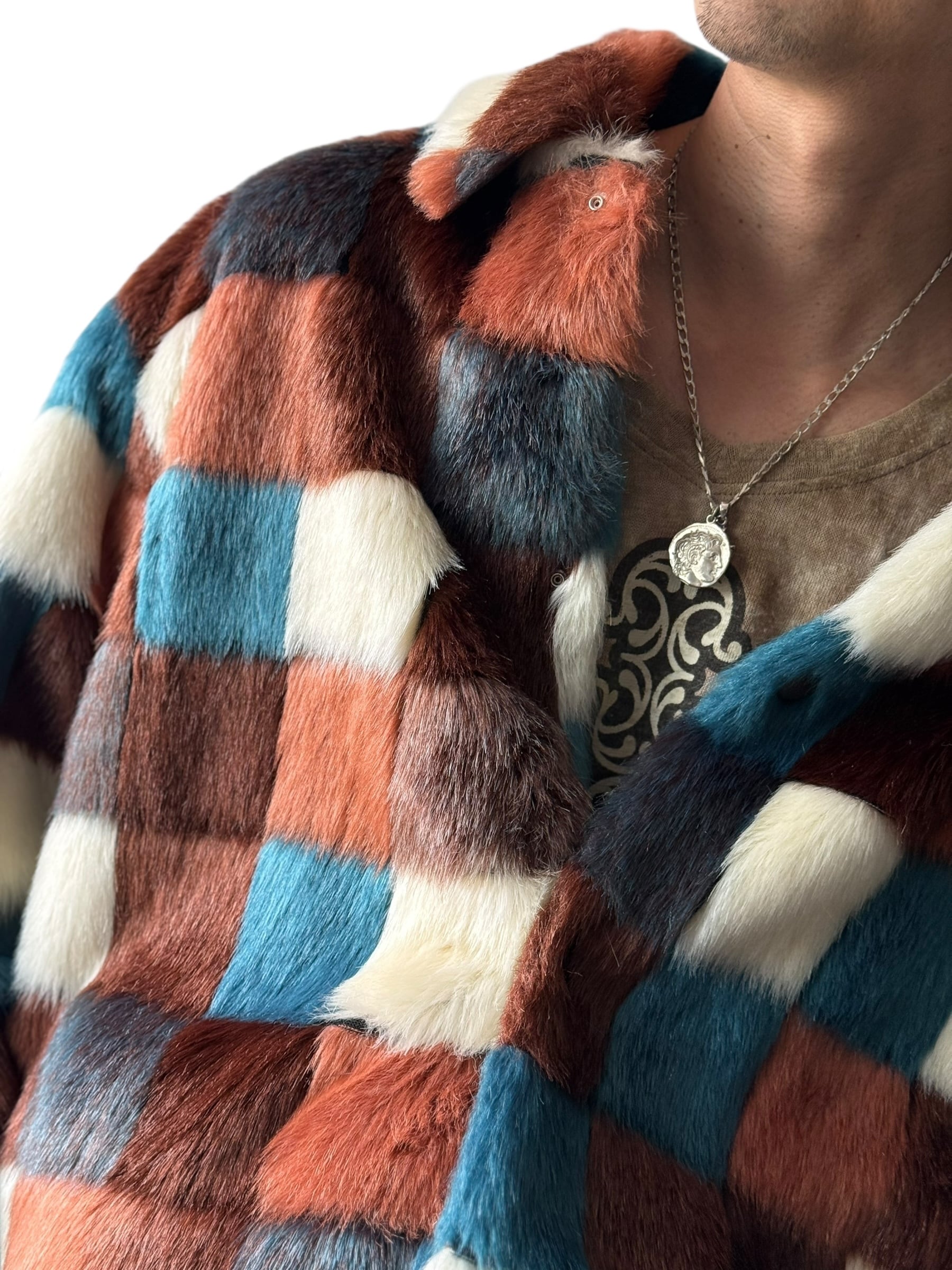 COLOR BLOCK DESIGN FAKE FUR JACKET