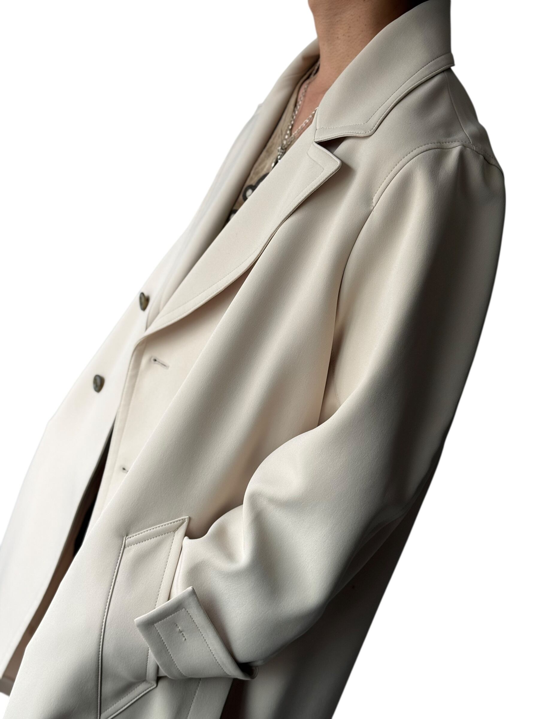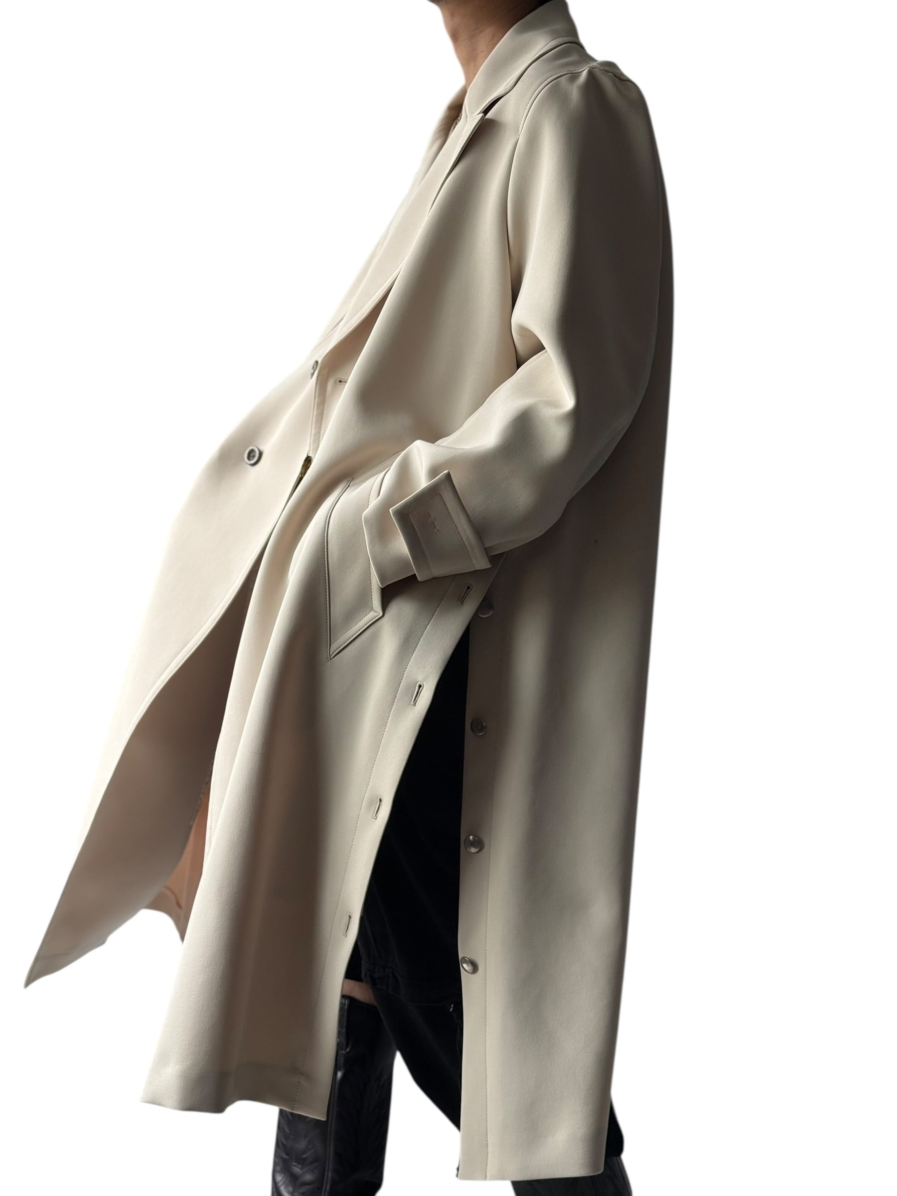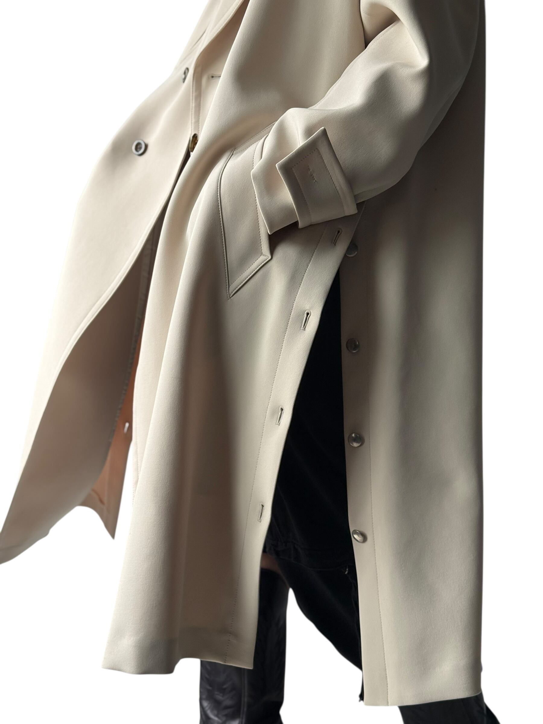 両裾に深いスリットがあり、金属釦がマニッシュな佇まい☝️❣️
