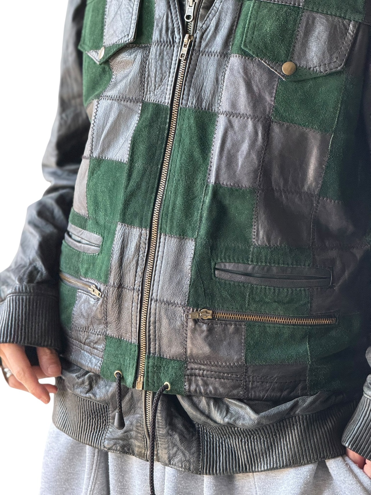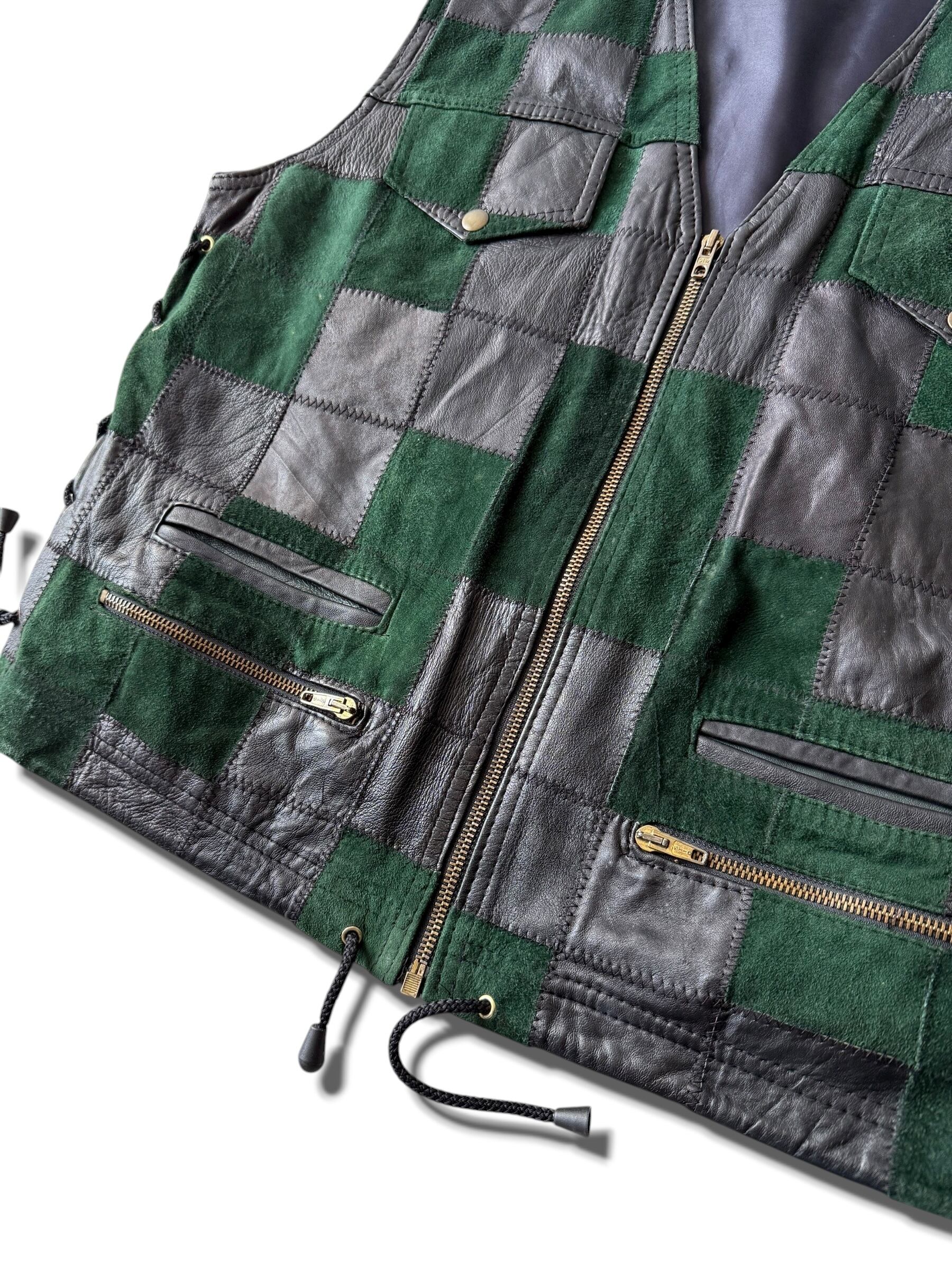 【Design used】Block pattern combination Real leather vest