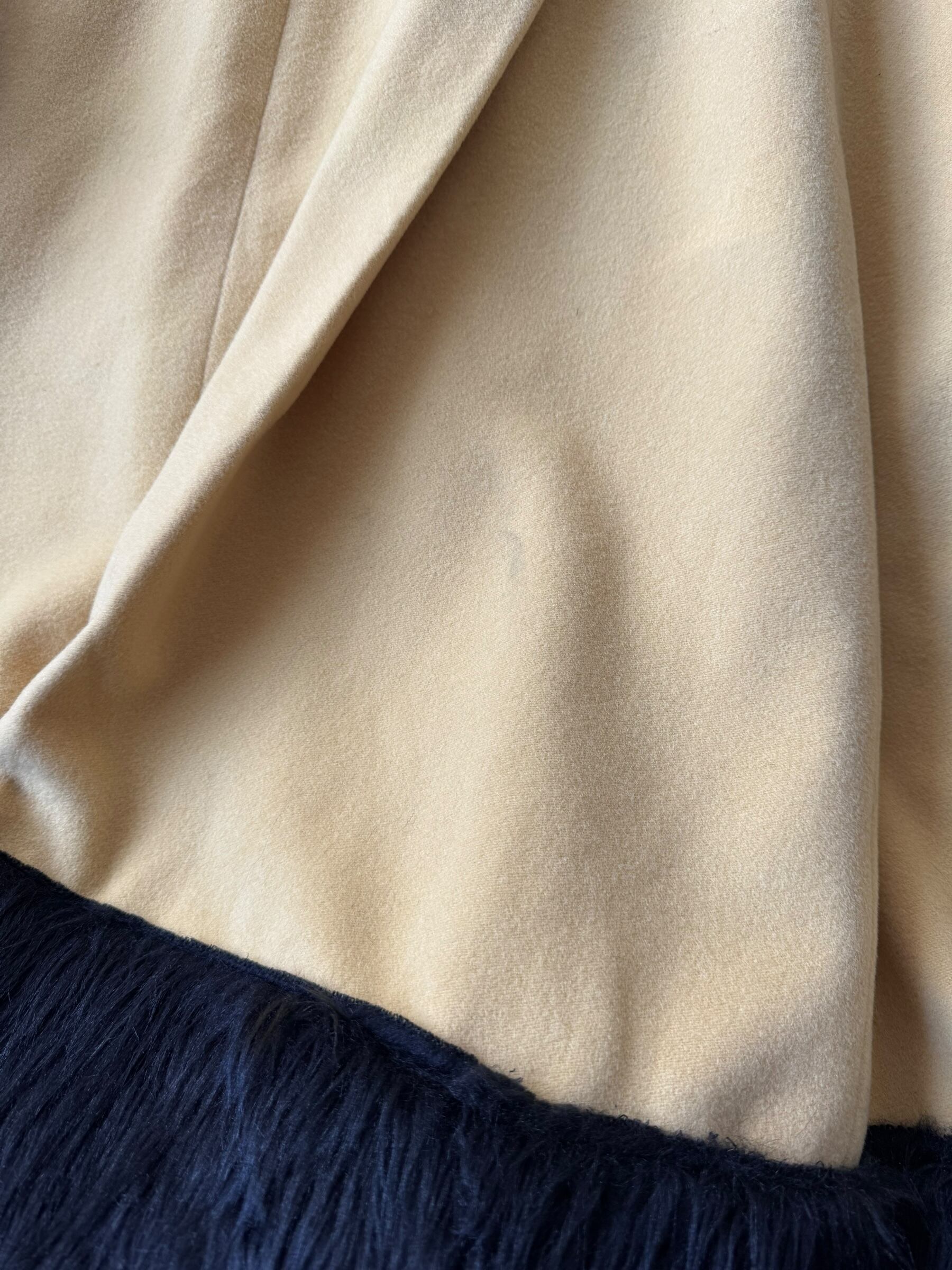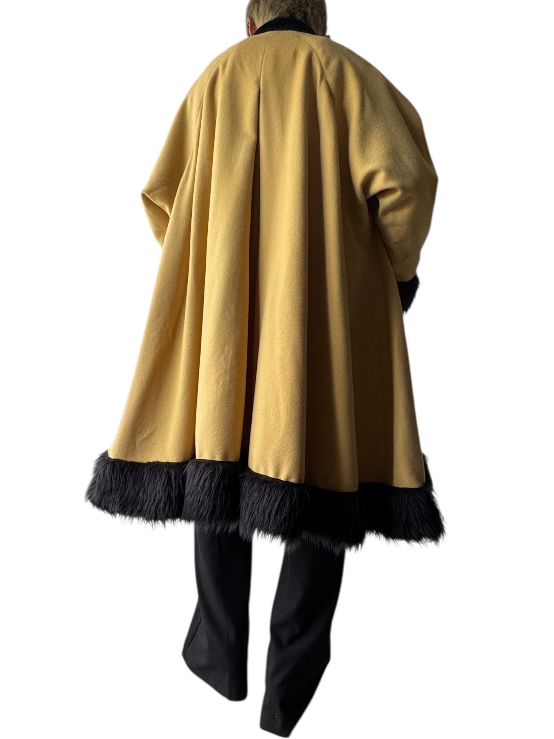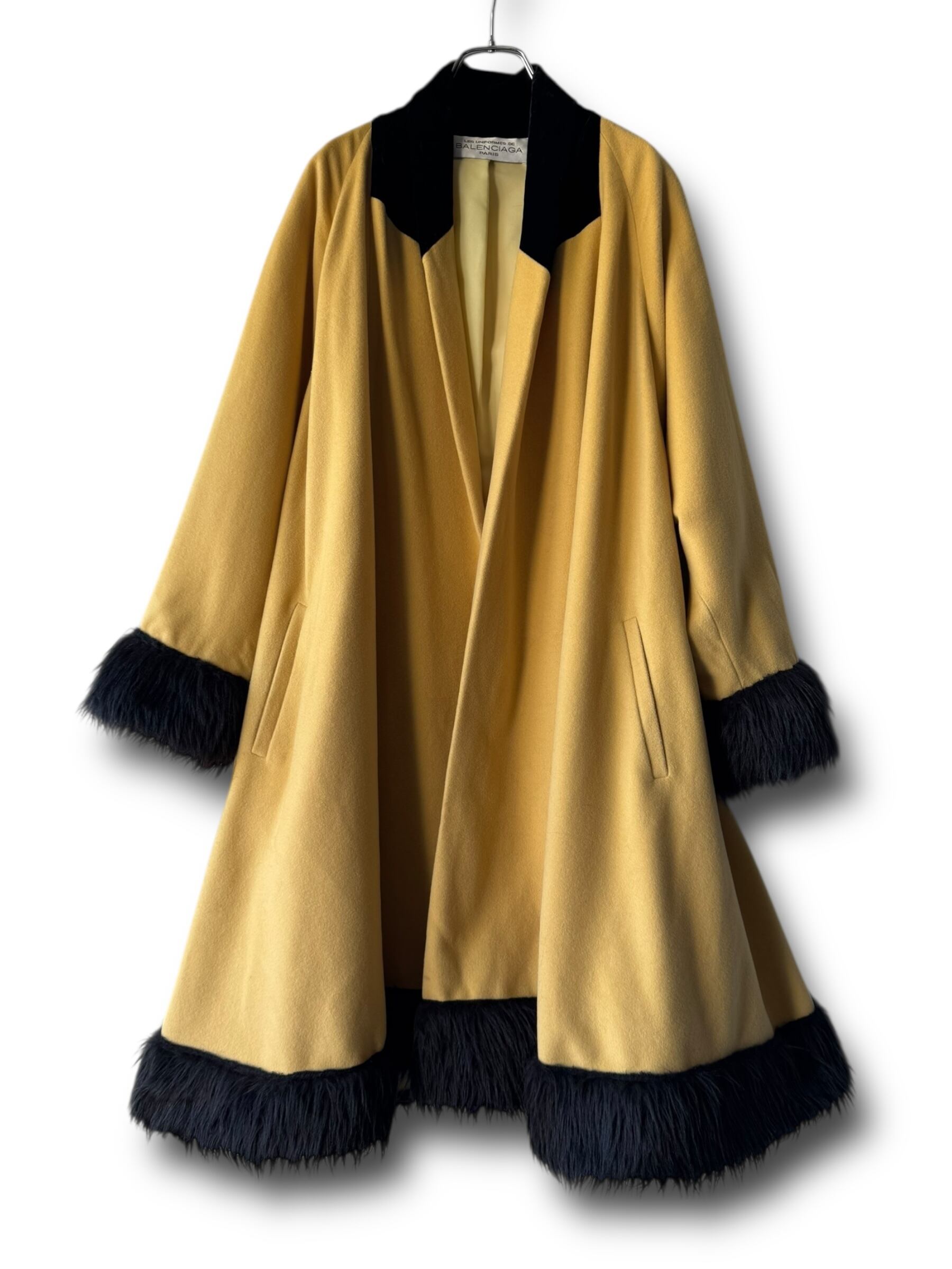 袖、裾、襟が黒になっており、襟はベロアで袖と裾だけファーになっており、可愛らしい黄色のボディにささる黒がめちゃくちゃカッコイイ✨️✨️