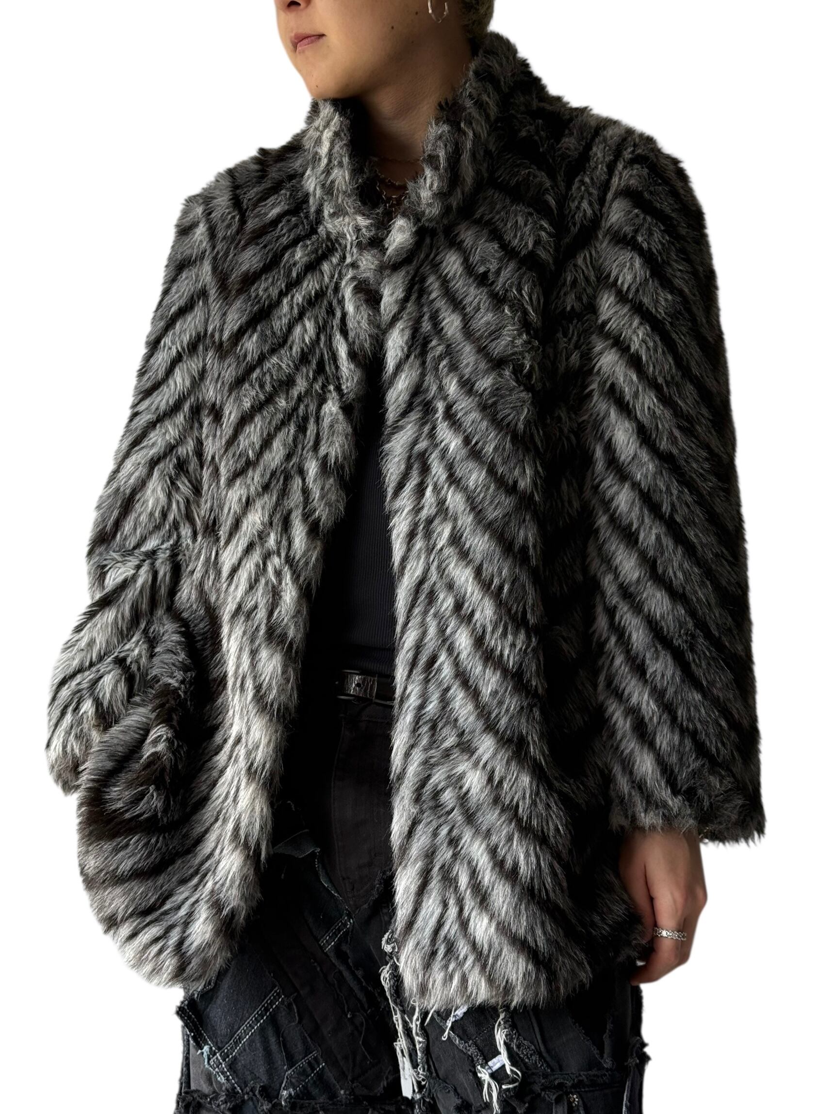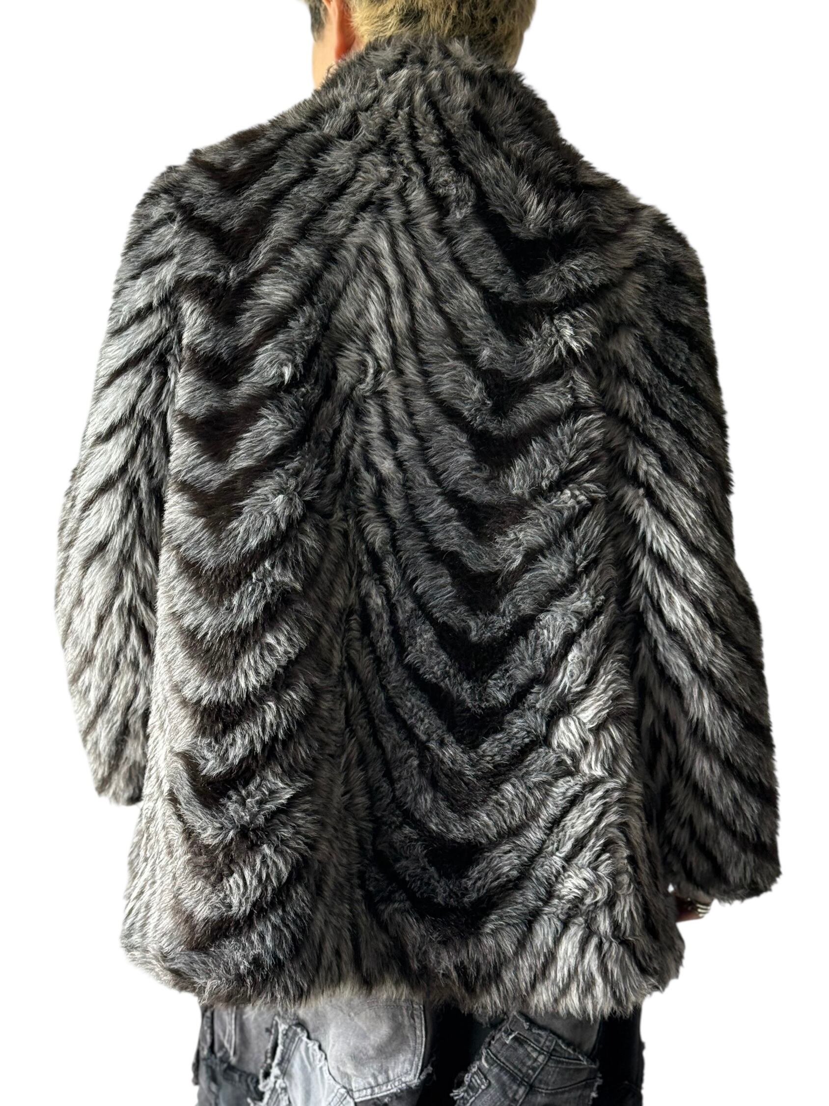 【Euro vintage】 "Coat dress international" Oversize High-neck Faux-Fur jacket