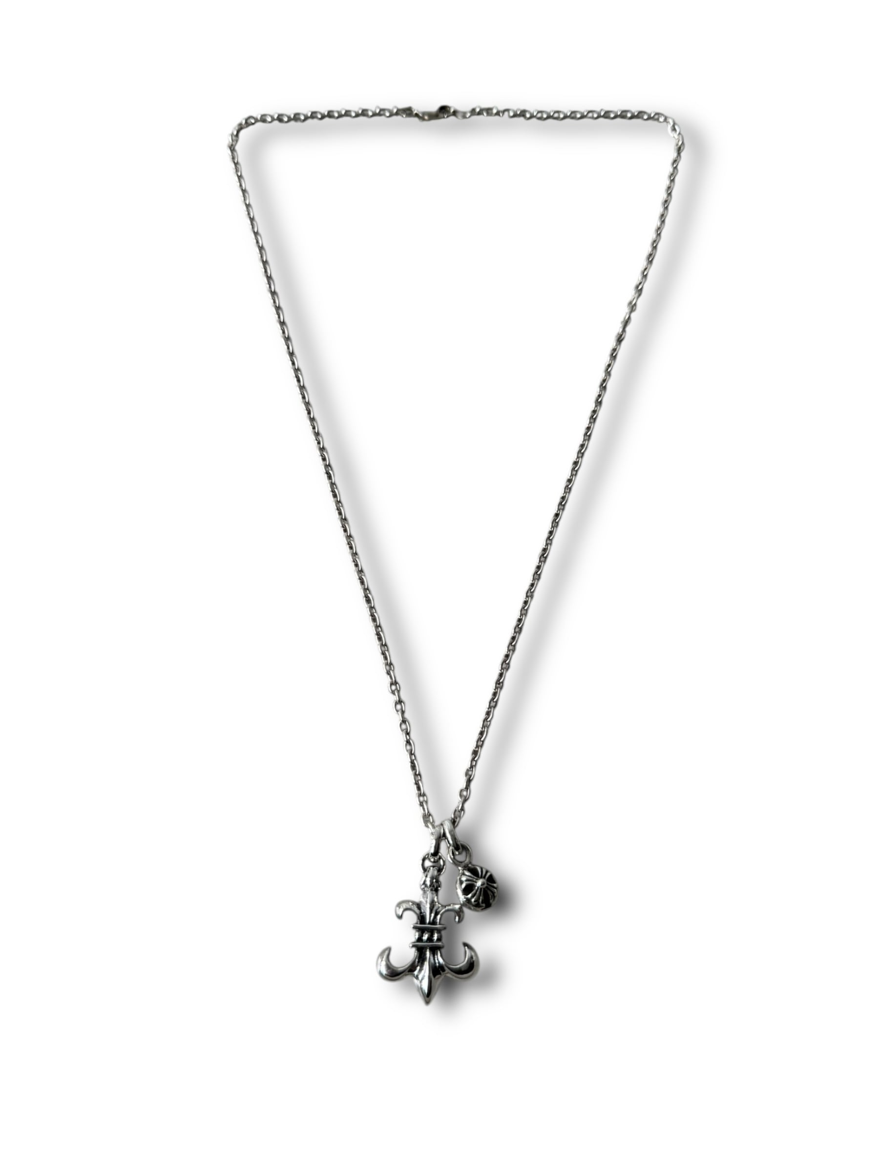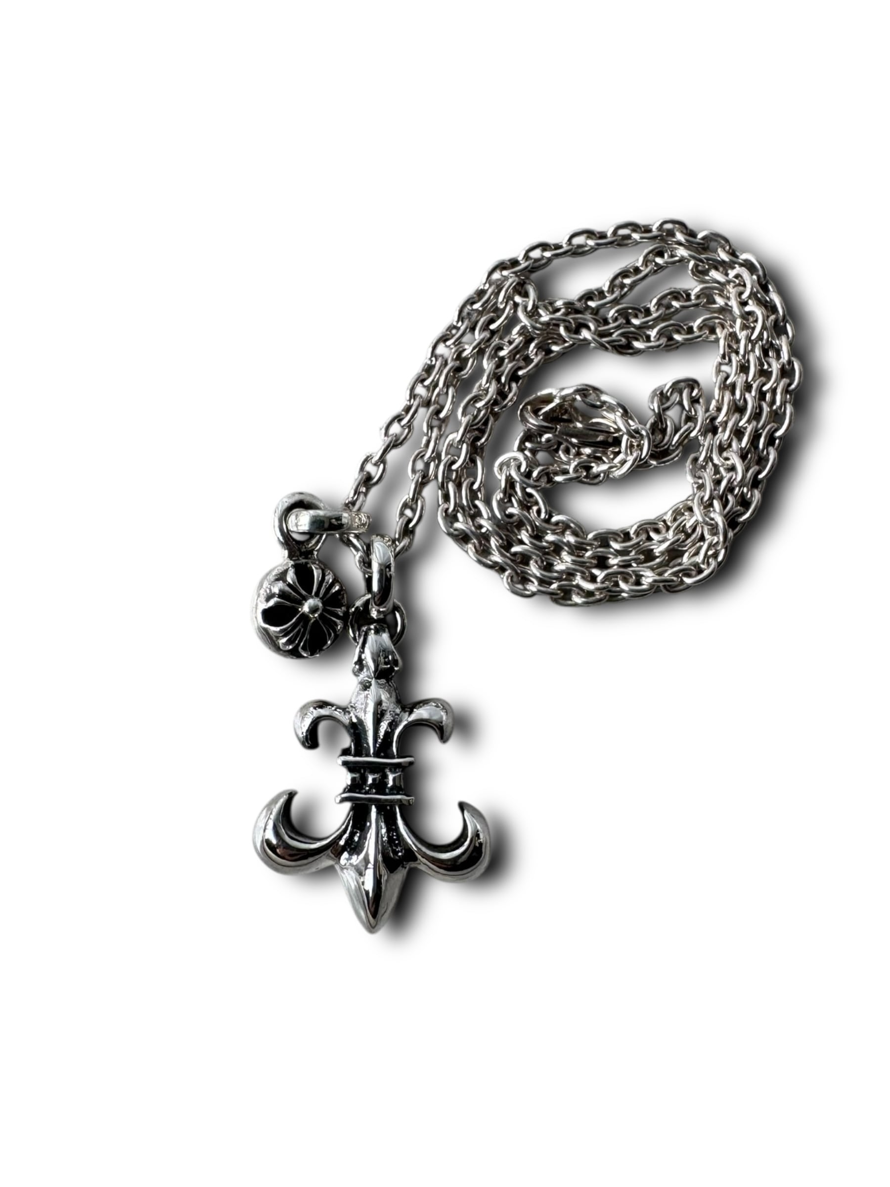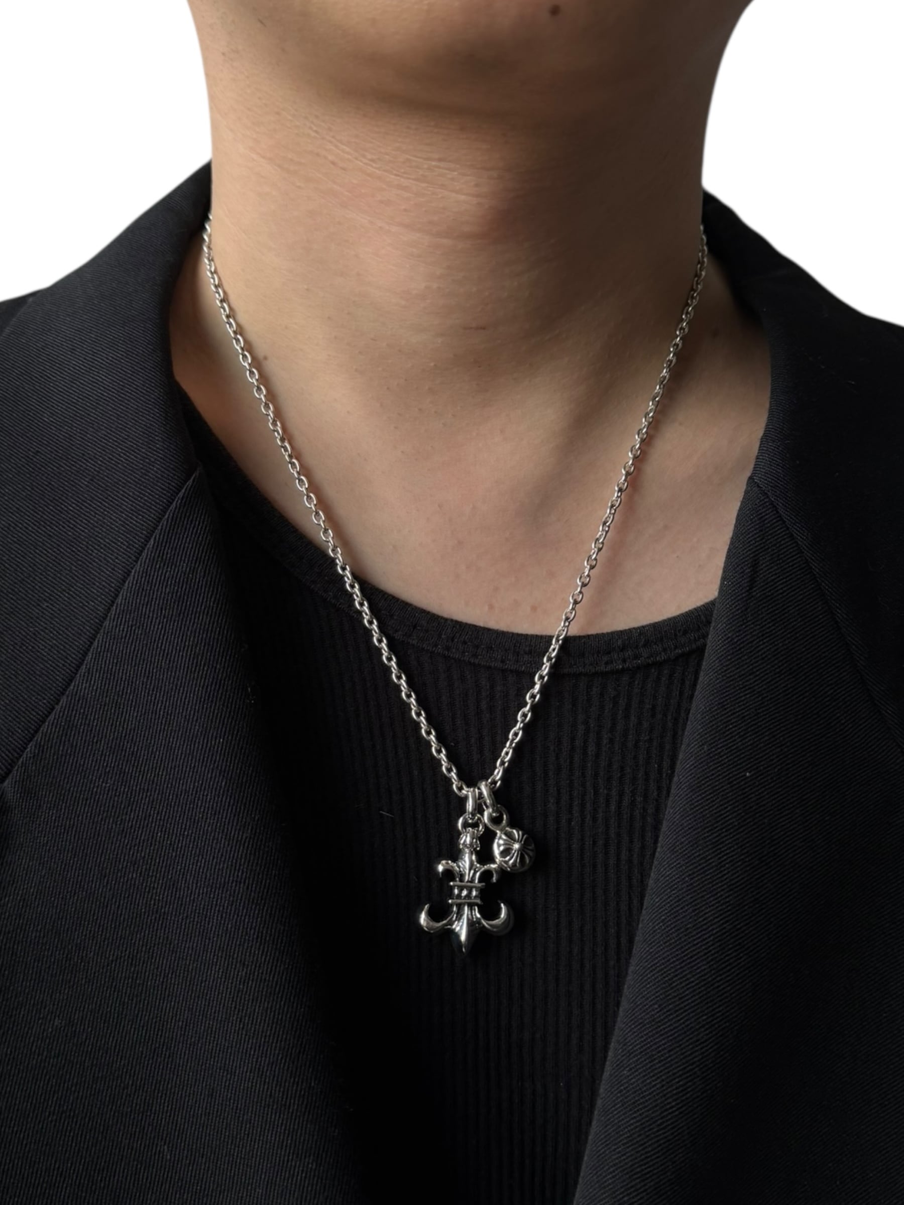フレアと小ぶりなクロスボールのダブルモチーフが存在感抜群なデザインシルバーネックレス‼️