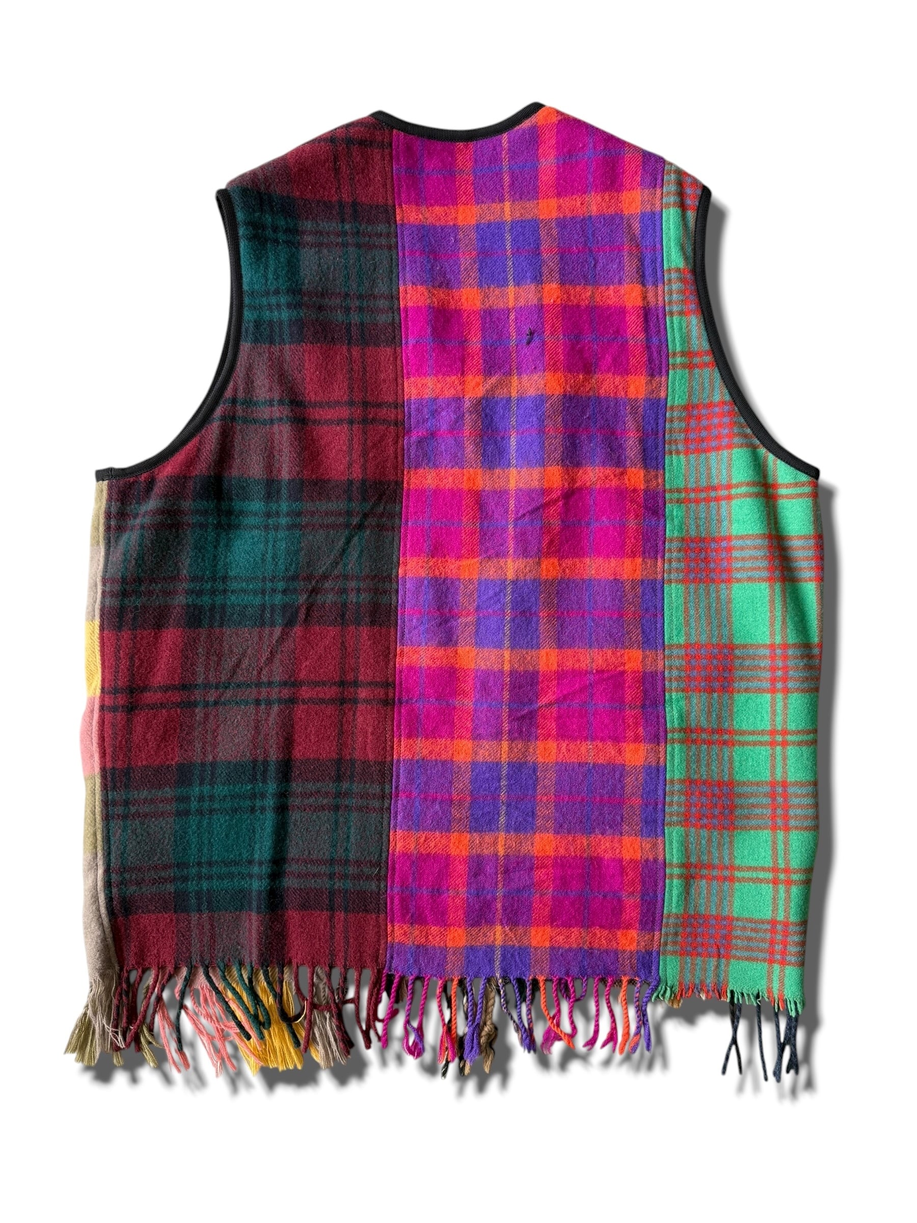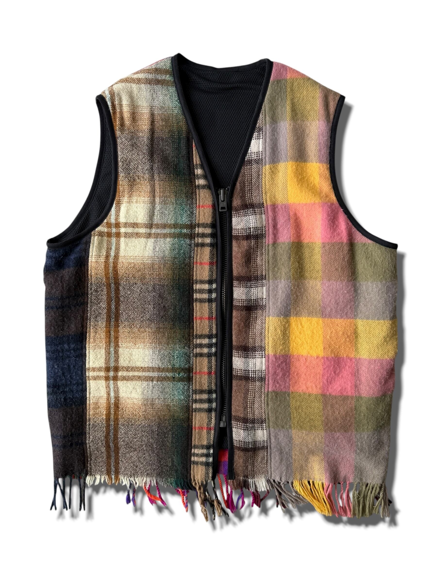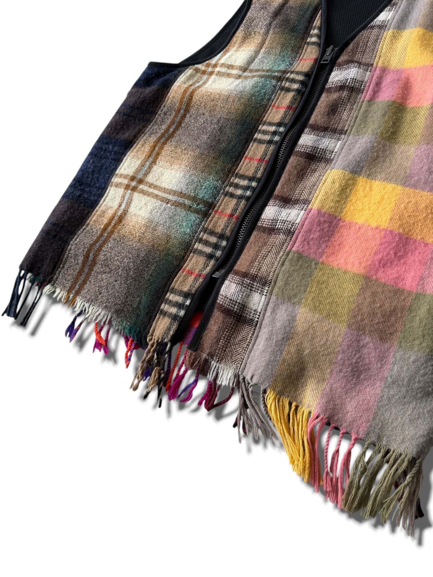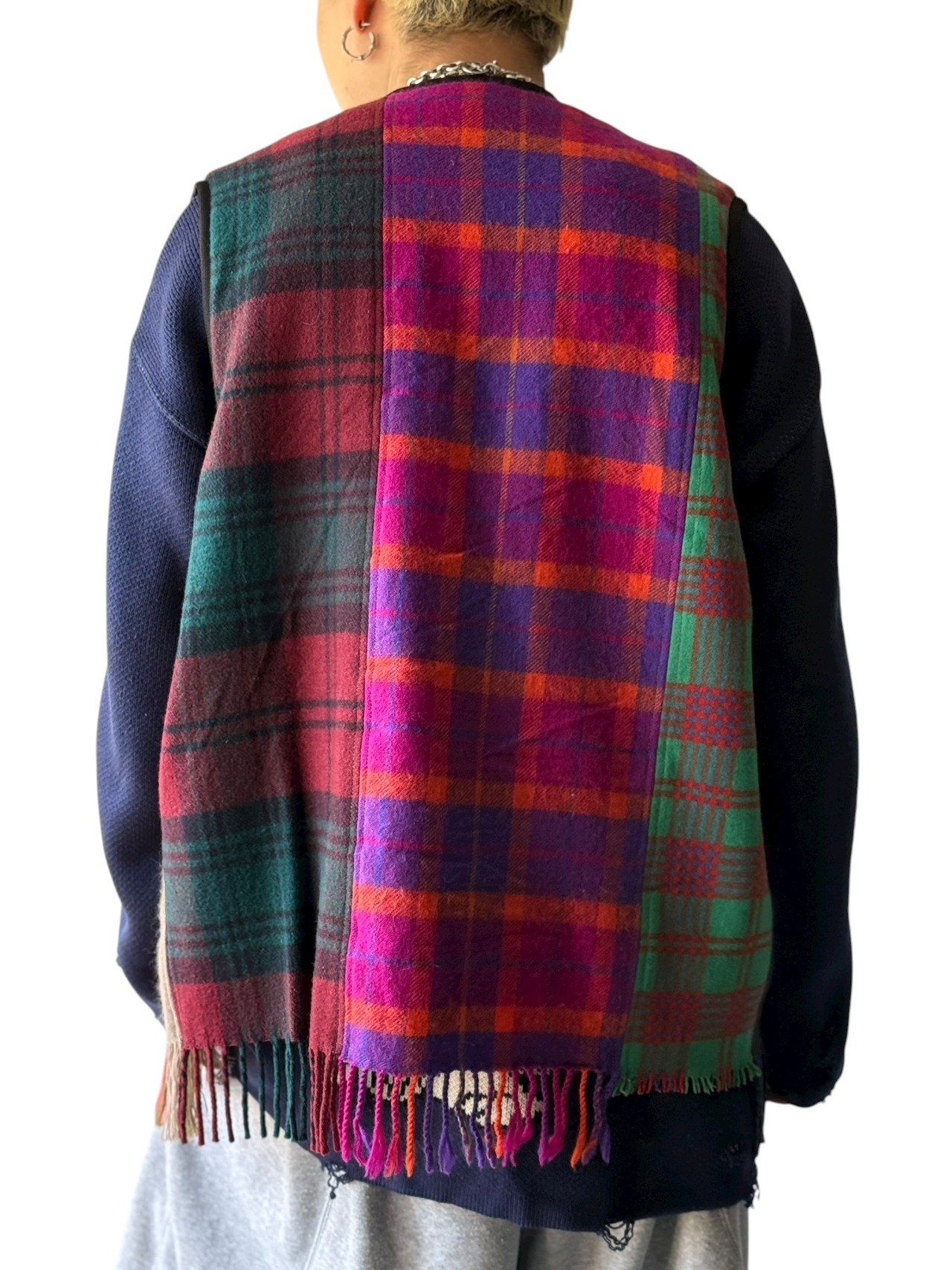 【HURRAY HURRAY】Multi-check pattern fringe design vest