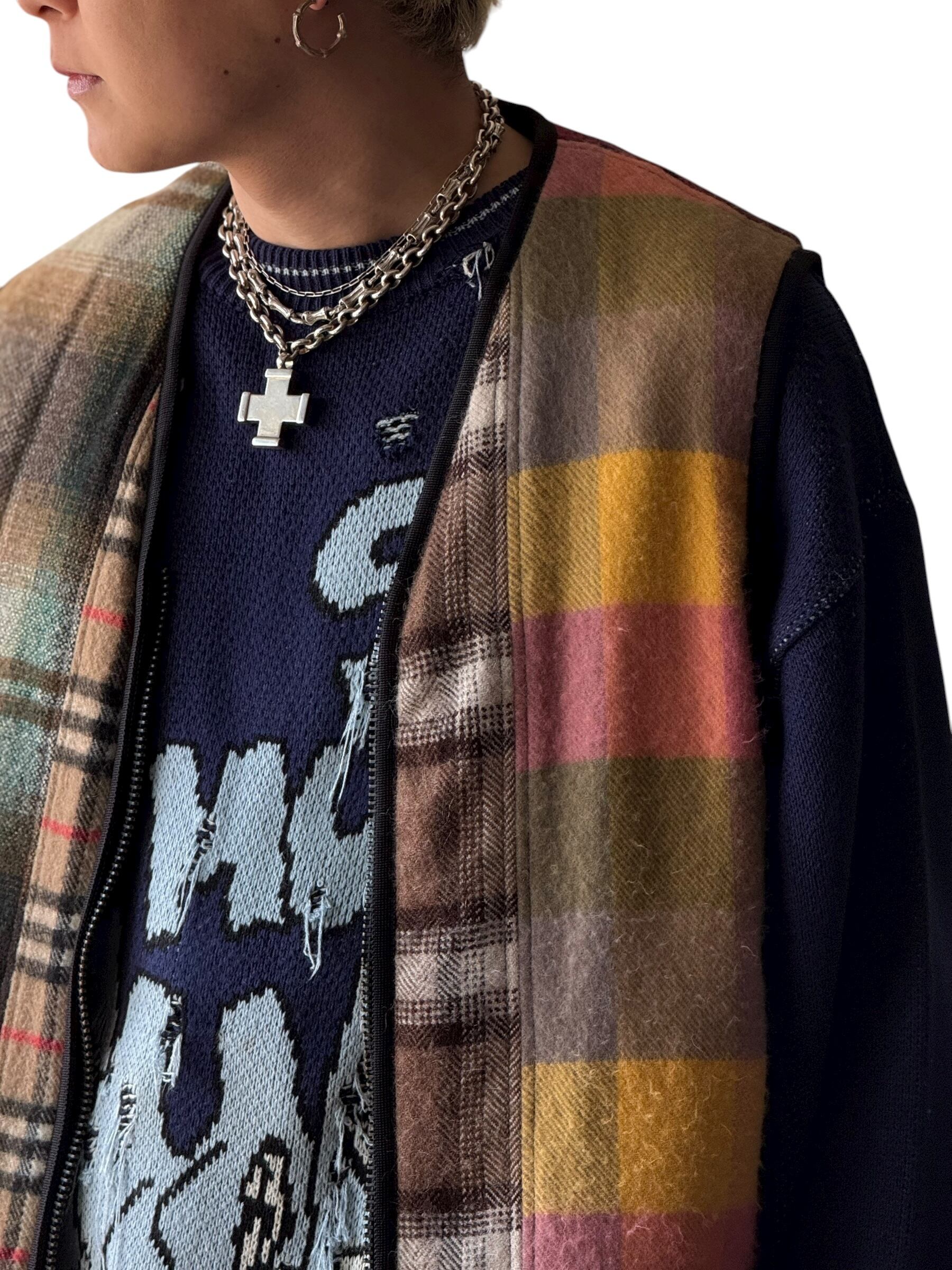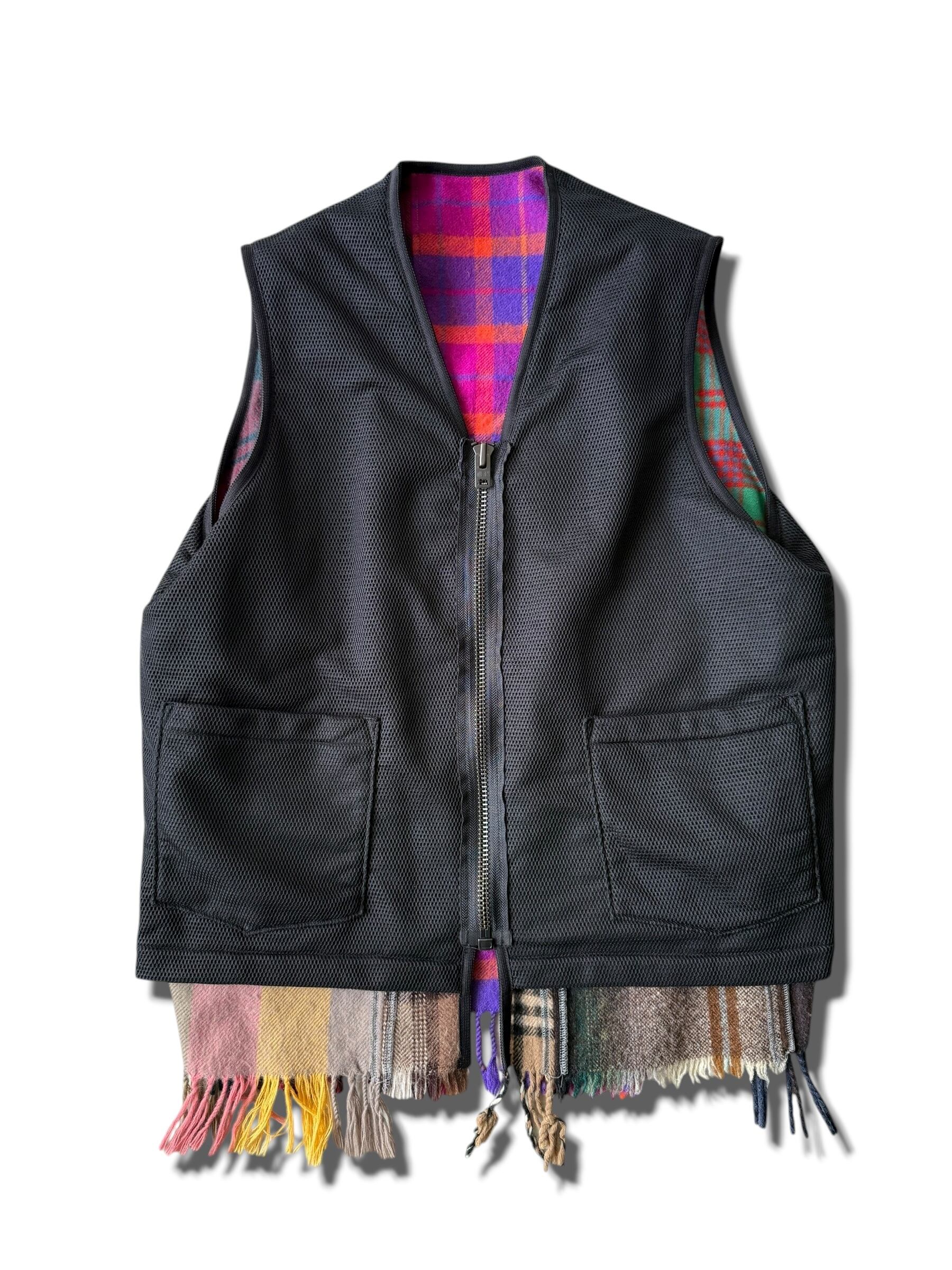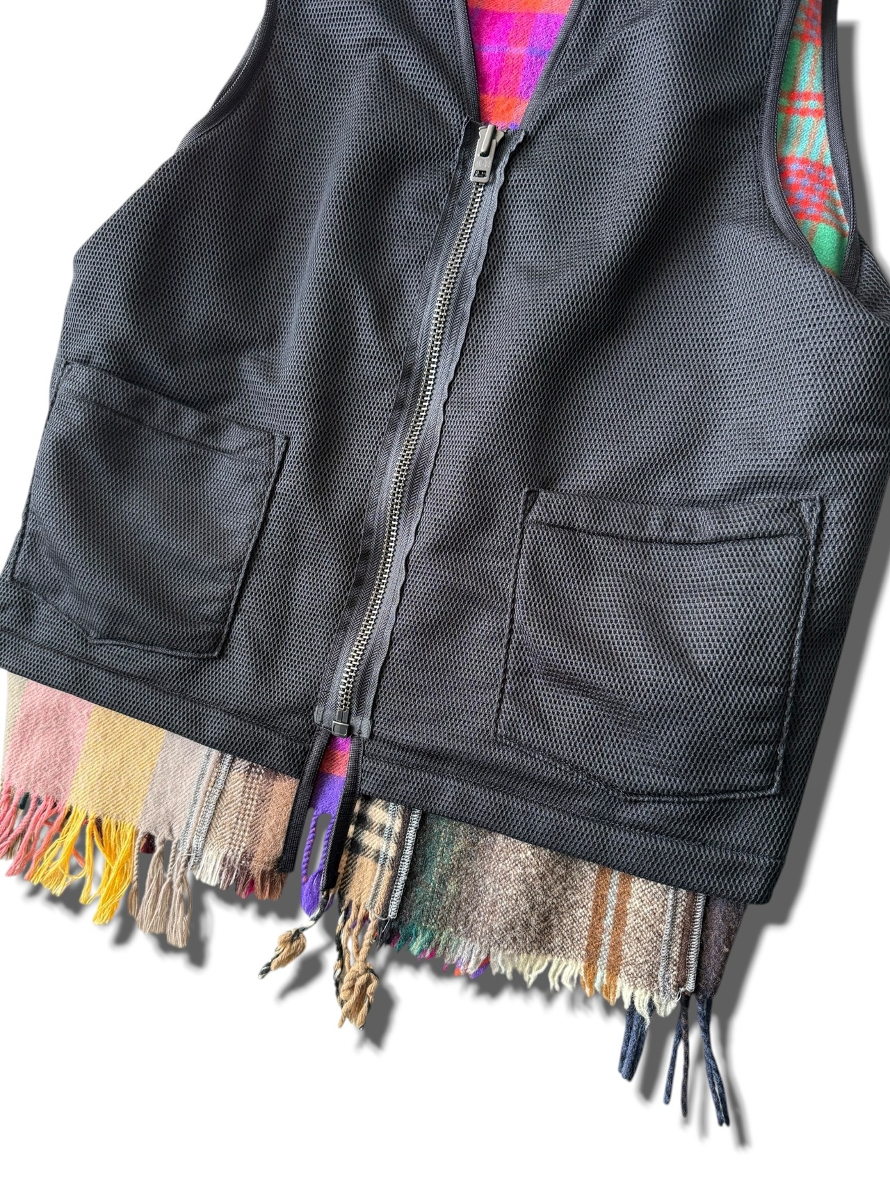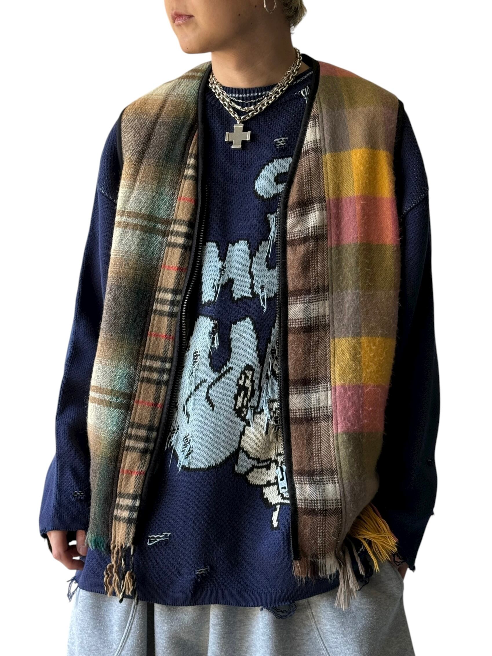 【HURRAY HURRAY】Multi-check pattern fringe design vest