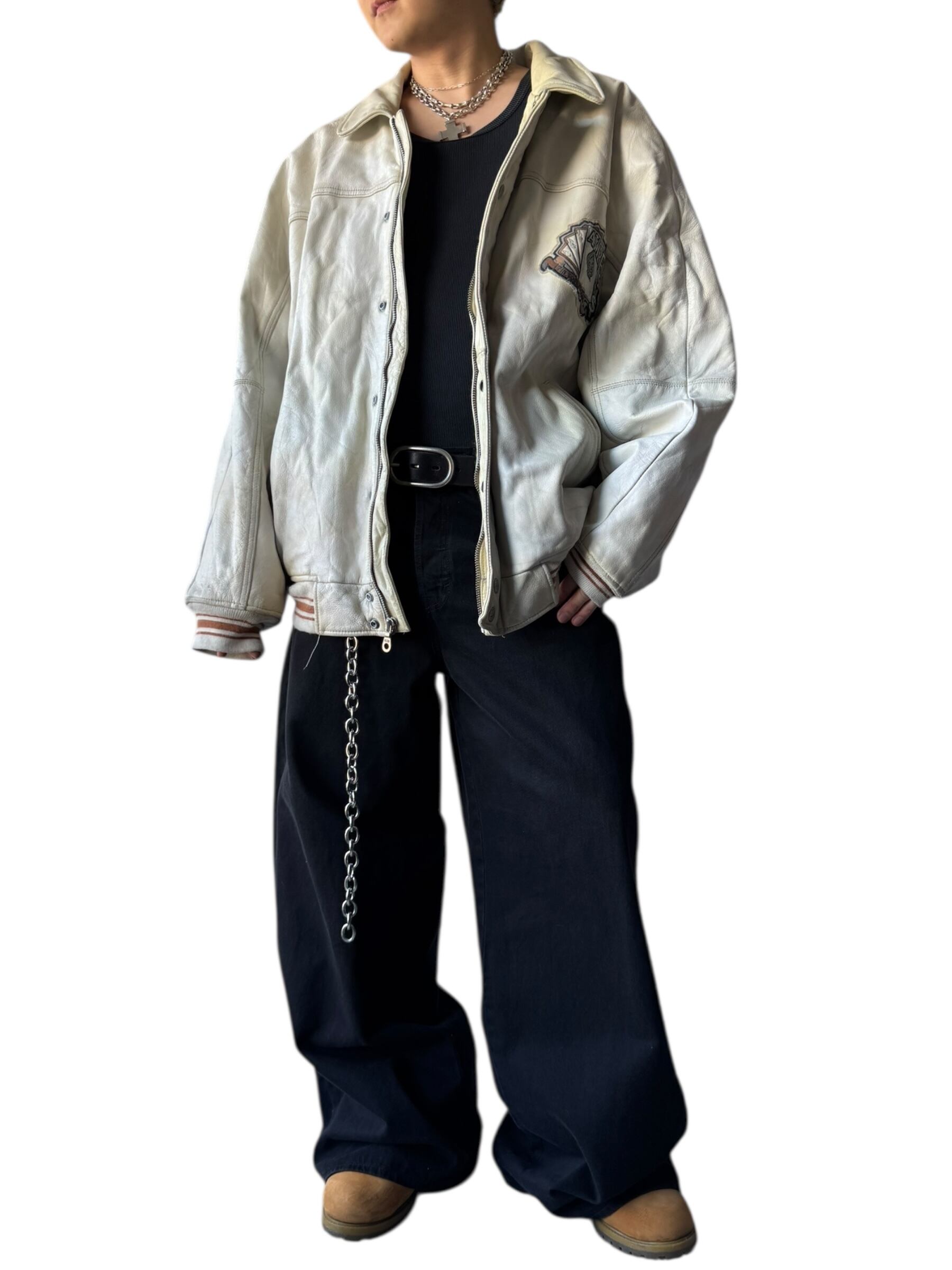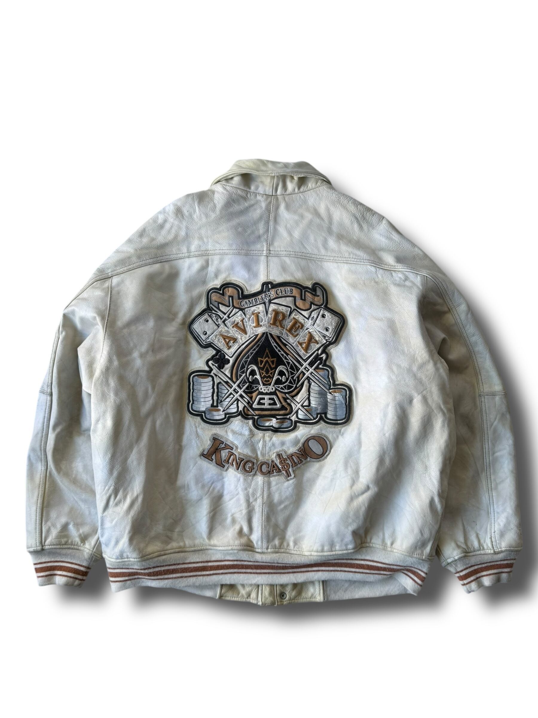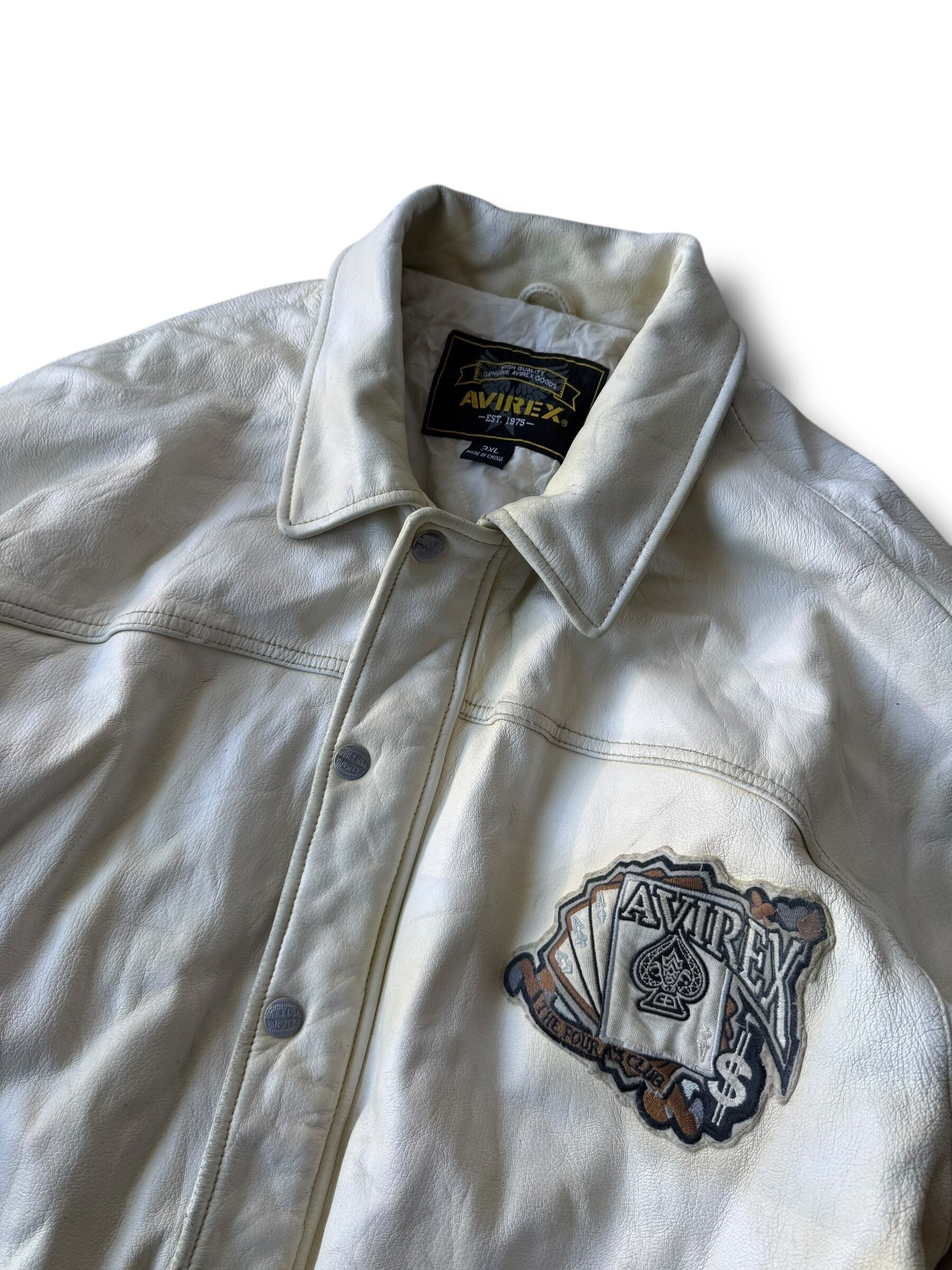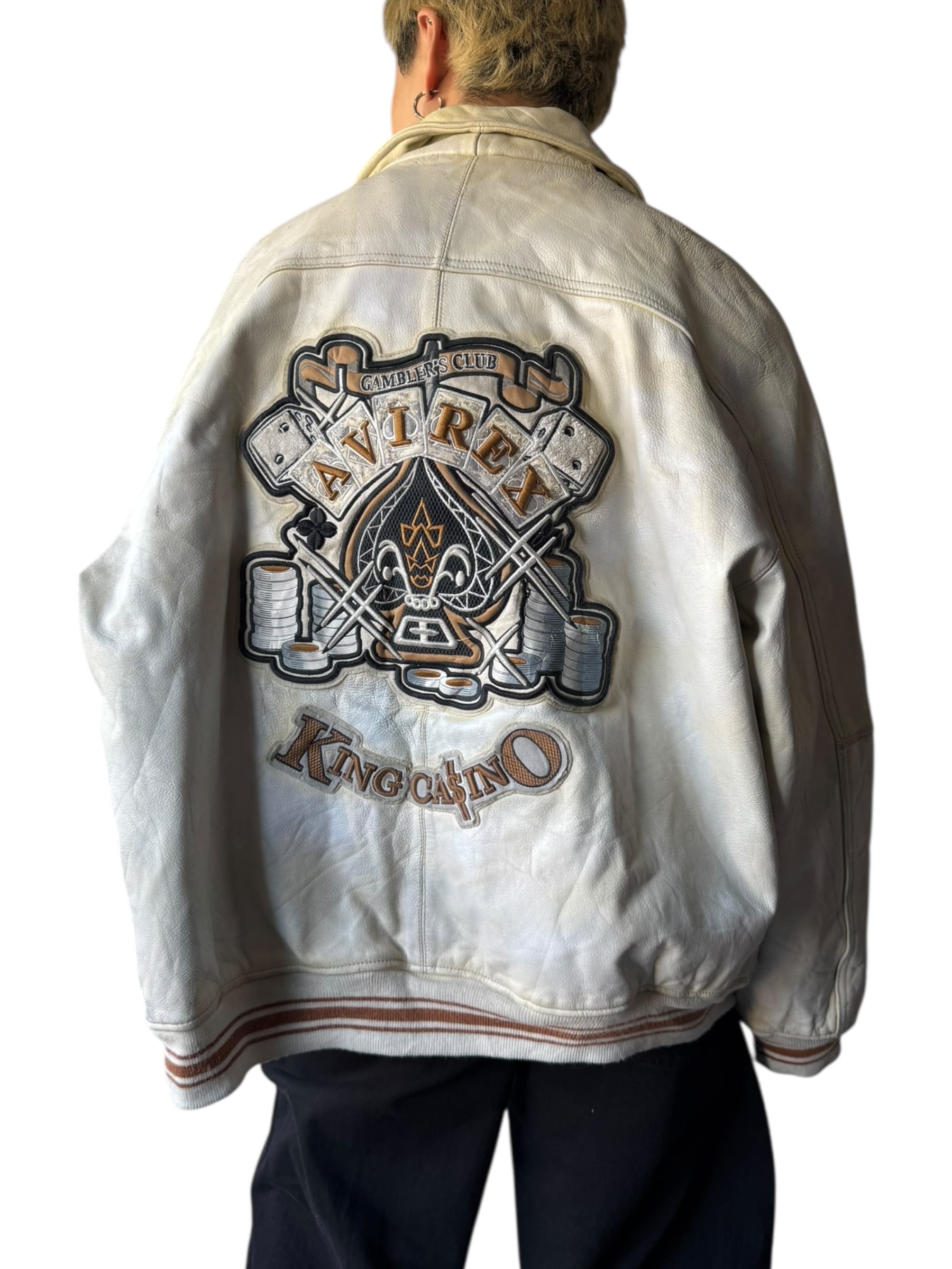 ♾ Avirex ♾ "gambler's club"Logo design white leather size 5XL