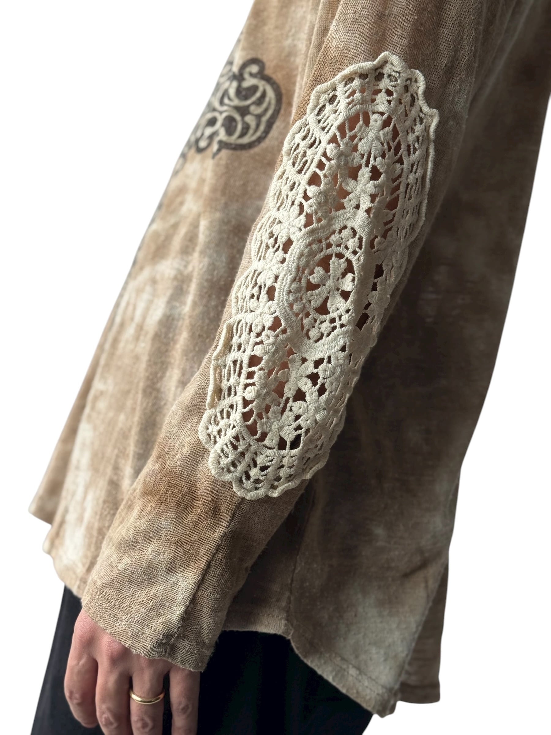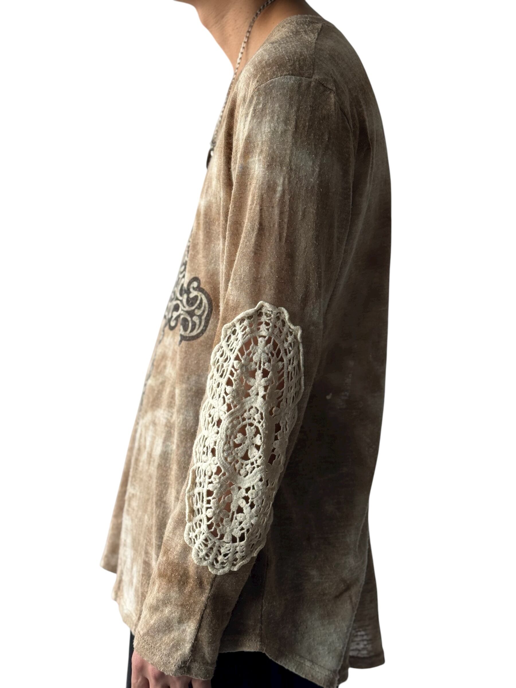 肘部分に透かし掘りデザインのレースが貼り付けられていて、唯一無二✋