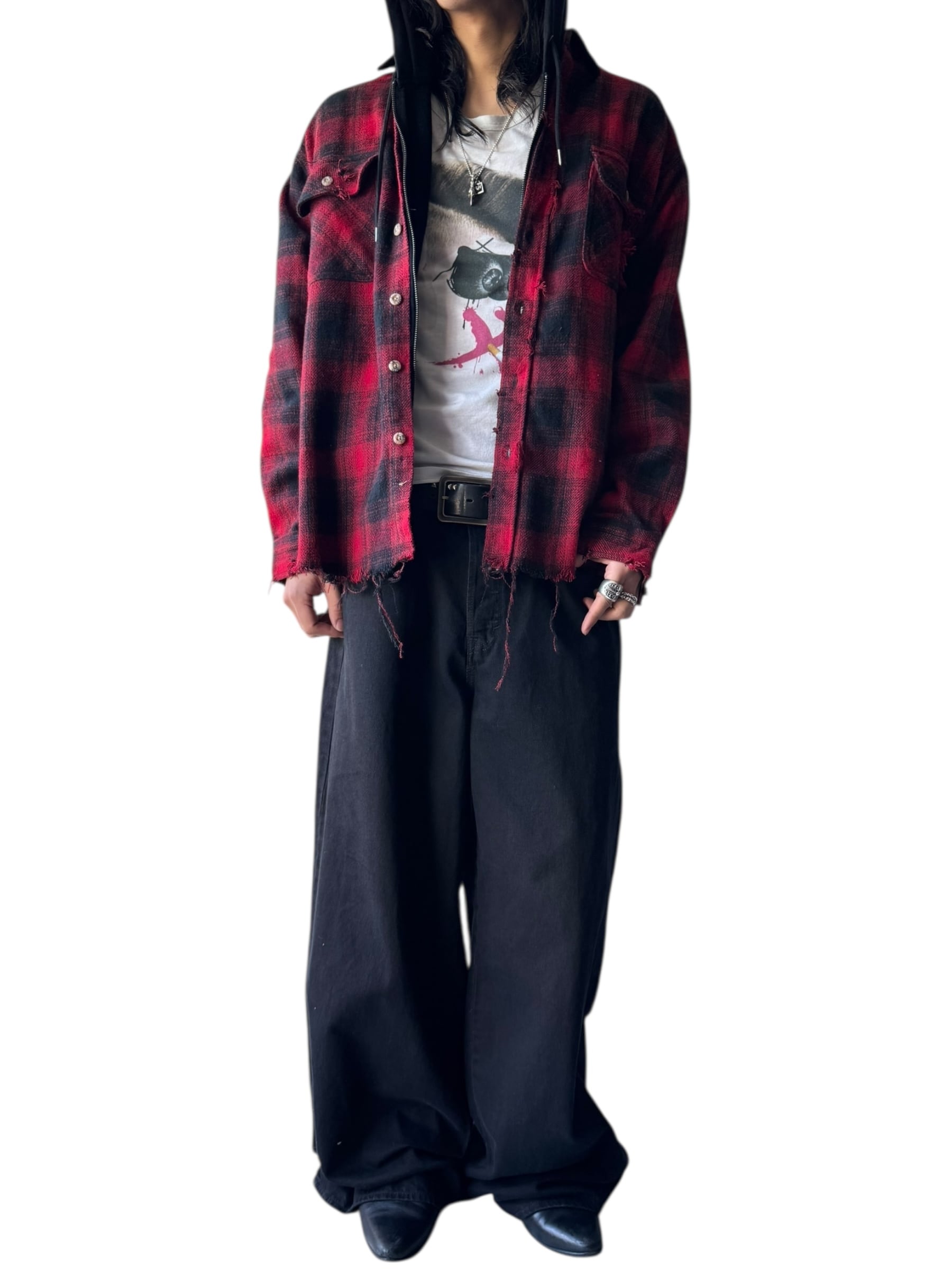 ♾ FIElD STREAM♾ Destroy design check shirt size M ・