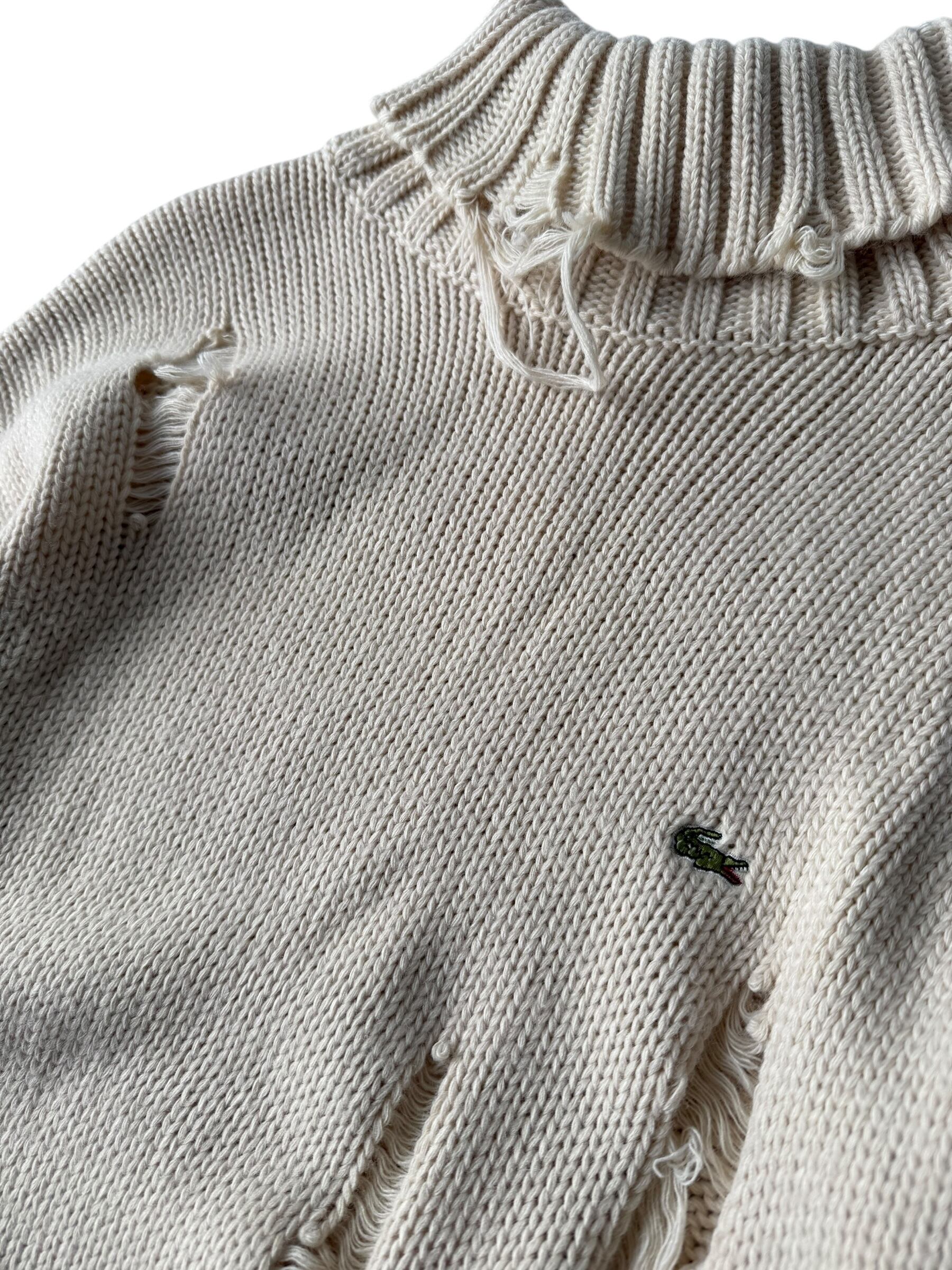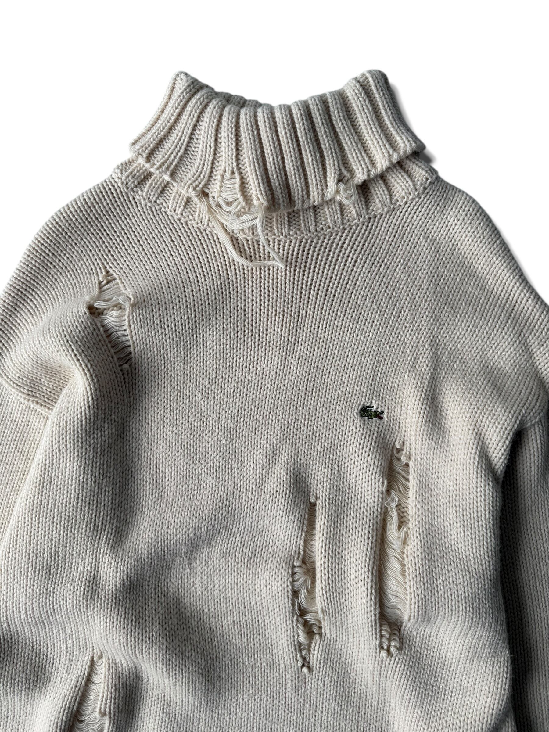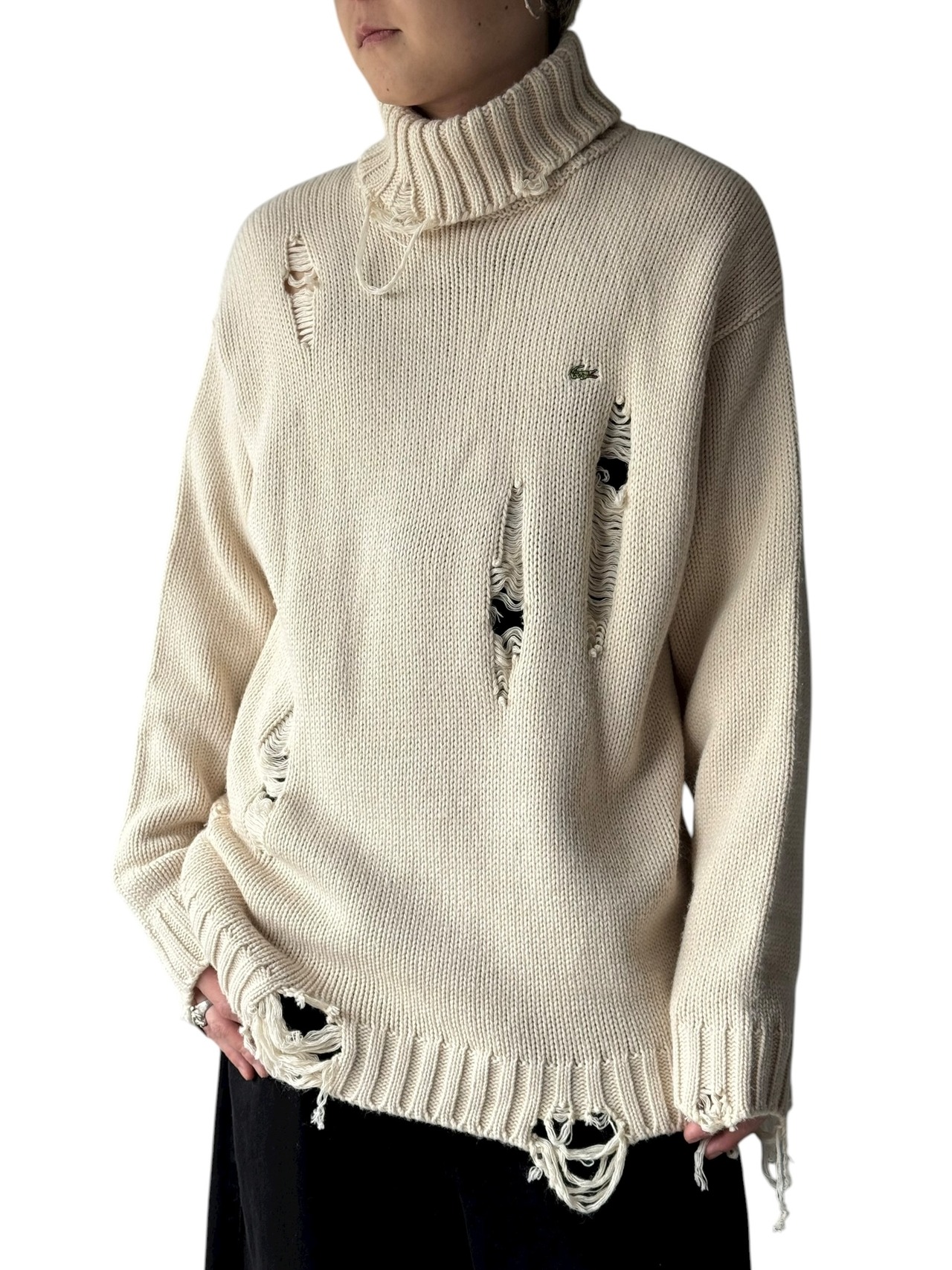 【LACOSTE】 Distressed turtleneck knit sweater "MADE IN SPAIN"