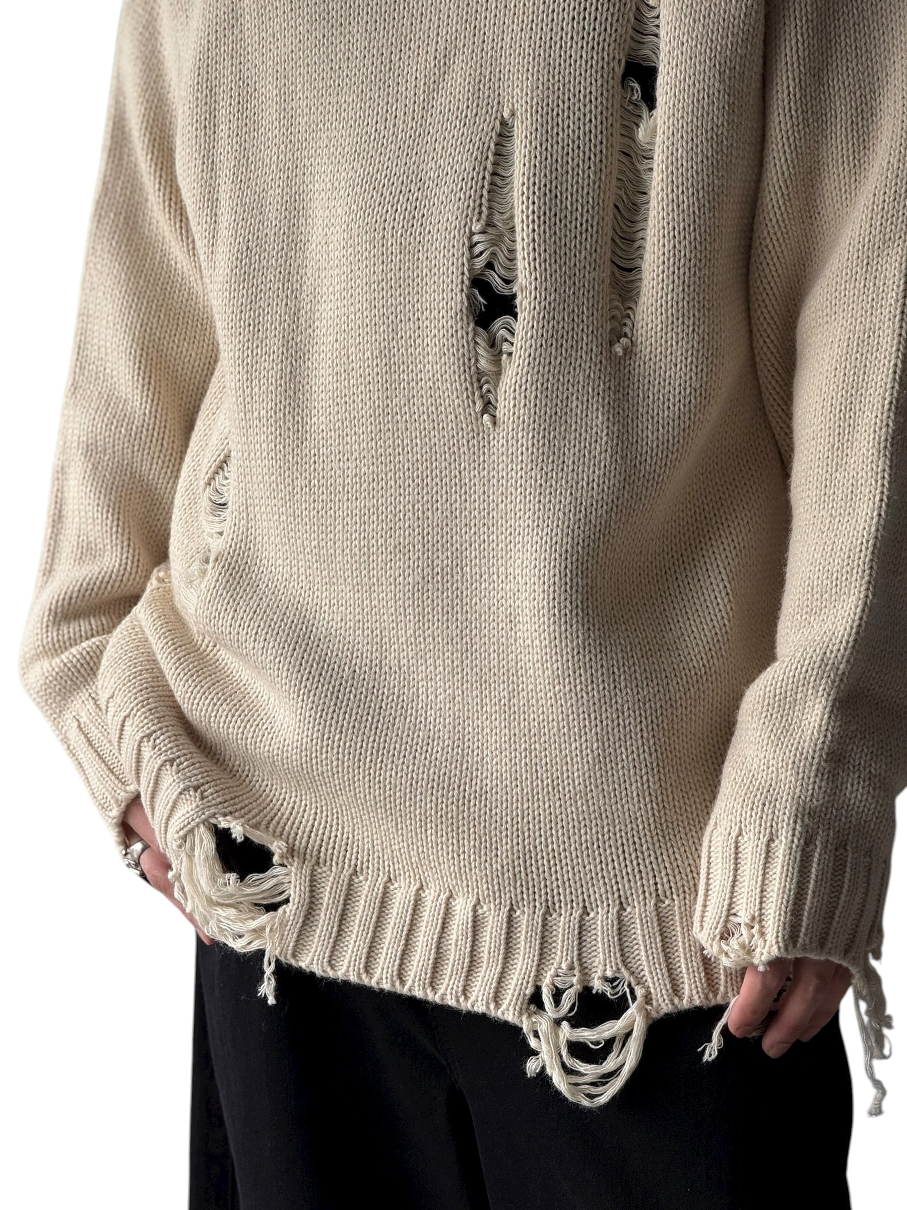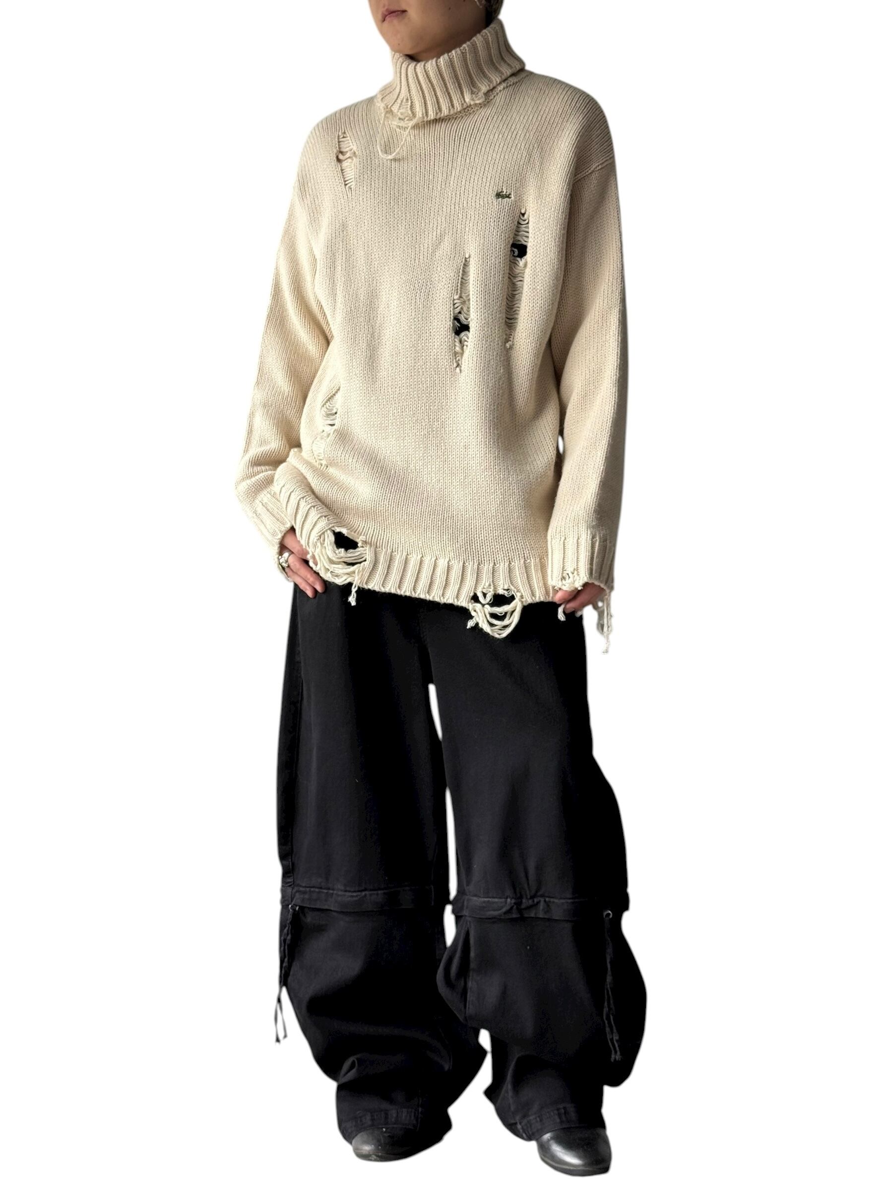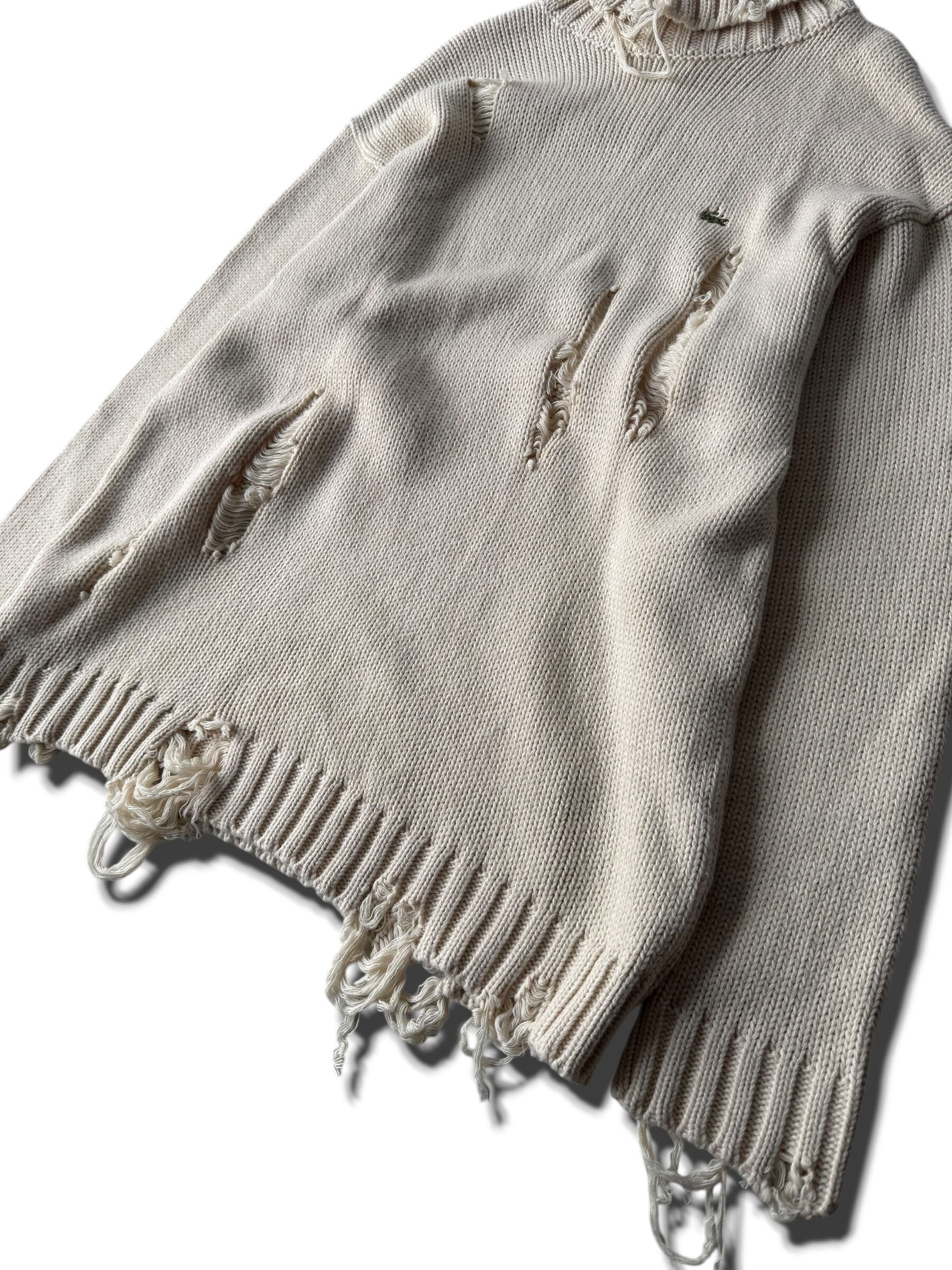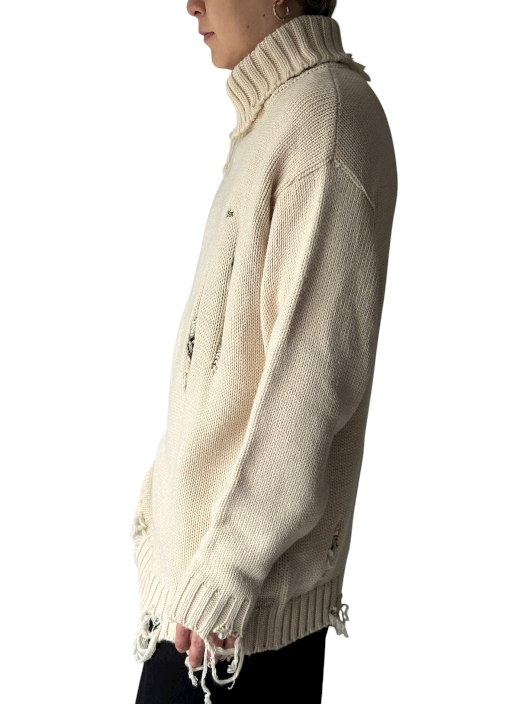 【LACOSTE】 Distressed turtleneck knit sweater "MADE IN SPAIN"