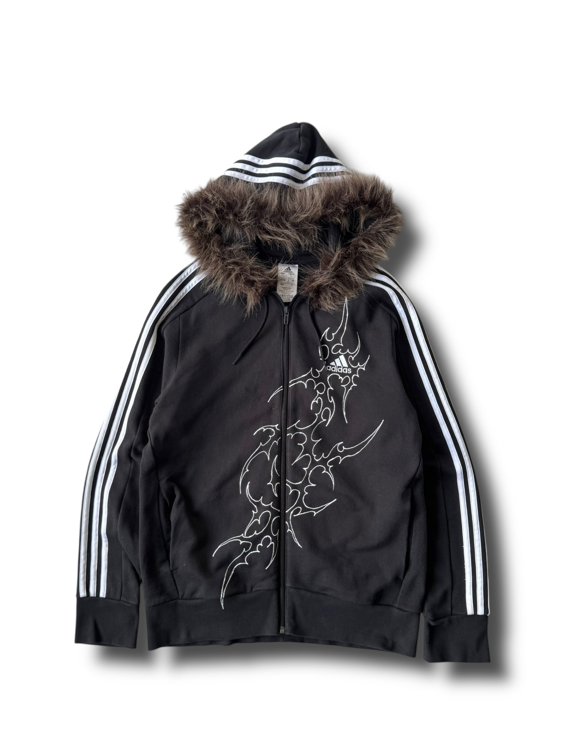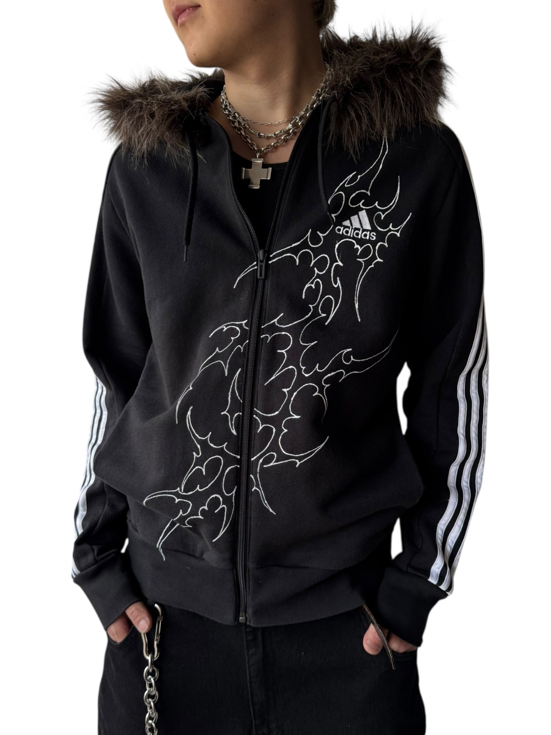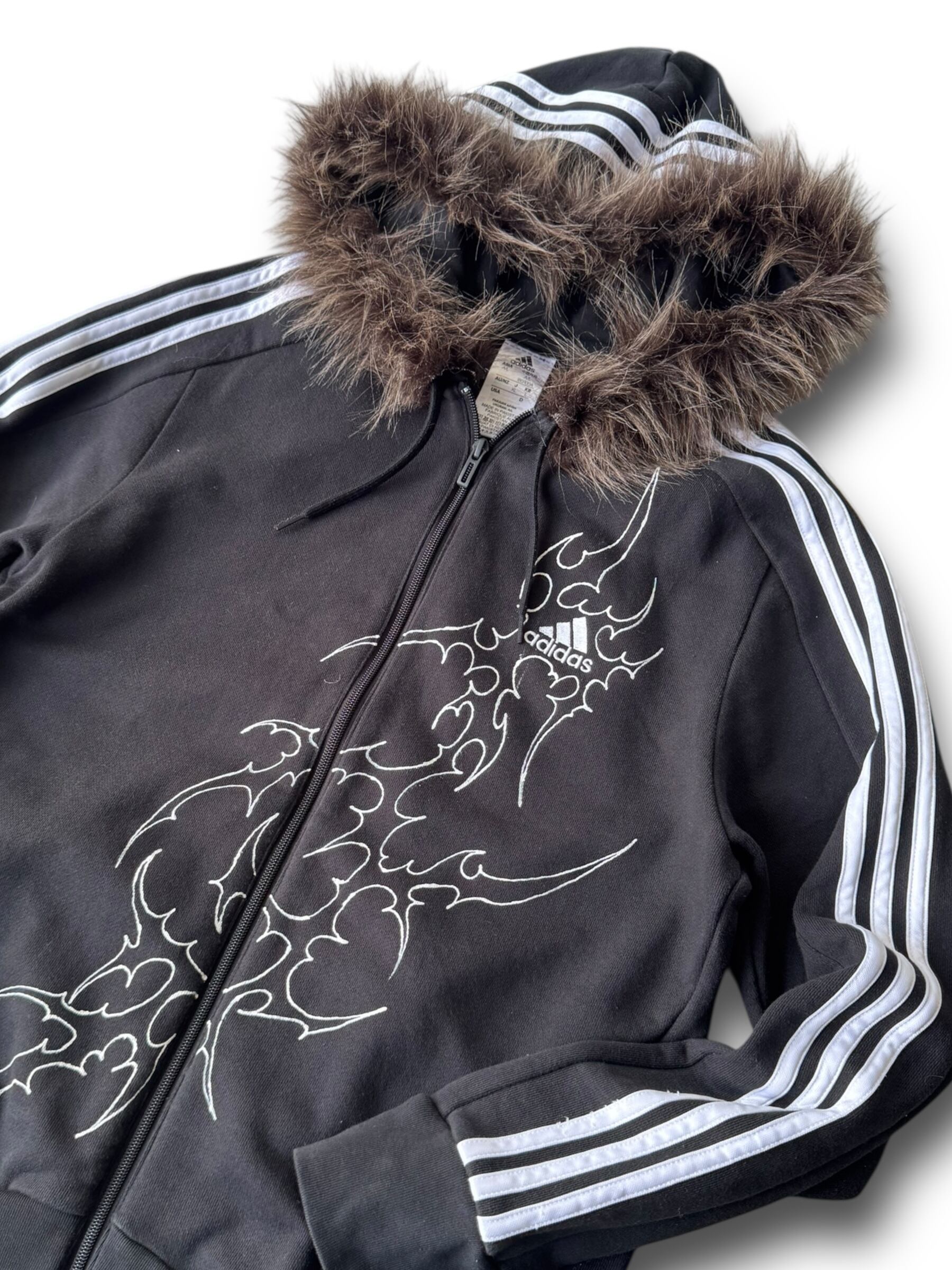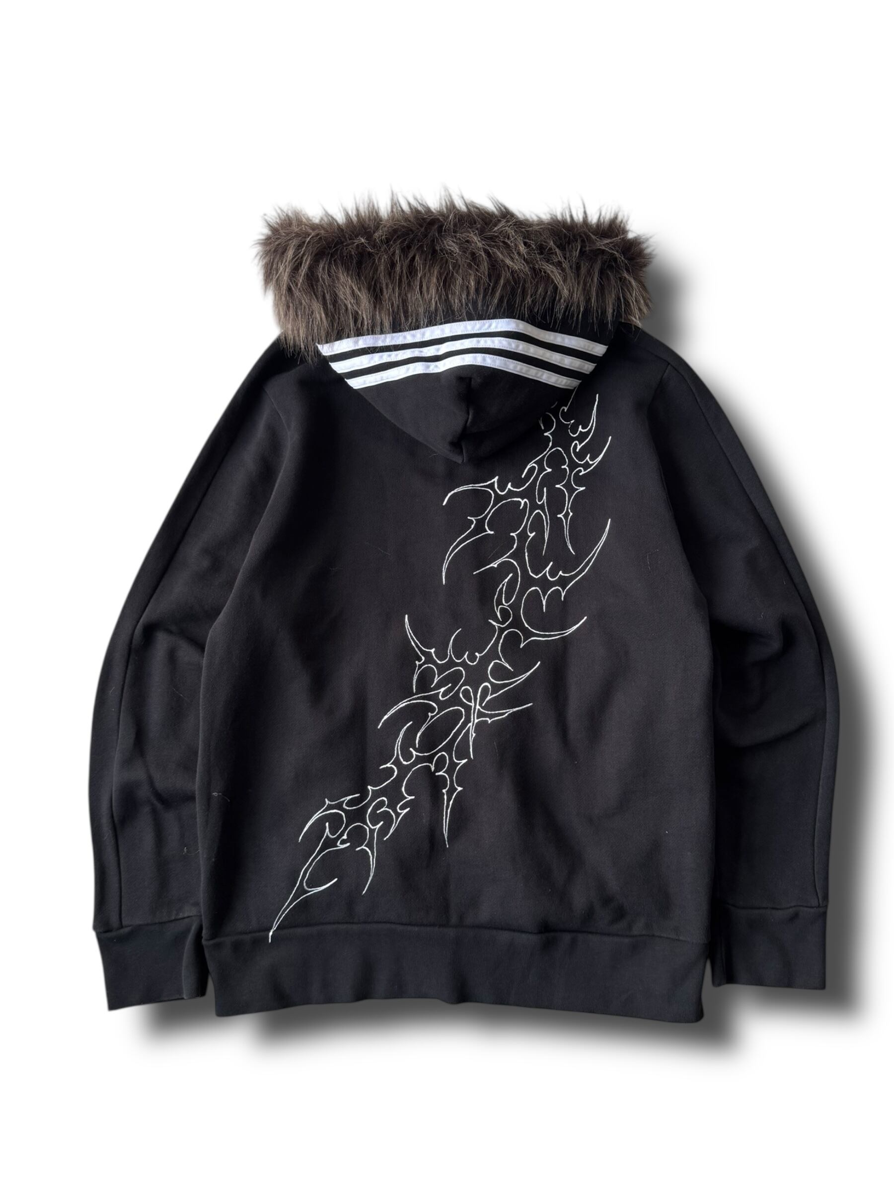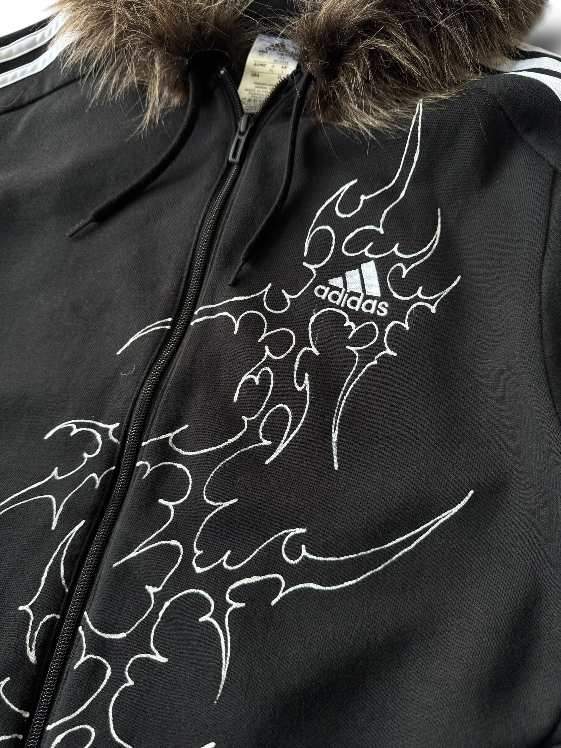 ♾adidas♾ hand painted fur switching design zip up hoodie sizeXL