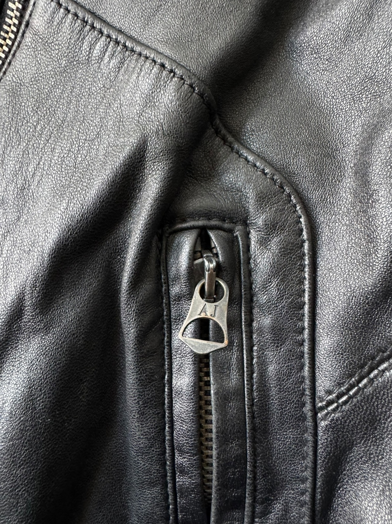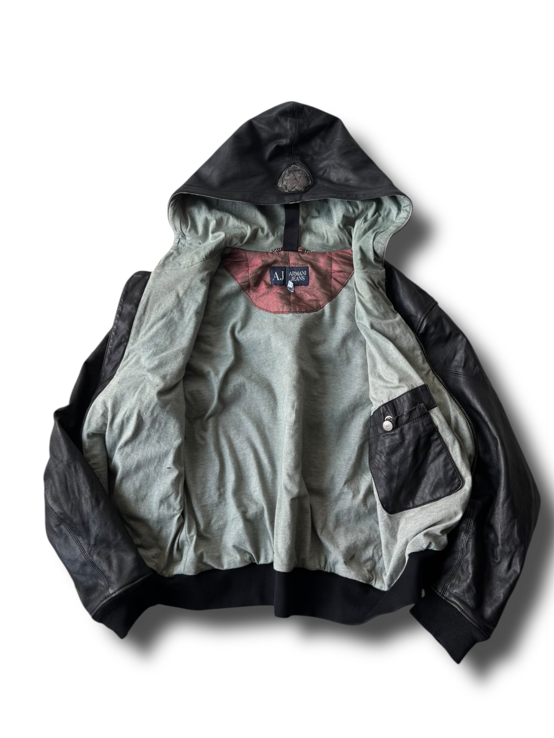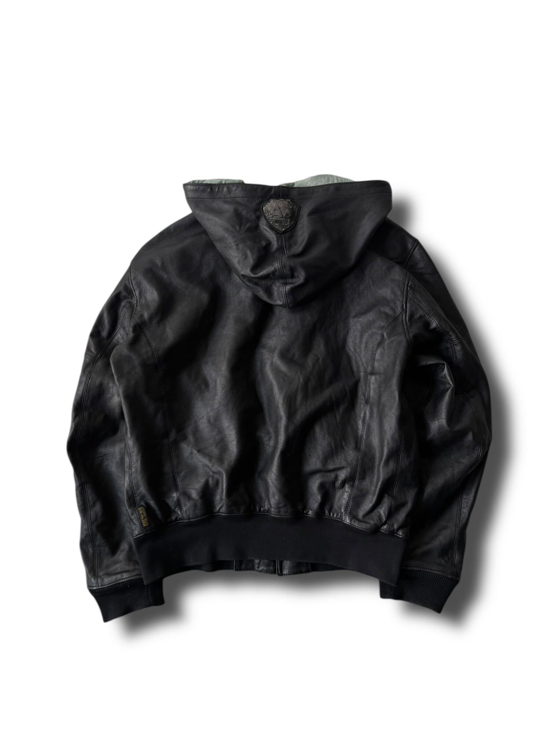 ♾ARMANI JEANS♾ design zip up hooded leather jacket