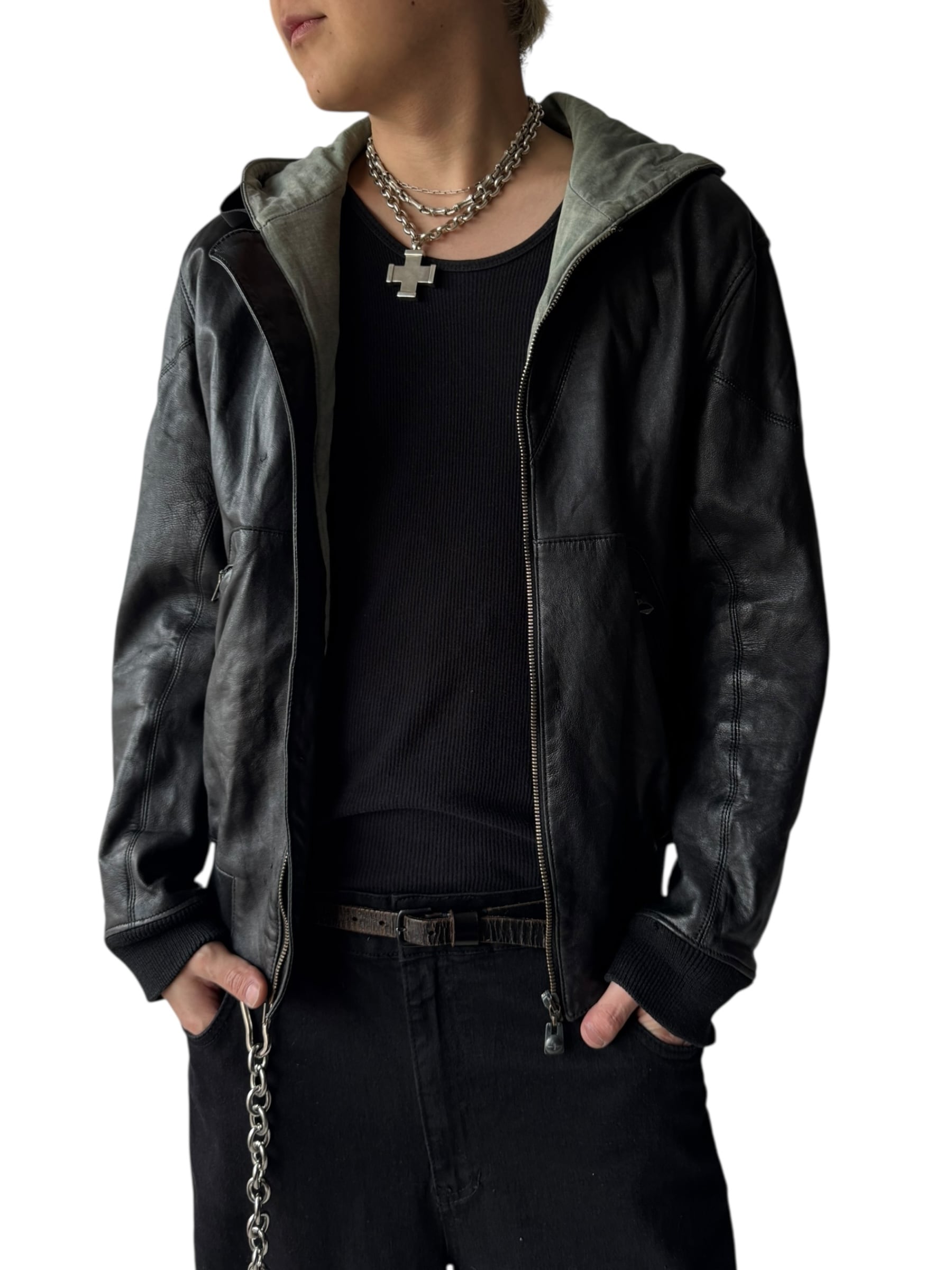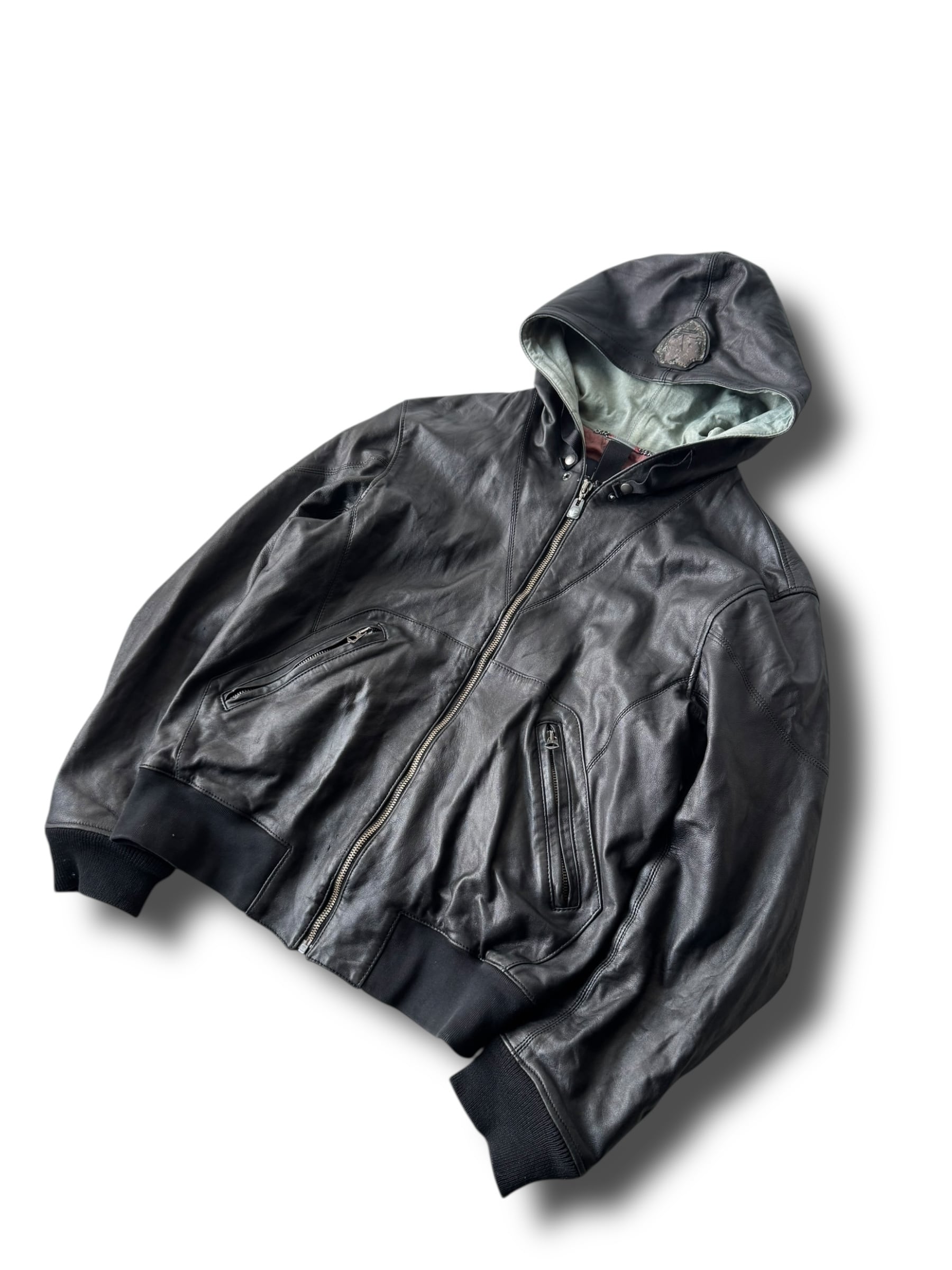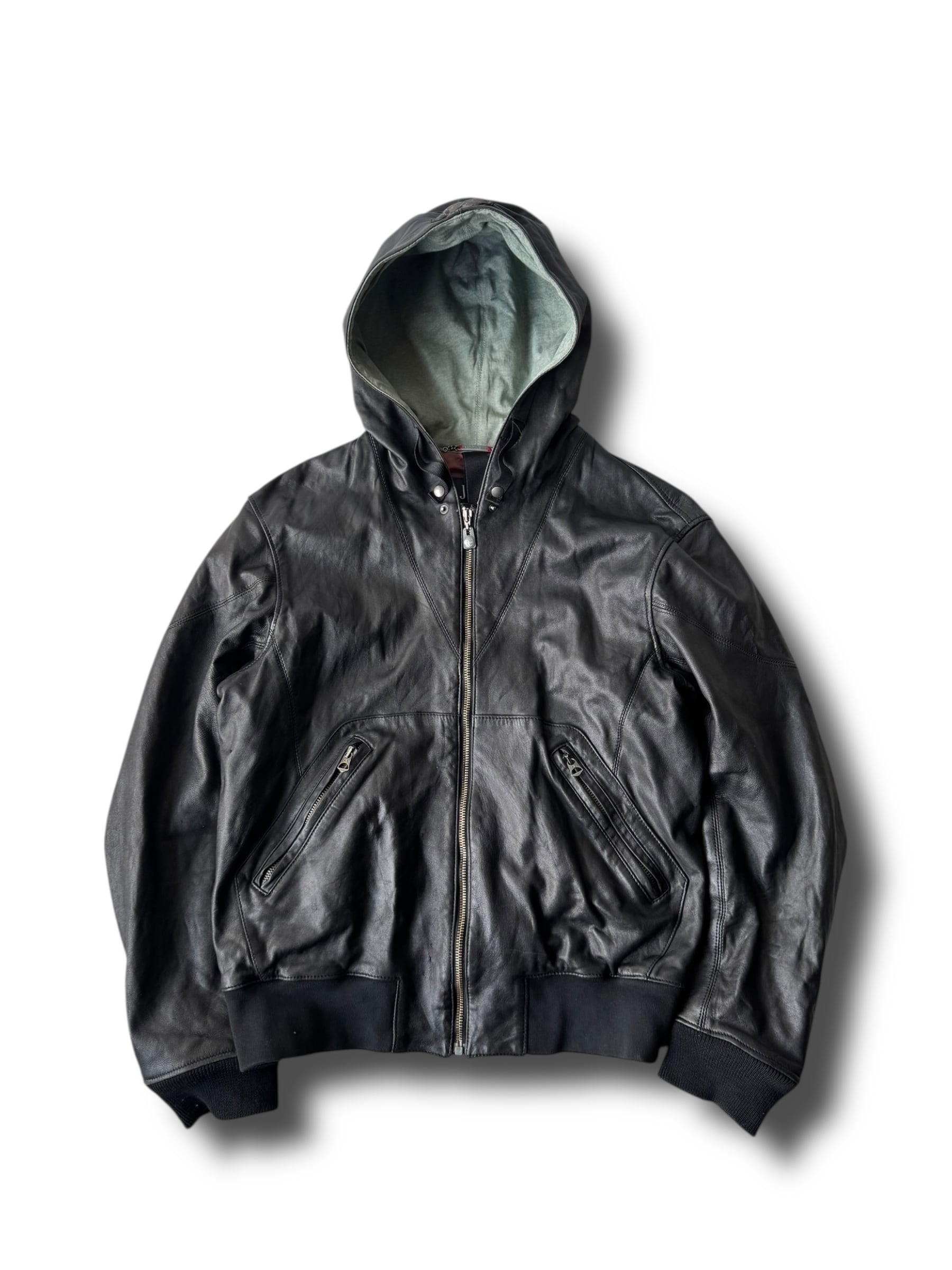 ♾ARMANI JEANS♾ design zip up hooded leather jacket