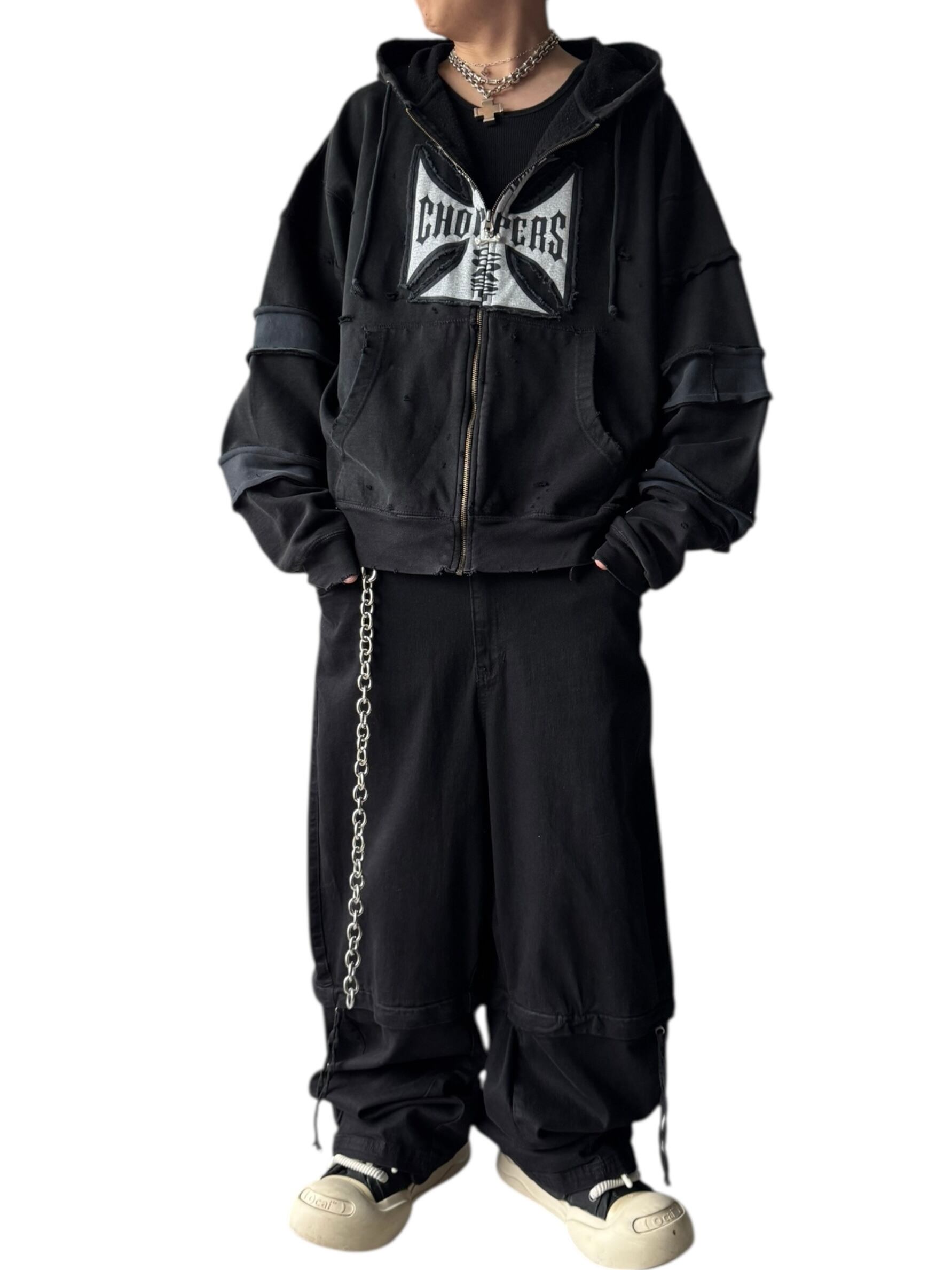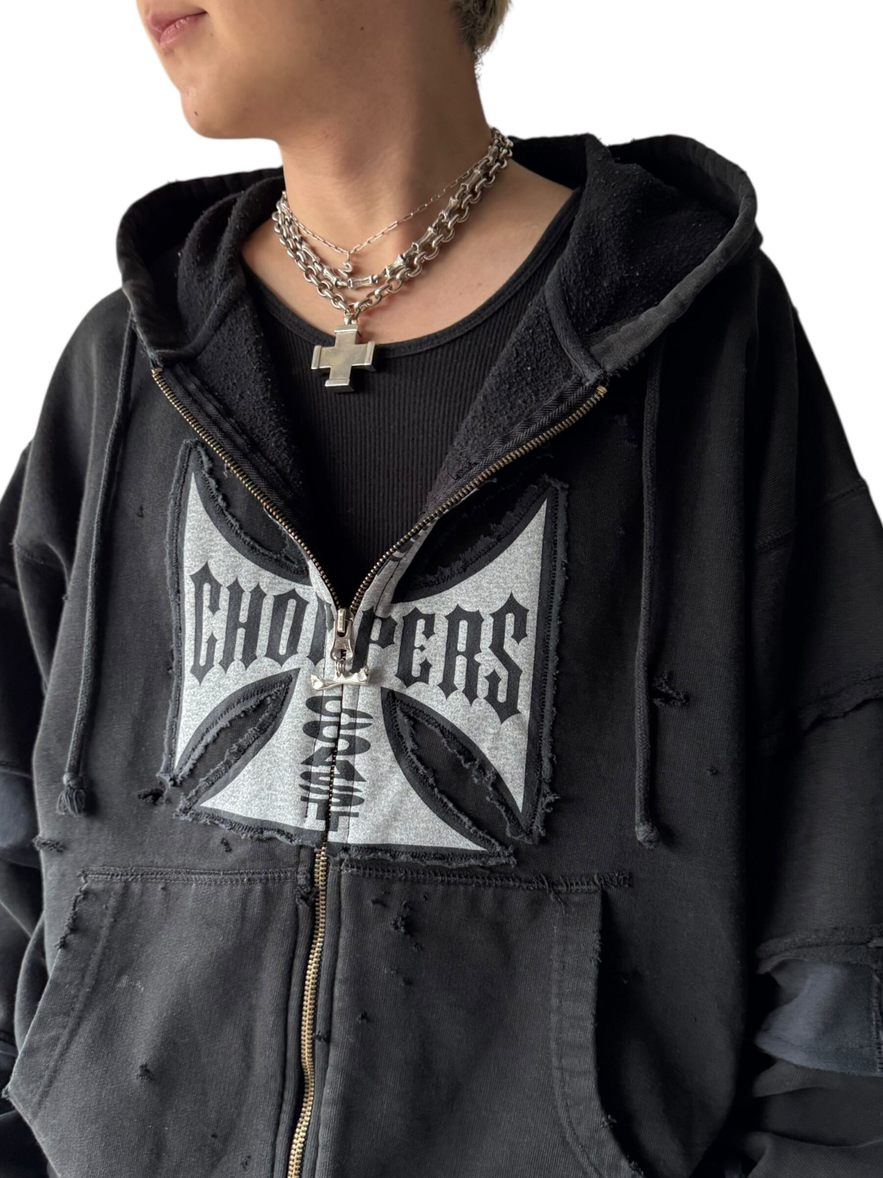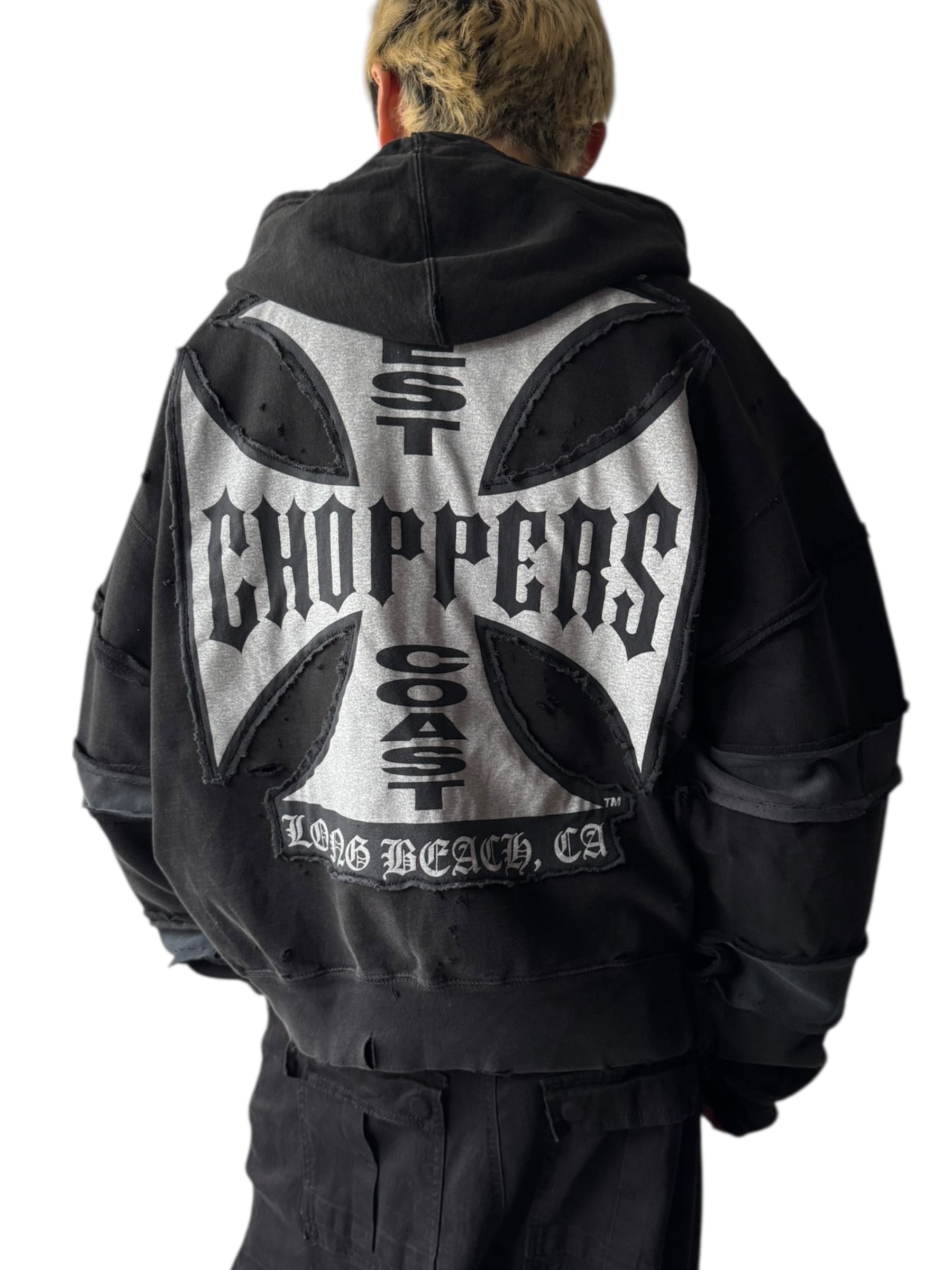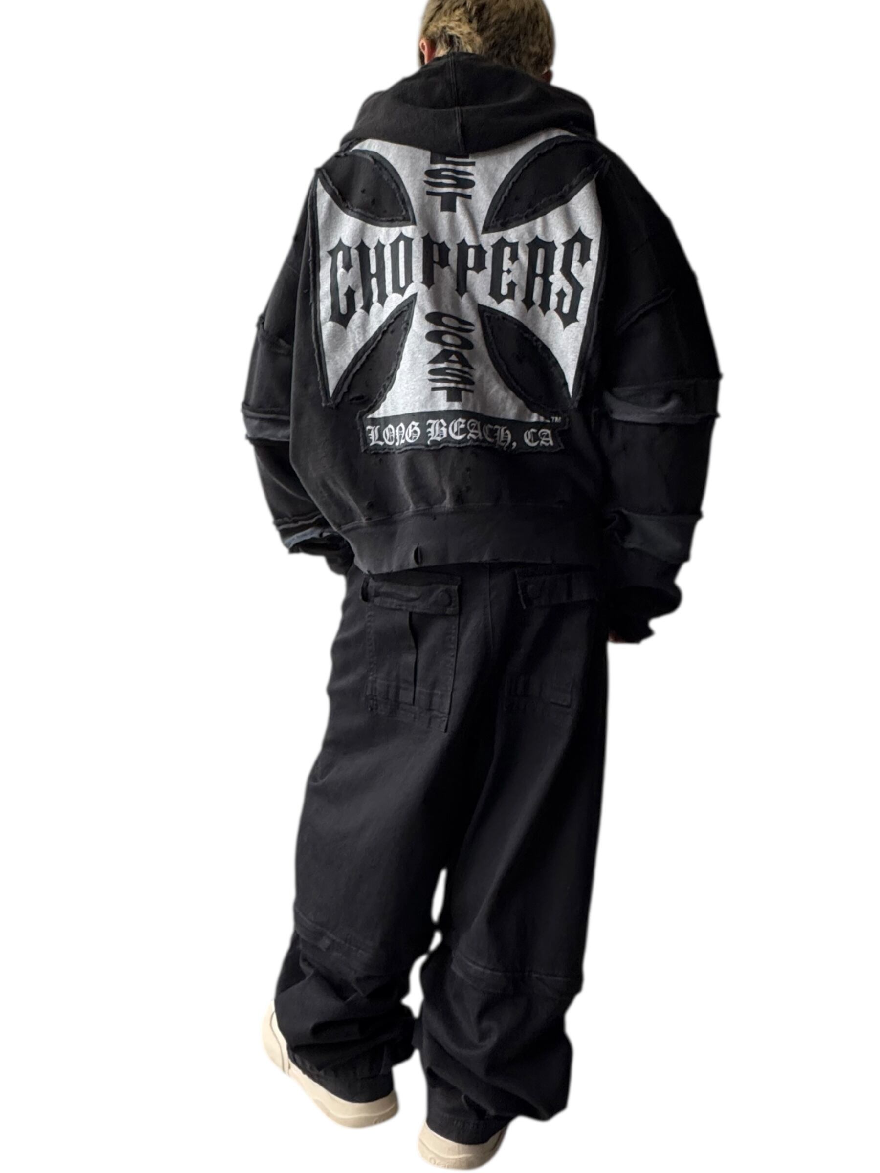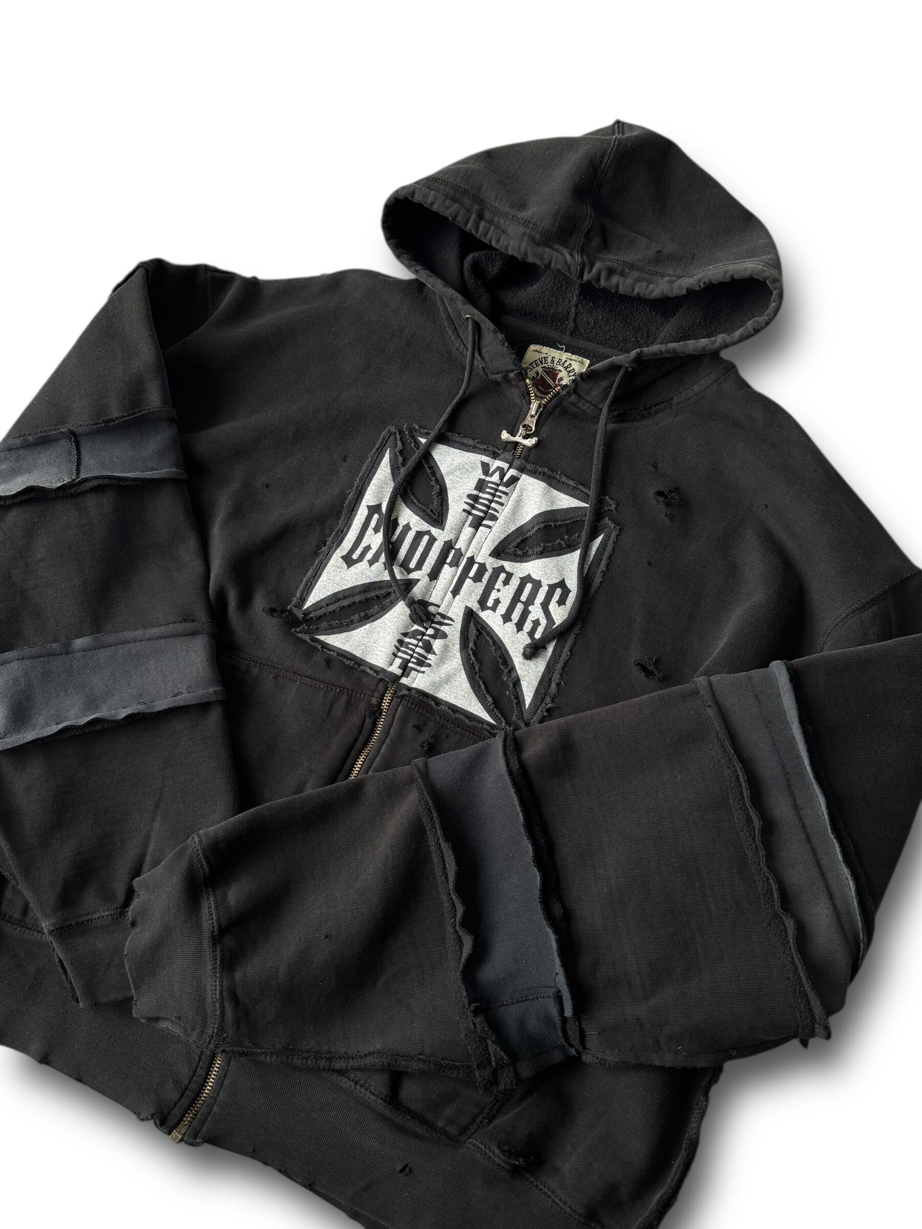♾REMADE COLLECTION♾ "WEST COAST CHOPPERS" remake custom wide sleeve grunge design zip up hoodie sizeL