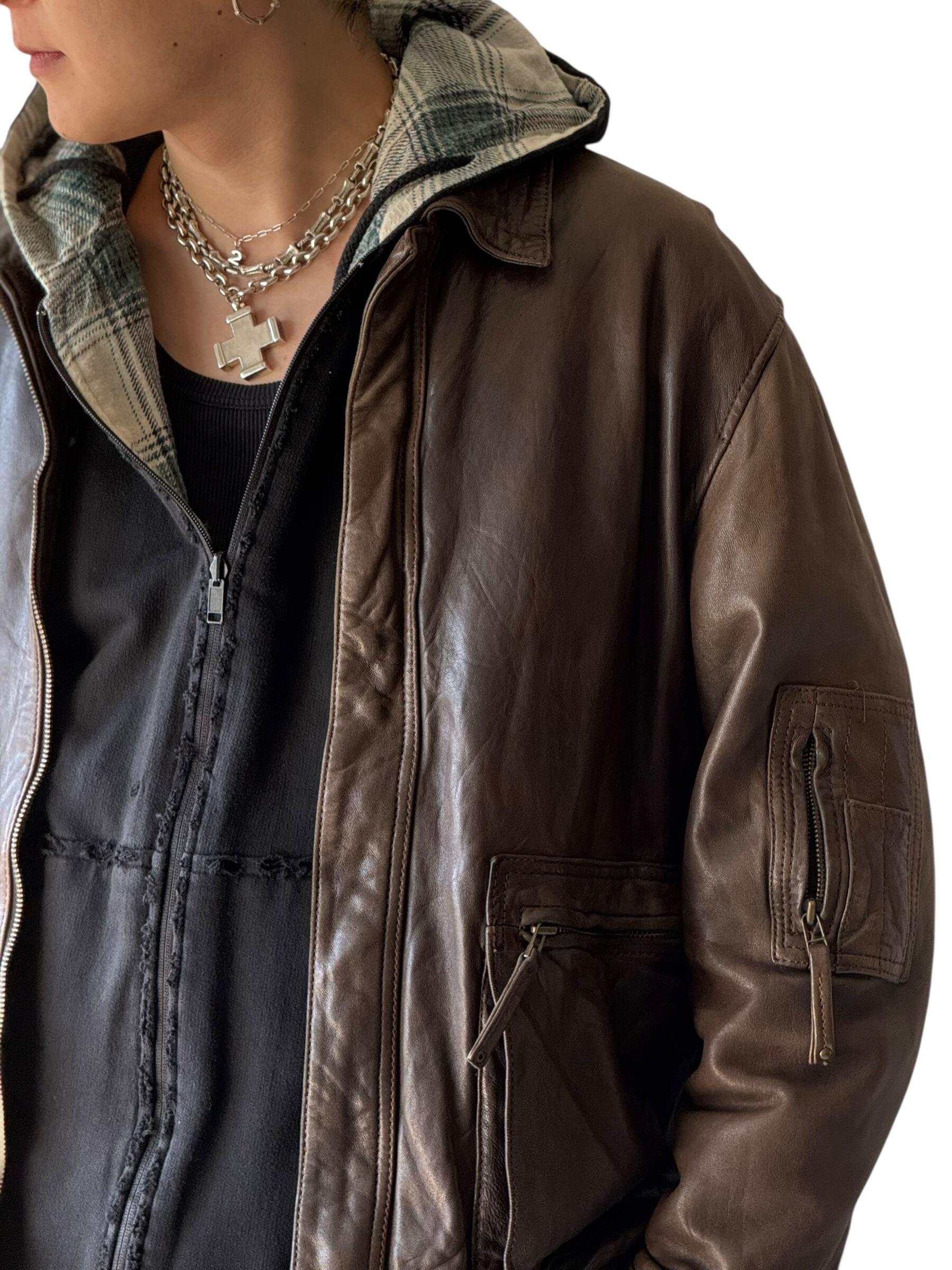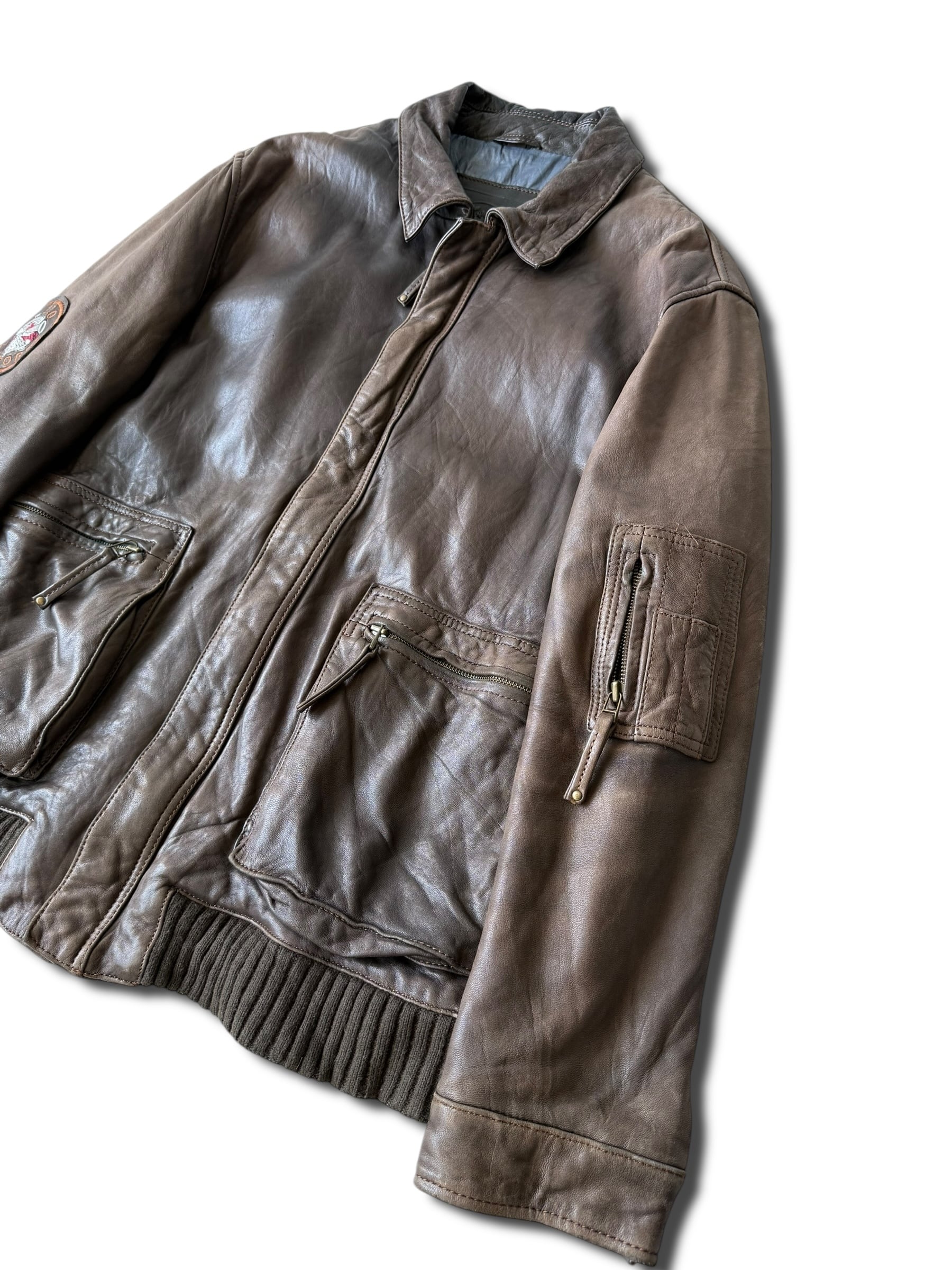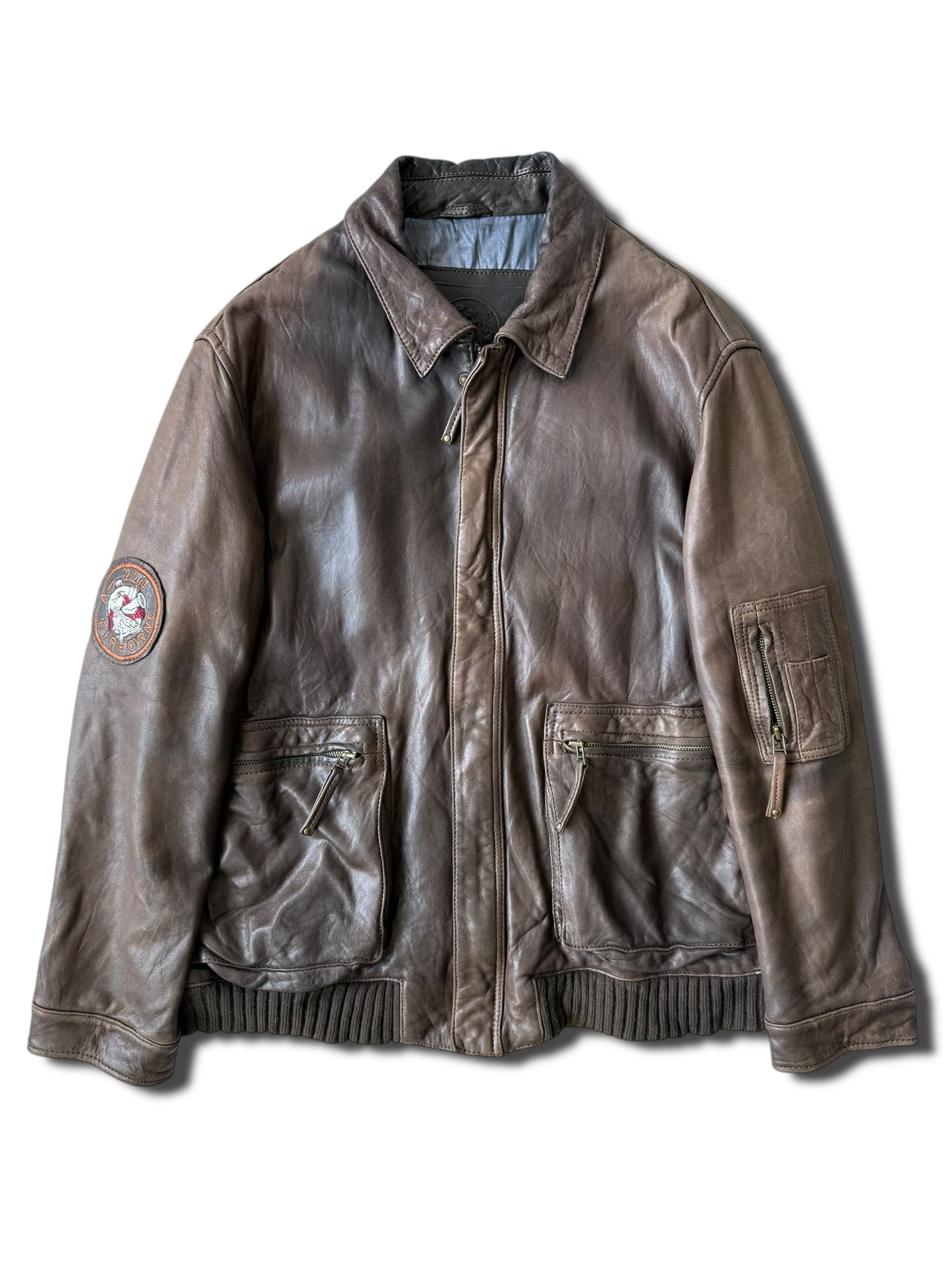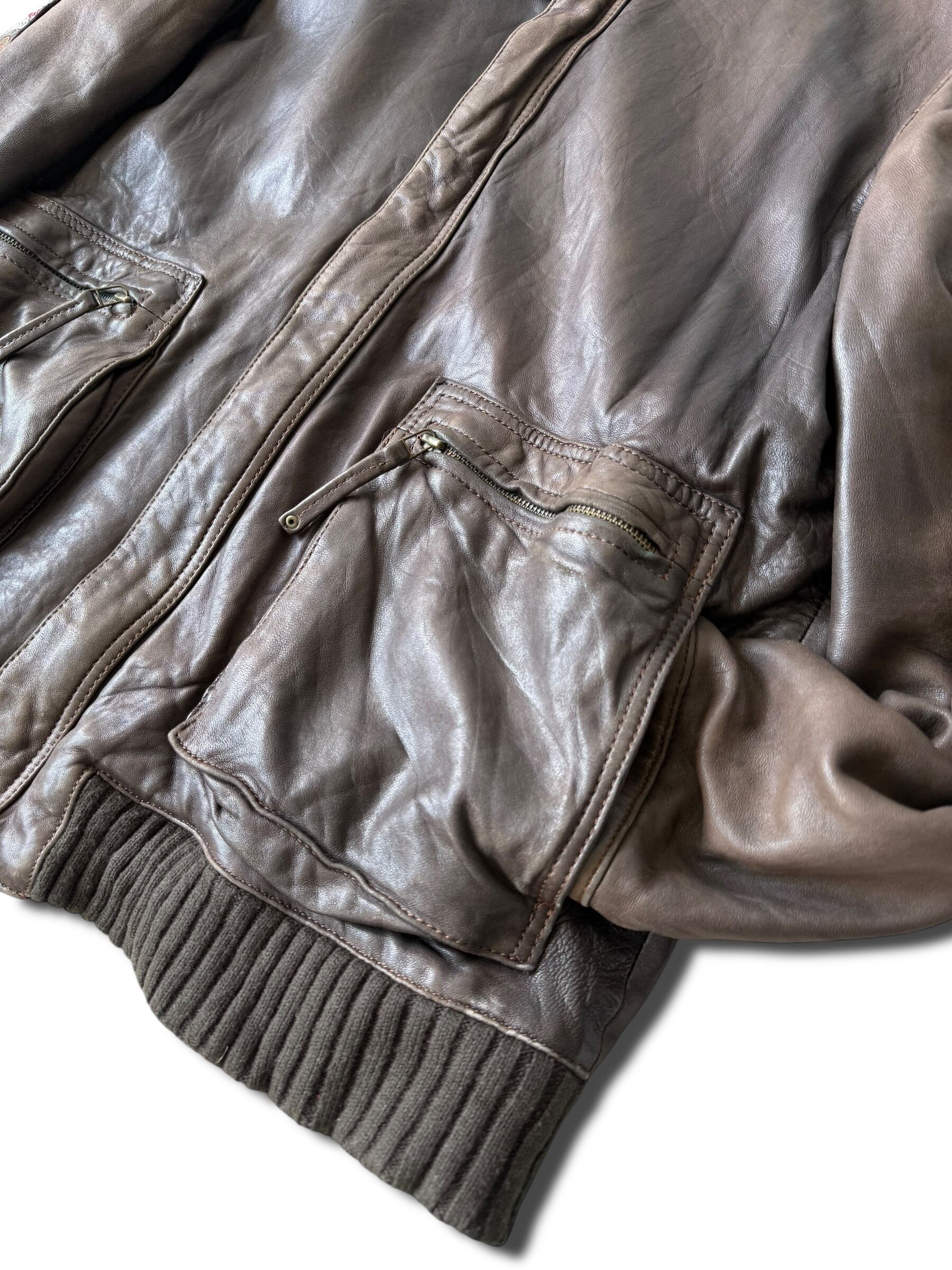希少なA-2フライトジャケットをサンプルしたかのようなポケットディテールのレザージャケット‼️